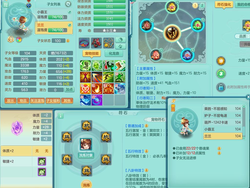 tx10375天下无双99女灵月3系精灵,8字靓号,1内丹青蛇2皮,13只满果子4觉醒11个4字2个5字1个6字,7红,单加五雷头,单加法爆双红武器,155单加Y项链,法缭鞋,鼎2.5,2套符石,庭院156,永久外观精灵皮肤,1045金币,16内丹碎片,双人坐骑