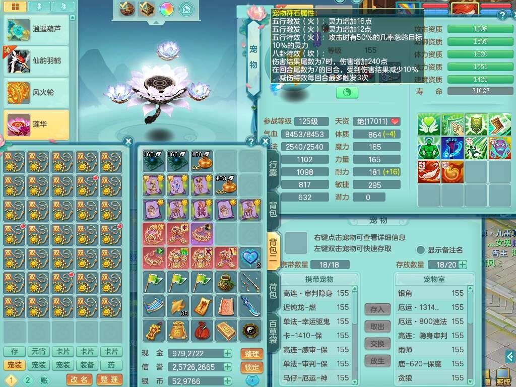 p22276九天揽月159男方寸,精灵舞,6龙2内胆神,4破镜,【12觉醒,已潜龙】,8位靓号AAAAAABB,9宠皮+1幻灵果,2特殊(上善,流星),5只六技能镜花灵,1只六技能龙姬,封锁四海单加52武器,三红易成长药王玉清链子,愤怒易成长单加50腰带,封系星辰之拥,法系易成长四海单加头,法爆单加武器,266易成长项链,五雷单加53鞋子,物理924易成长单加55武器,928狂暴武器,崩山衣服,神佑坚毅项链都有,破甲单加鞋,5.5基础鼎+70攻+280血,15个格子,14个纯六字,4个五字,26只满果子,宠排在榜,经验修炼成就在榜,永久称谓,双人坐骑,有3381金币,50个神兽内丹碎片,75天月卡。➕159女魔王,精灵歌,1神兽破镜,1只觉醒,1只六技能镜花灵,1只六技能龙姬,2特殊(焚心,烈焰),法爆单加52武器,易成长单加51衣服,275易成长单加50项链,愤怒五雷腰带,三红法缭幸运7四灵决鞋子,5.0基础鼎。