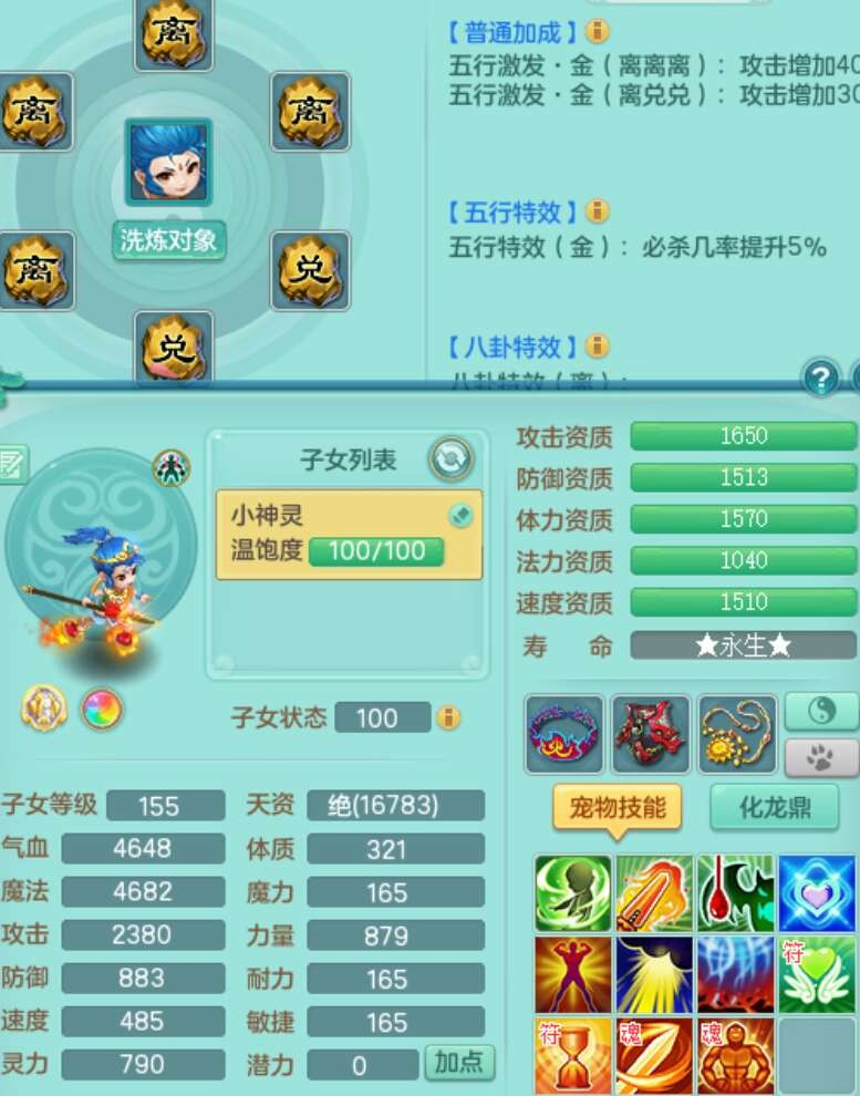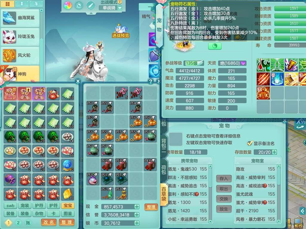 S22275今年勇159女普陀,精灵舞,6内胆龙,准4内胆神(1蛇2马,1神兽龙马+47神兽内胆碎片),3破镜,【9只觉醒,3系潜龙】,1宠皮,4只六技能镜花灵,2只六技能龙姬,3只多技能炼妖,2特殊(怒破,灵傀),愤怒六特,有回春群体守备武器,格挡单加51衣服,物理双破甲,破甲头,破甲五雷单加55鞋子,919易成长野兽单加53武器,崩山衣服、神佑项链全单加,6.0基础鼎+70攻+280血,15永久个格子,10个纯六字,4个五字,25只满果子,仓库还有31个果子,宠排在榜,经验修炼成就在榜,永久称谓,4个孩子,7只坐骑,神驹马上发财+火焰之力,带121天月卡。