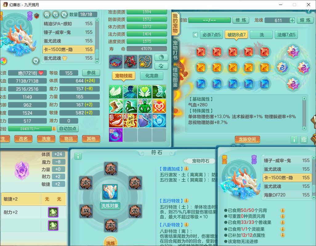 99789九天揽月159男方寸【潜龙号】精灵舞,8位靓号,6龙(1换1破境)2内(1龙马1青蛇,2破境)1望归4镜花1龙姬特殊(上善、流星)1金炉,12觉醒10宠皮(1幻灵果)14六字4五字6四字综合27只满果子,11红星辰之拥装备,封锁四海武器,Y药王玉清项链,愤怒Y腰带,迅捷守护鞋子,一套法系装备,法爆武器,Y四海帽子,266Y项链,五雷鞋子,鼎5.5+70+280,2套符石,75天月卡,永久外观、精灵皮肤,50个内丹碎片,4坐骑(1双人飞行),带159男魔王精灵歌,1觉醒1青蛇(无内)1镜花1龙姬2特殊兽决(焚心、烈焰),9红装备,愤怒五雷腰带,法缭幸运四灵鞋子,18个内丹碎片