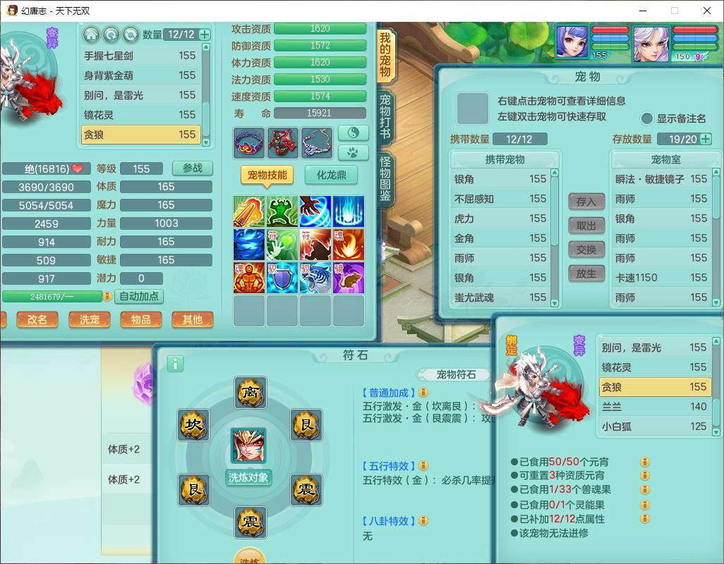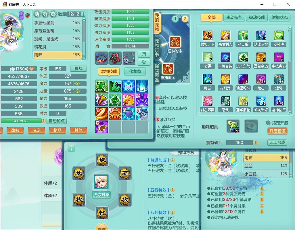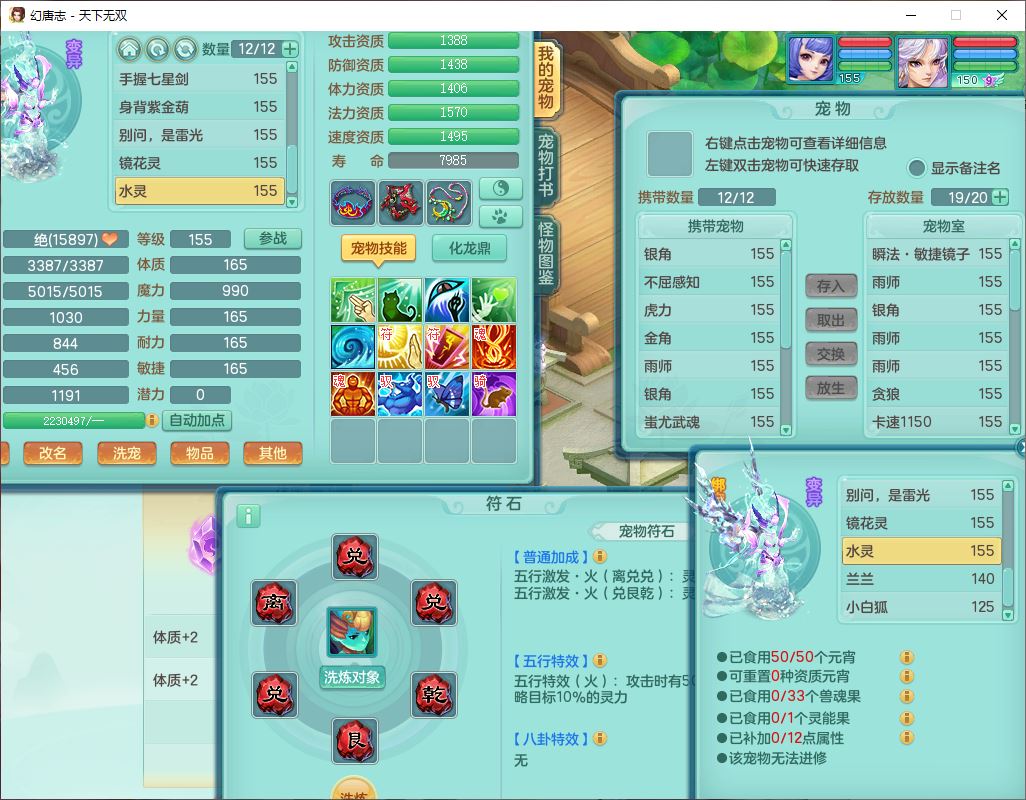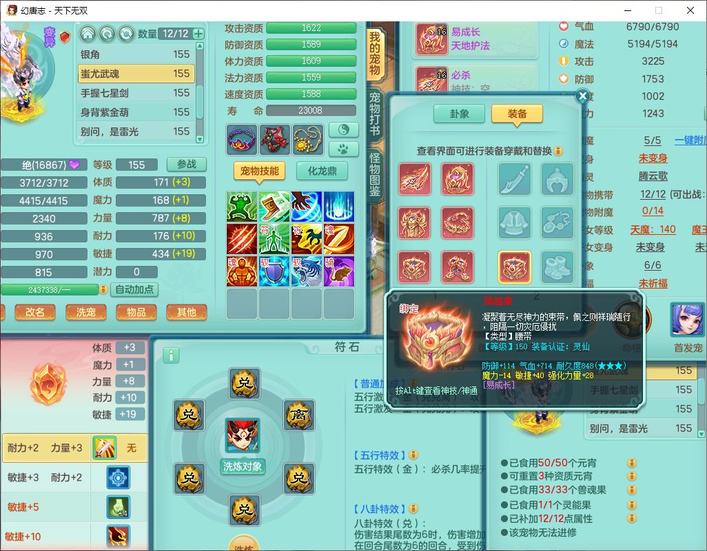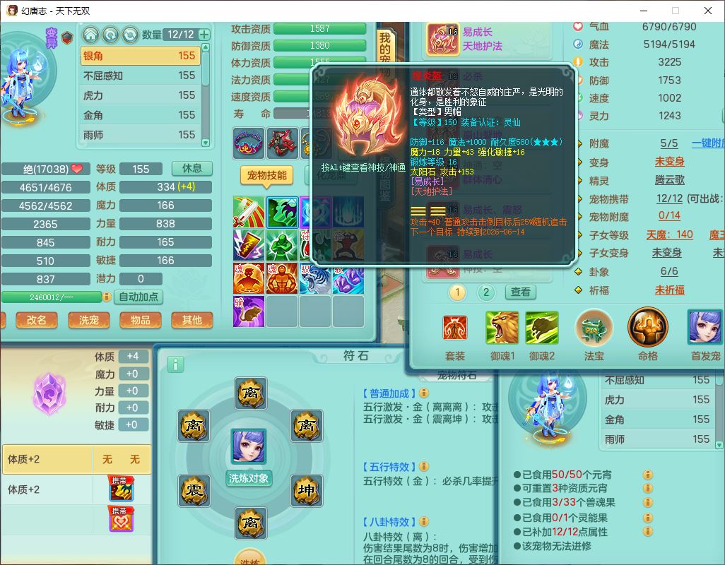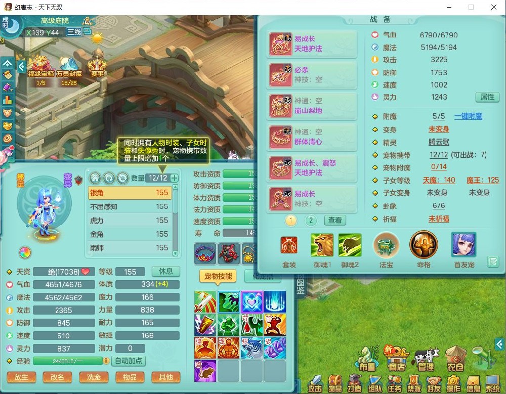 tx10387天下无双159男万兽精灵歌,3镜花1特殊(雷光)3金角,4觉醒7四字综合8只满果子,全单加9红装备,Y罗汉帽子,934必杀武器,崩山衣服,震怒Y罗汉腰带,鼎5.0,永久头饰、精灵皮肤,45个仙兽灵,13个内丹碎片,1双人飞行坐骑