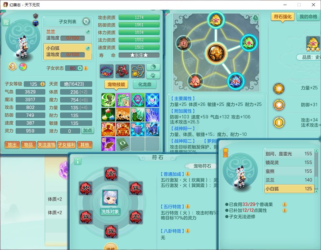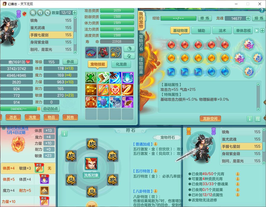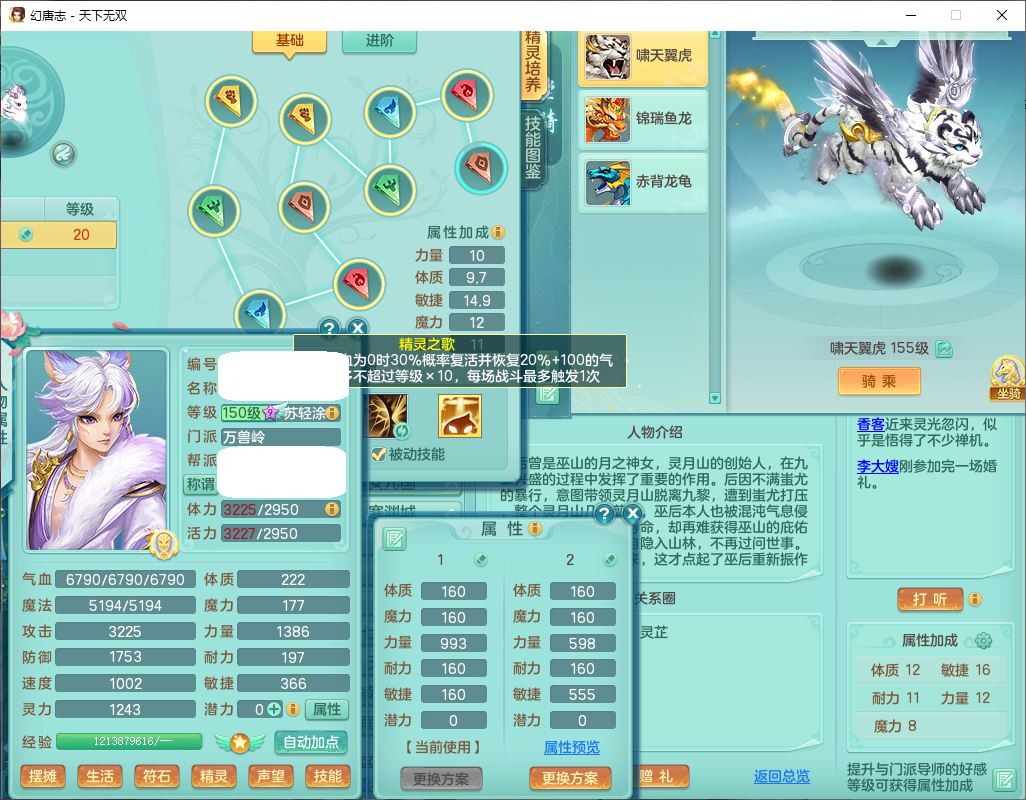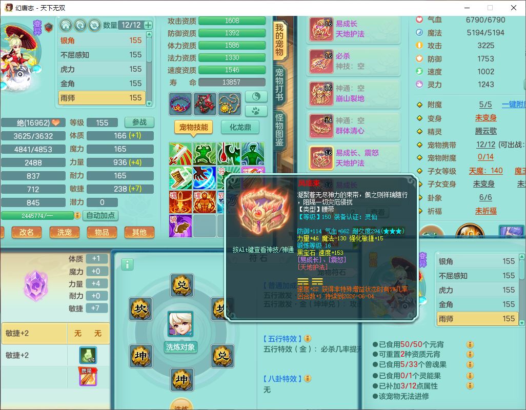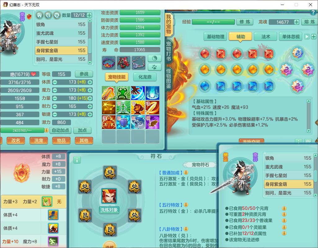 tx10387天下无双159男万兽精灵歌,3镜花1特殊(雷光)3金角,4觉醒7四字综合8只满果子,全单加9红装备,Y罗汉帽子,934必杀武器,崩山衣服,震怒Y罗汉腰带,鼎5.0,永久头饰、精灵皮肤,45个仙兽灵,13个内丹碎片,1双人飞行坐骑