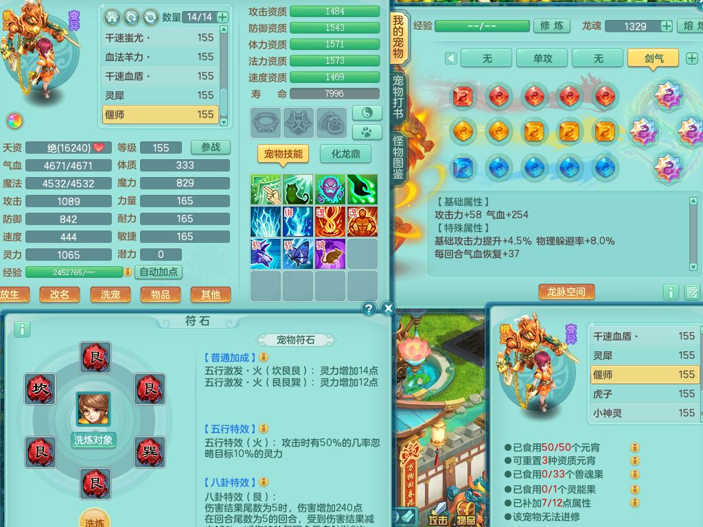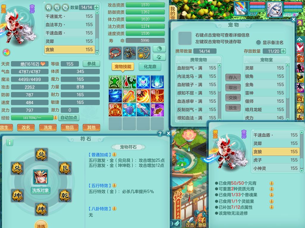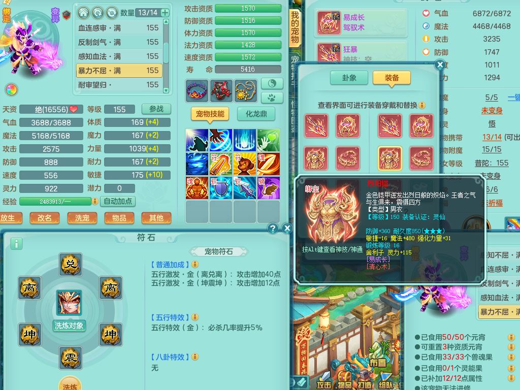 lt10384浪淘沙159男万兽精灵悟,满级共鸣,1内丹龙1内丹龙马2镜花灵,9只满果子1觉醒6个4字,8红,926狂暴武器,Y双红头,单加Y破血鞋,仓库单加回春双红武器,鼎4.5,34天月卡,机械庭院,31内丹碎片,飞行双人坐骑