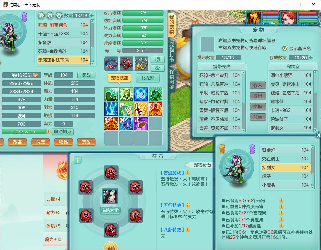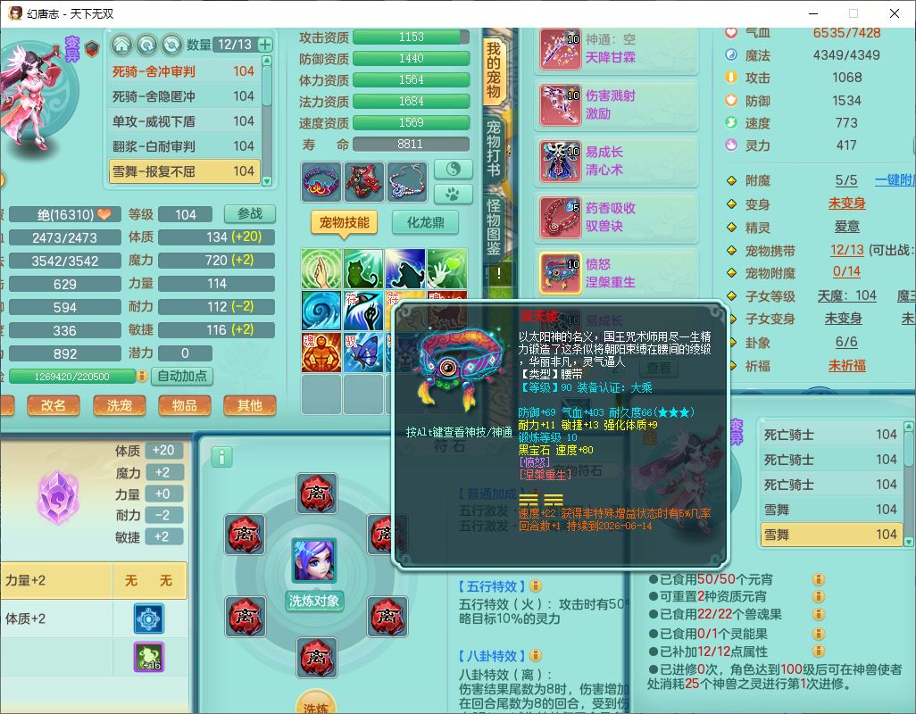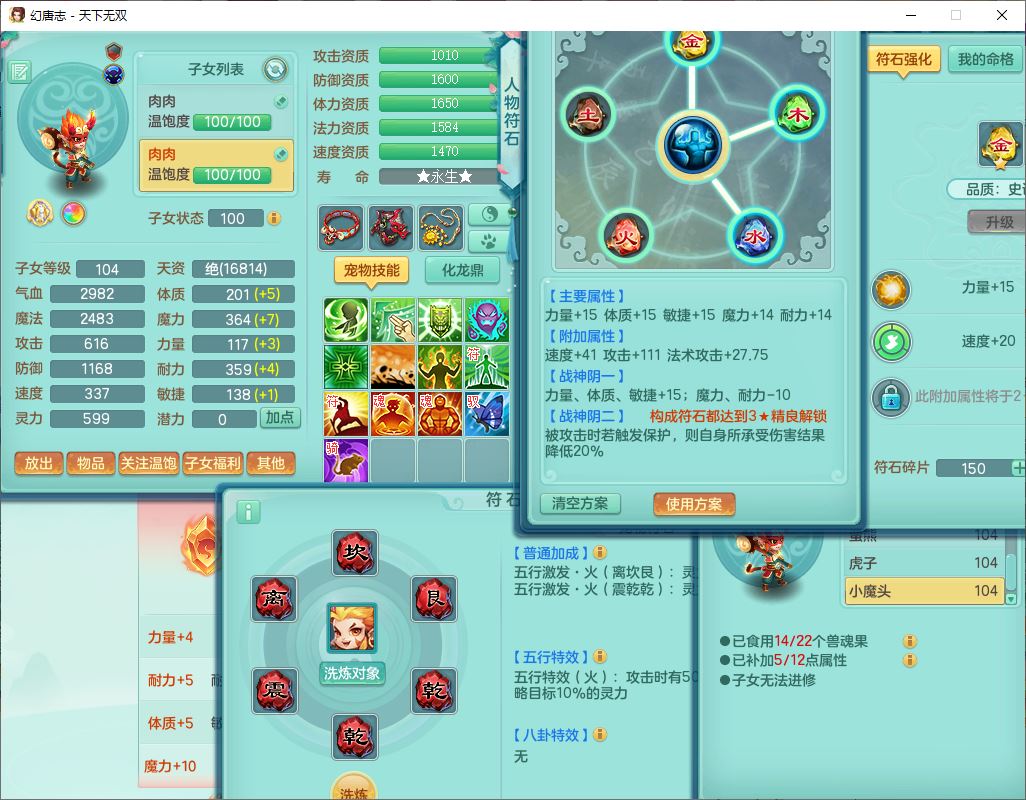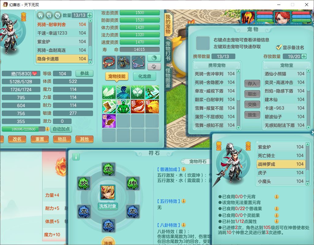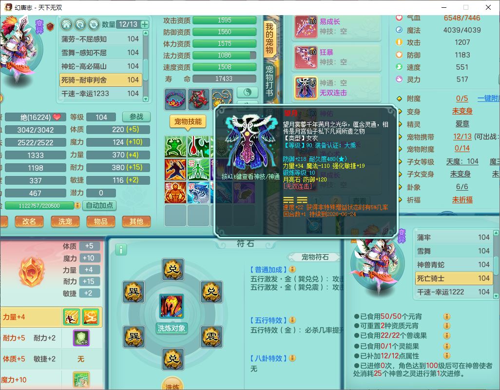 tx10396天下无双99女无量体敏耐、力敏双精灵,1内丹青蛇3翻江3舍身1金炉1建木1童子胚子,2六字2四字综合9只满果子,11红装备,伤害溅射激励武器,Y水清衣服,药香驭兽项链,愤怒慈航,Y罗汉鞋子,一套9红物理装,狂暴武器,神佑回天项链,指挥Y净心腰带,2套符石,庭院150房屋146,永久外观、精灵皮肤,21个内丹碎片,1双人飞行坐骑