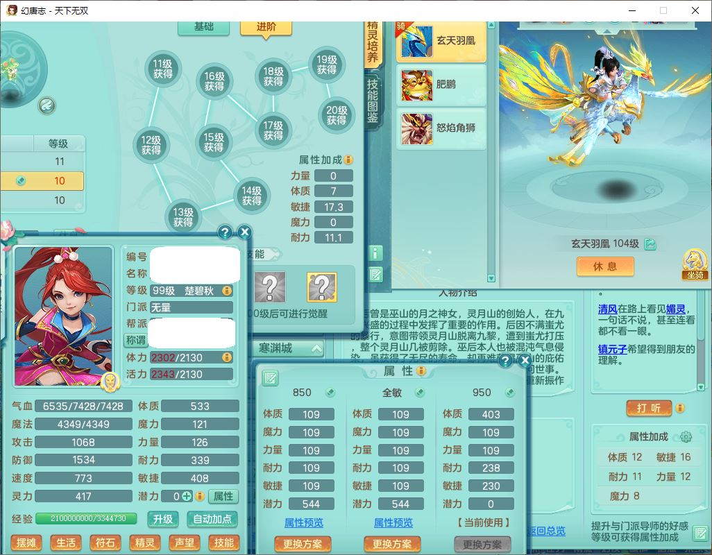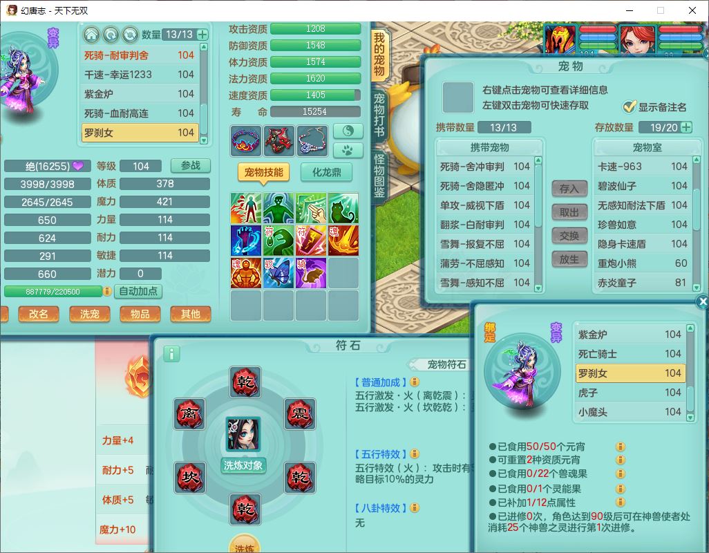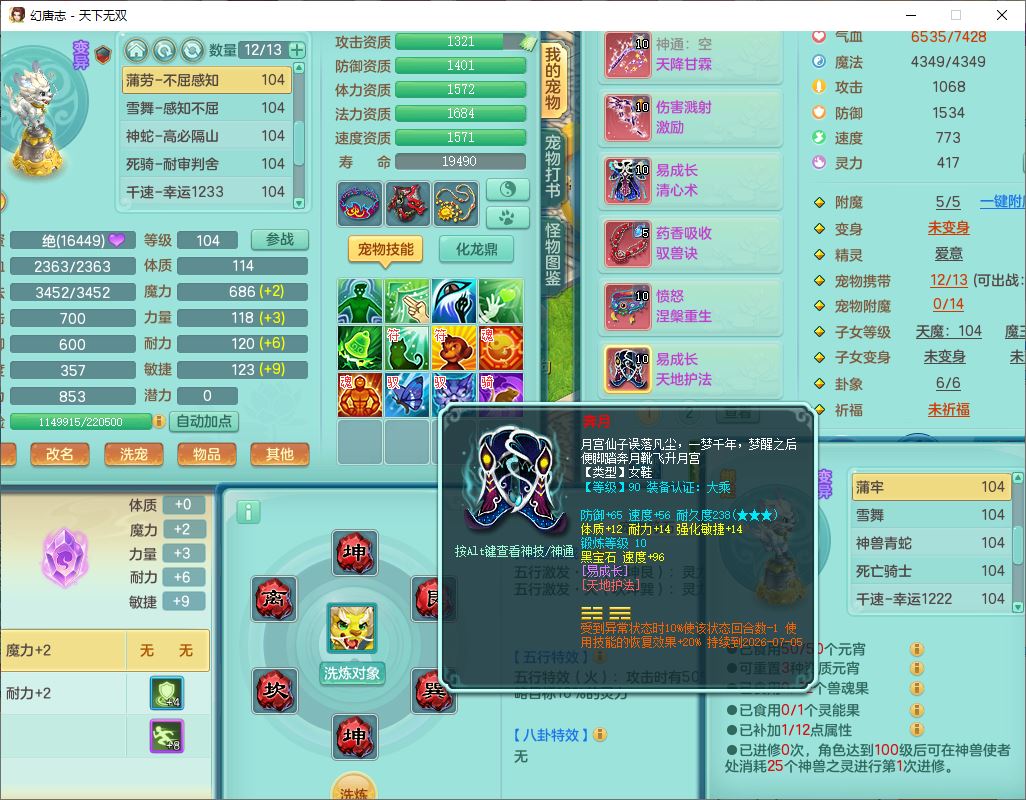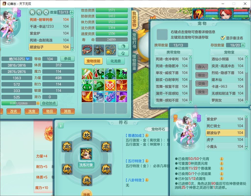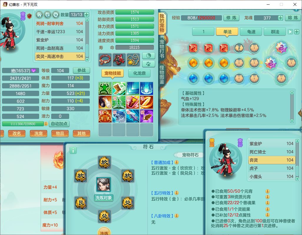 tx10396天下无双99女无量体敏耐、力敏双精灵,1内丹青蛇3翻江3舍身1金炉1建木1童子胚子,2六字2四字综合9只满果子,11红装备,伤害溅射激励武器,Y水清衣服,药香驭兽项链,愤怒慈航,Y罗汉鞋子,一套9红物理装,狂暴武器,神佑回天项链,指挥Y净心腰带,2套符石,庭院150房屋146,永久外观、精灵皮肤,21个内丹碎片,1双人飞行坐骑