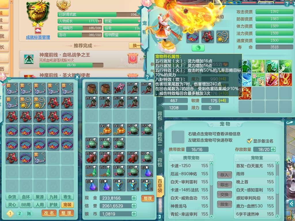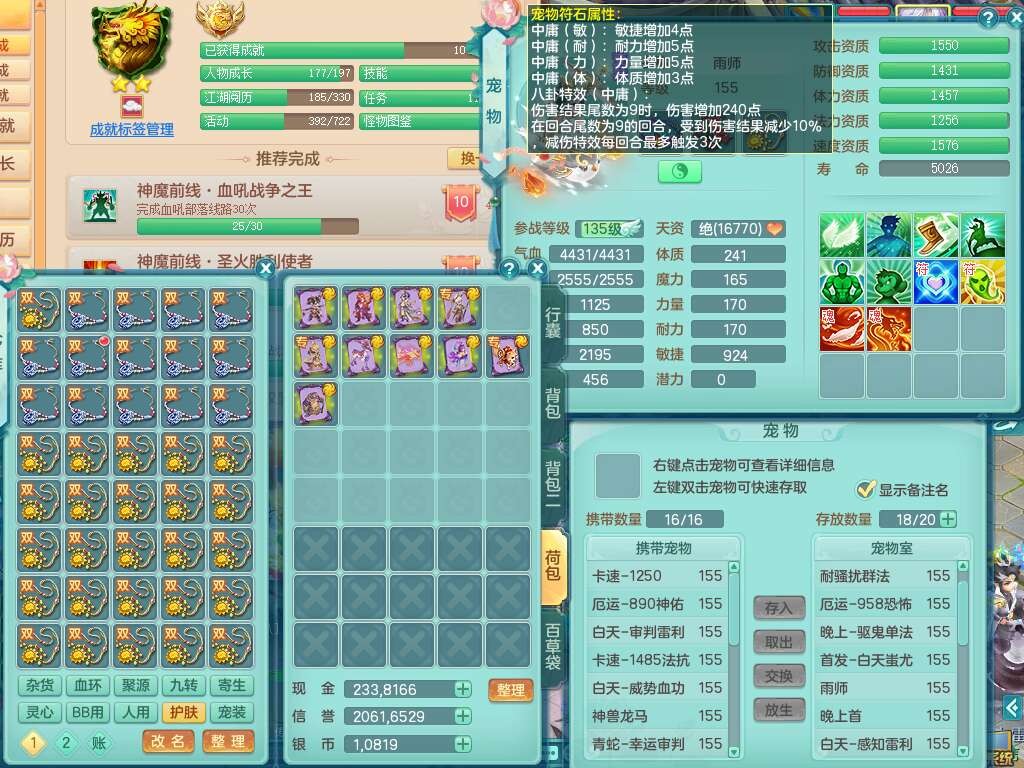 A22283少年游159男灵月山,精灵舞,5龙3内胆神,1神兽龙马+76神兽内丹碎片,7破镜,【23觉醒,已潜龙】,8位靓号不含4,10宠皮,1特殊(登云),3只六技能镜花灵,双红躲避四海衣服,愤怒天地护法腰带,六特,物理装备有易成长单加57头,930易成长单加51武器,崩山单加衣服,易成长真元护法单加57腰带,神佑坚毅项链都有,5.5基础鼎+70攻+280血,14个永久格子,17个纯六字,23只满果子,宠排在榜,双人坐骑,暴龙泰坦+西瓜冰武器,71天月卡。
