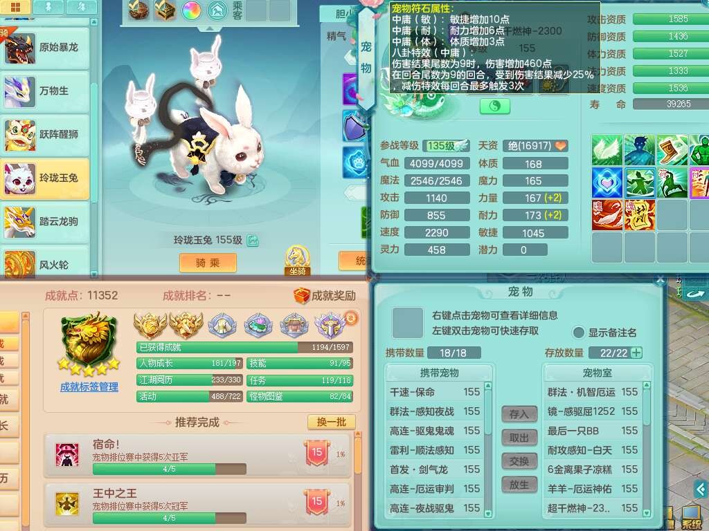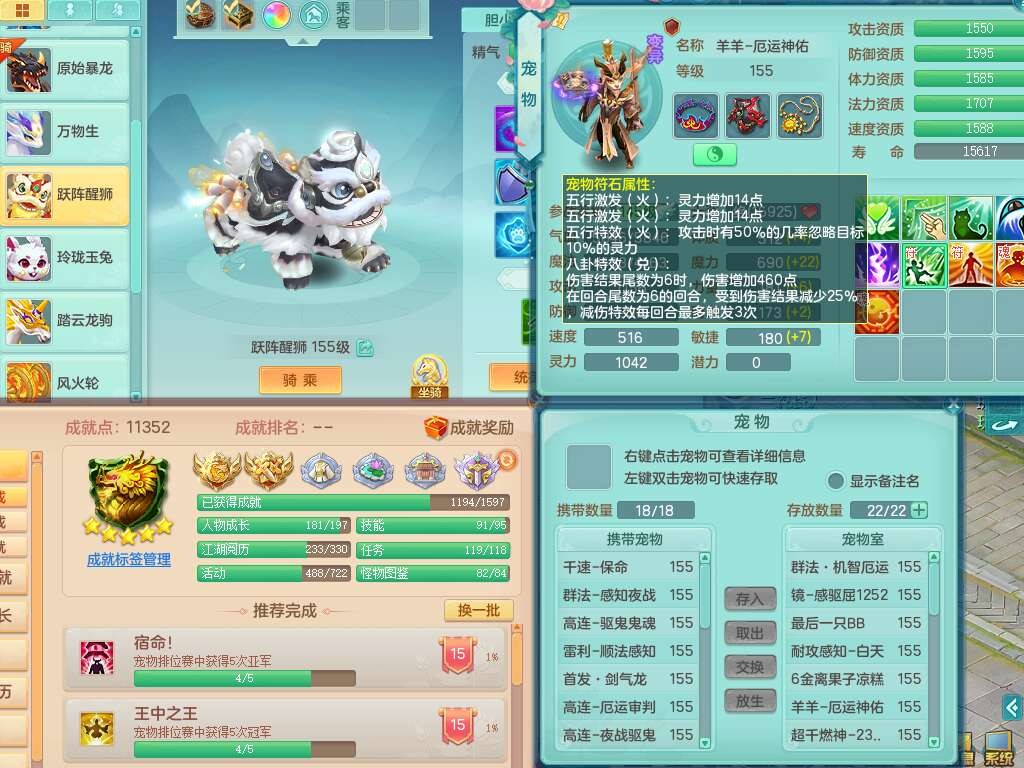 J22290任剑逍遥159男地府,精灵歌+舞,8龙4内胆神(3马1蛇),8破镜,【18只觉醒,已潜龙】,4位靓号不含4,1宠皮,1特殊(上善),5只六技能镜花灵,1只六技能龙姬,冷却罗汉头,格挡守护衣服,愤怒幸运4单加52腰带,易成长四海单加50鞋子,易成长玉清单加52武器,有回春清心术武器,封锁武器,法系双法缭,法缭单加衣服,法缭移魂单加鞋子,五雷单加53头,266易成长单加50项链,914法爆单加51武器,物理双破甲,破甲单加头,破甲鞋子,崩山衣服,神佑止戈项链,坚毅单加55项链,超多双红装备,5.5基础鼎+70攻+280血,15个永久格子,23个纯六字,1个五字,30+只满果子,宠排在榜,经验在榜,永久称谓,仓库42神兽内胆碎片,11个坐骑,暴龙泰坦+神驹心想事成+火焰之力+西瓜冰,冰晶庭院。
