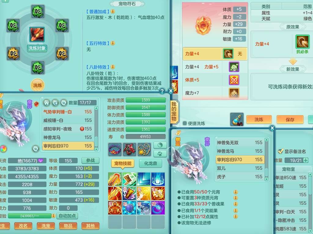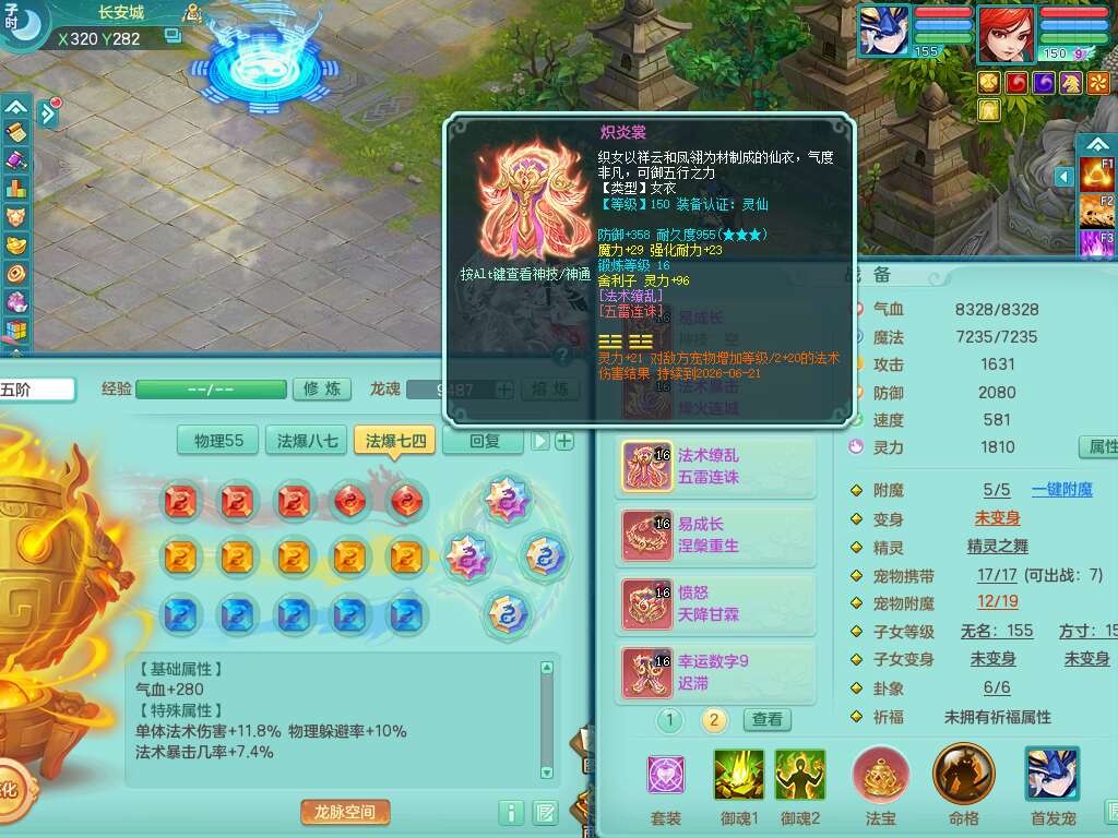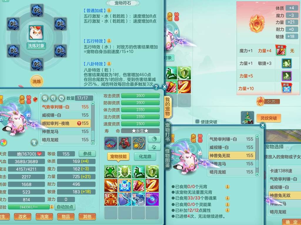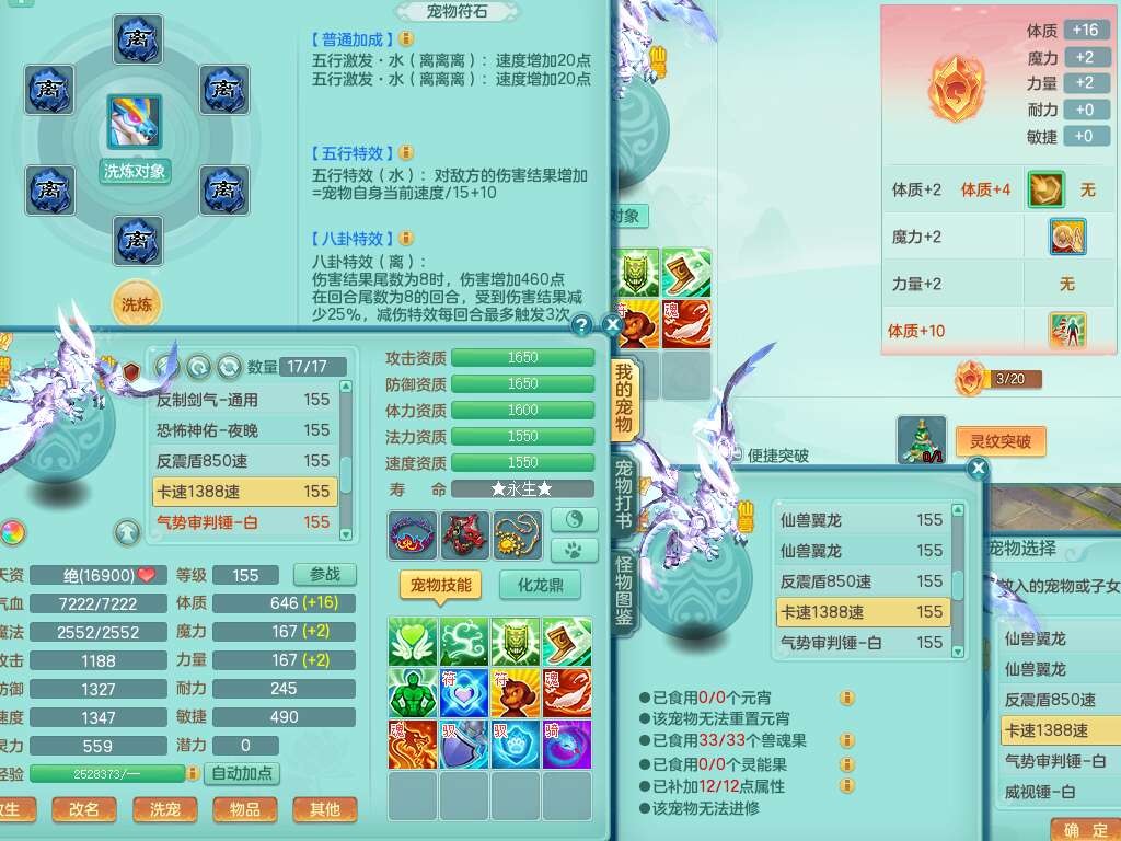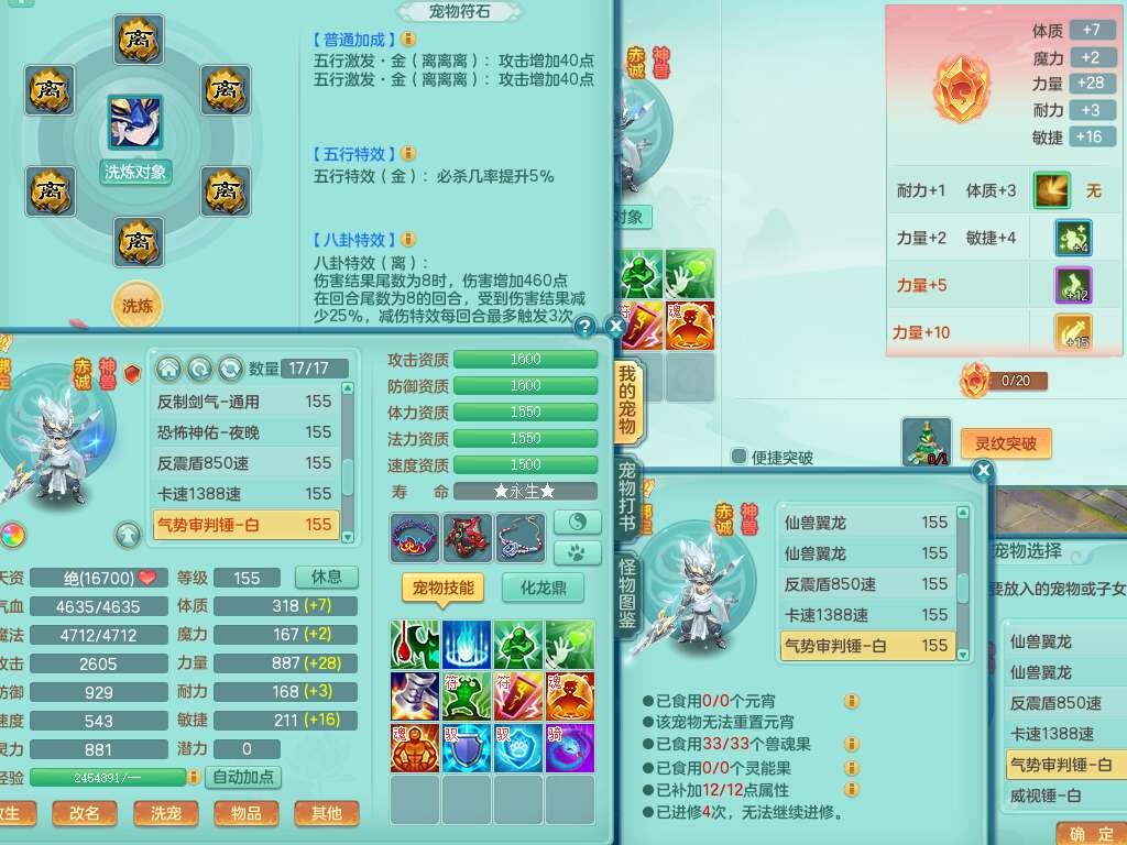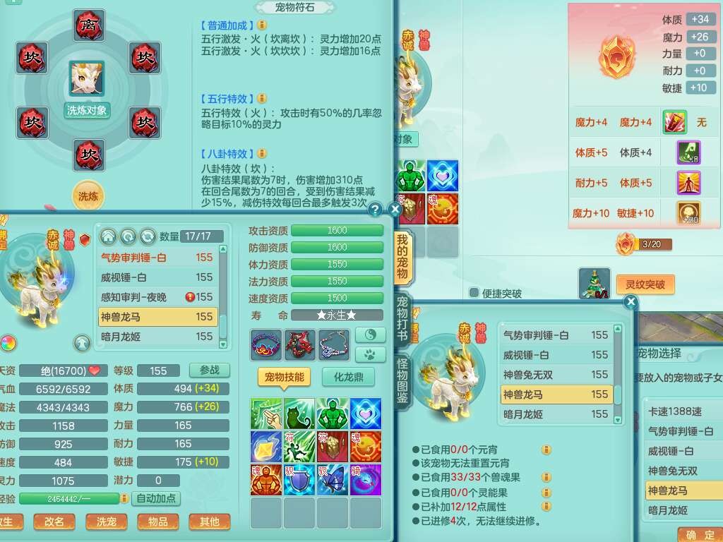 S22289风华绝代159女魔王,精灵舞,12龙4内胆神,1破镜,【16只觉醒,已潜龙】,4位靓号不含4,2宠皮,4特殊(夺命,祈雨,藕断,烈焰),2只六技能镜花灵,1只六技能龙姬,法爆烽火武器,法缭五雷衣服,269易成长慈航项链,愤怒四海单加腰带,法系星辰之拥,5.5基础鼎+70攻+280血,物理躲避10%,法爆8.7%,15个永久格子,24个纯六字,1个五字,27只满果子,宠排在榜,永久称谓,4个坐骑,带273万神武币。带157男方寸奶粉,精灵舞。