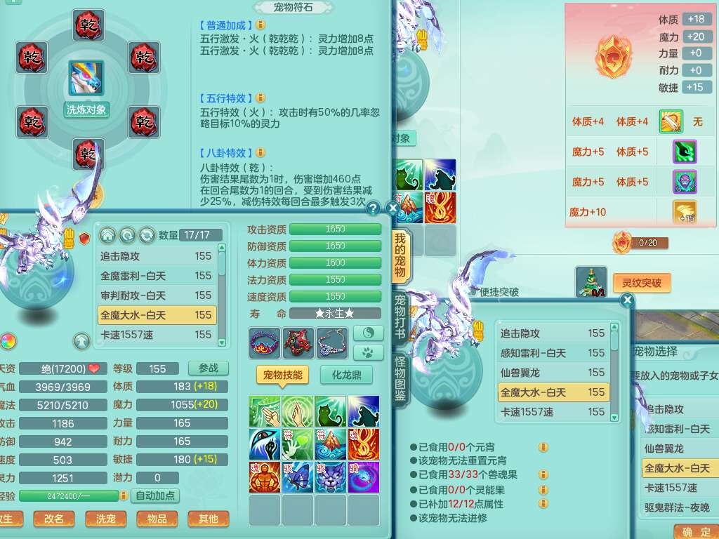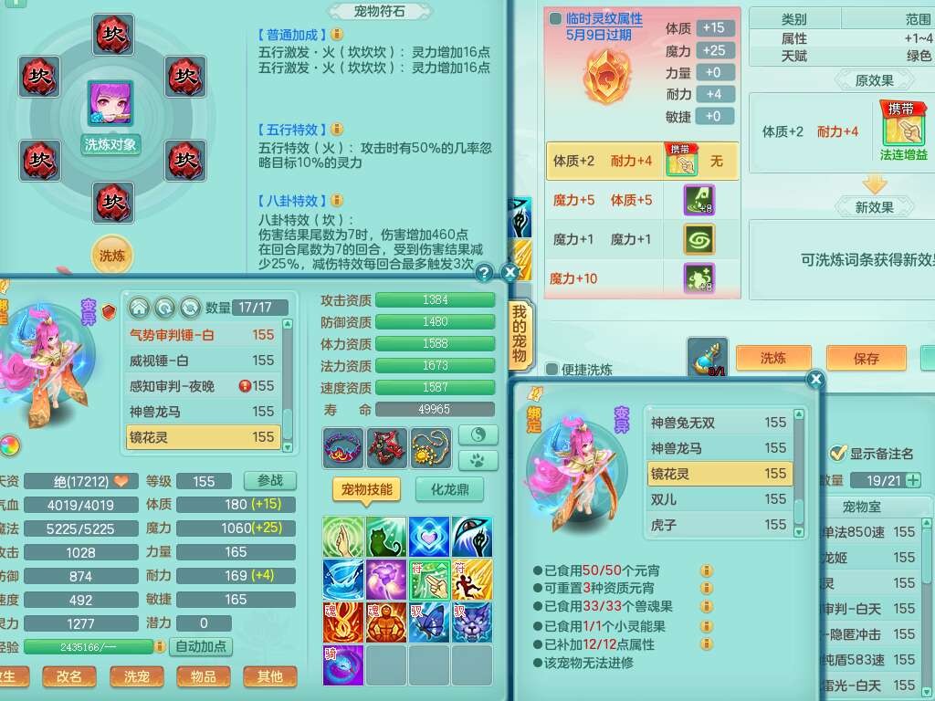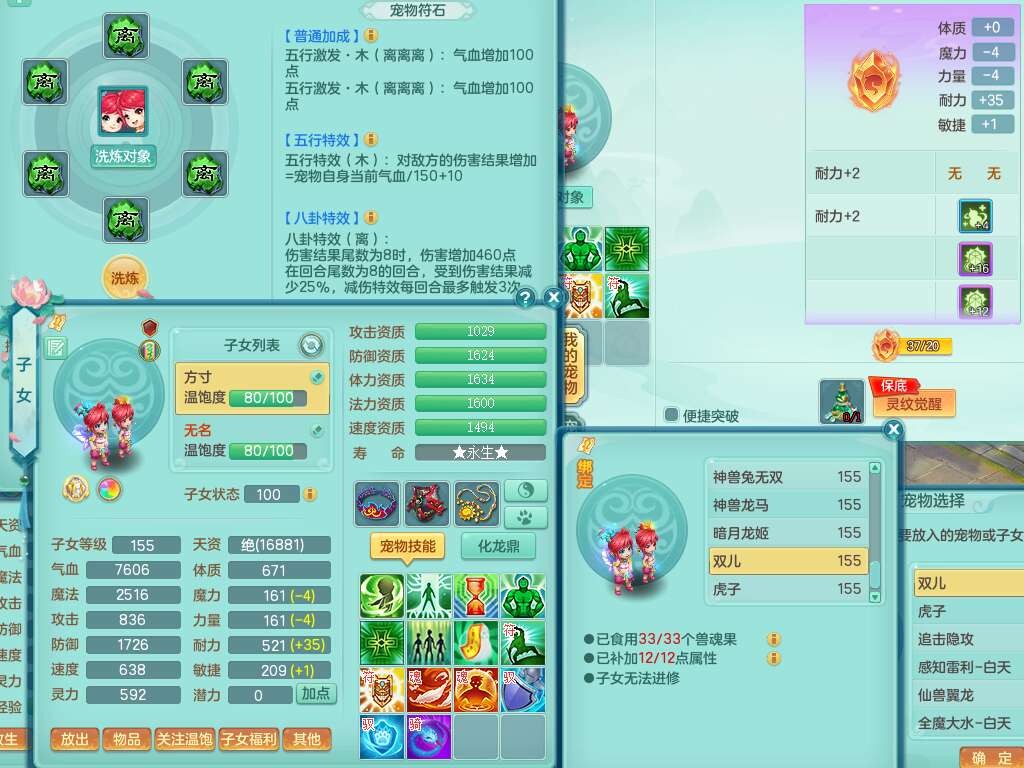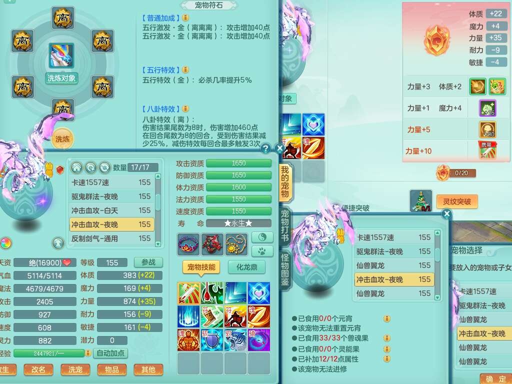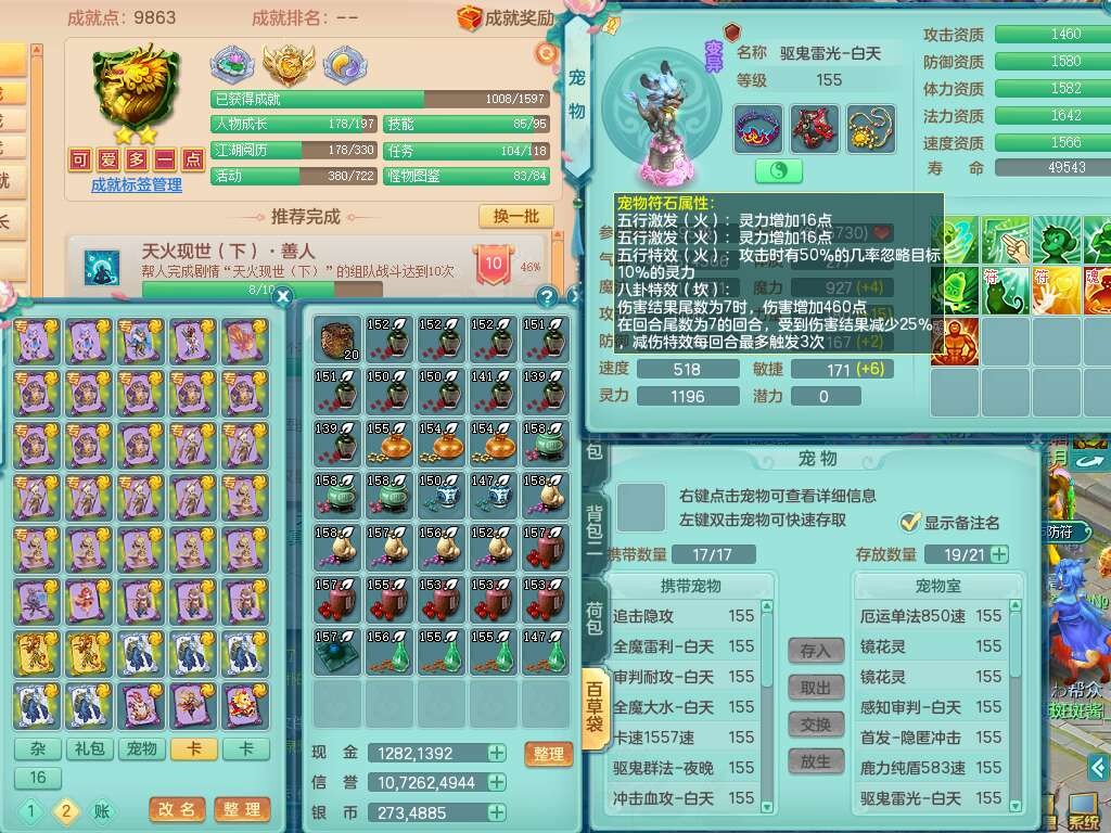 S22289风华绝代159女魔王,精灵舞,12龙4内胆神,1破镜,【16只觉醒,已潜龙】,4位靓号不含4,2宠皮,4特殊(夺命,祈雨,藕断,烈焰),2只六技能镜花灵,1只六技能龙姬,法爆烽火武器,法缭五雷衣服,269易成长慈航项链,愤怒四海单加腰带,法系星辰之拥,5.5基础鼎+70攻+280血,物理躲避10%,法爆8.7%,15个永久格子,24个纯六字,1个五字,27只满果子,宠排在榜,永久称谓,4个坐骑,带273万神武币。带157男方寸奶粉,精灵舞。