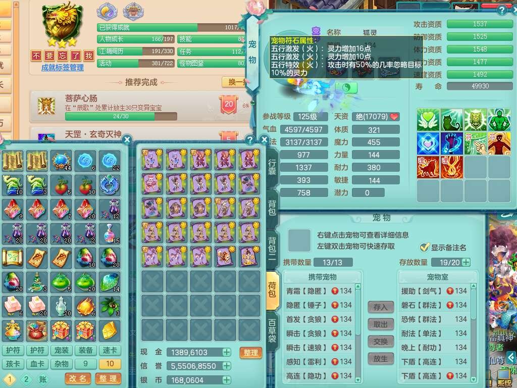 S22287清风明月129男无量,精灵歌,2内胆神,1觉醒,易成长野兽单加头,愤怒晶清单加腰带,六特,有197易成长单加455链子,4.0基础鼎,5个纯六字,1个五字,14只满果子,宠排在榜,4个孩子,2只双人坐骑,有44个仙兽蛋。带1个129奶粉。