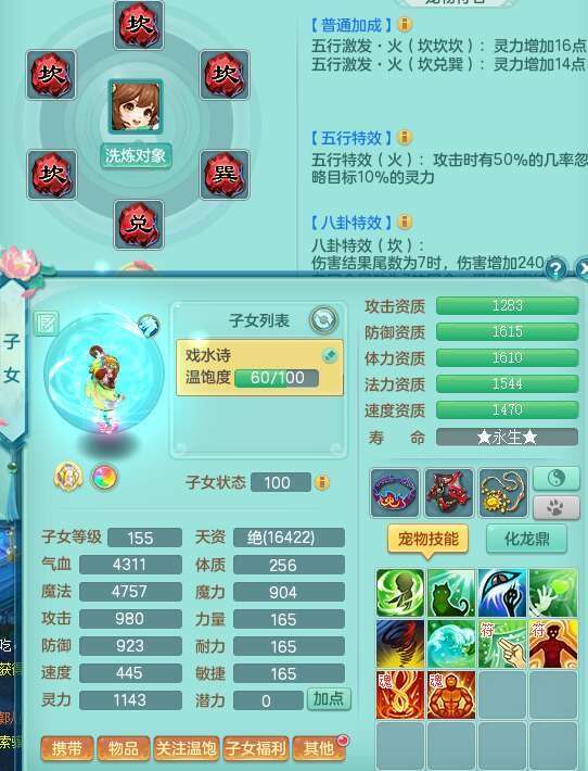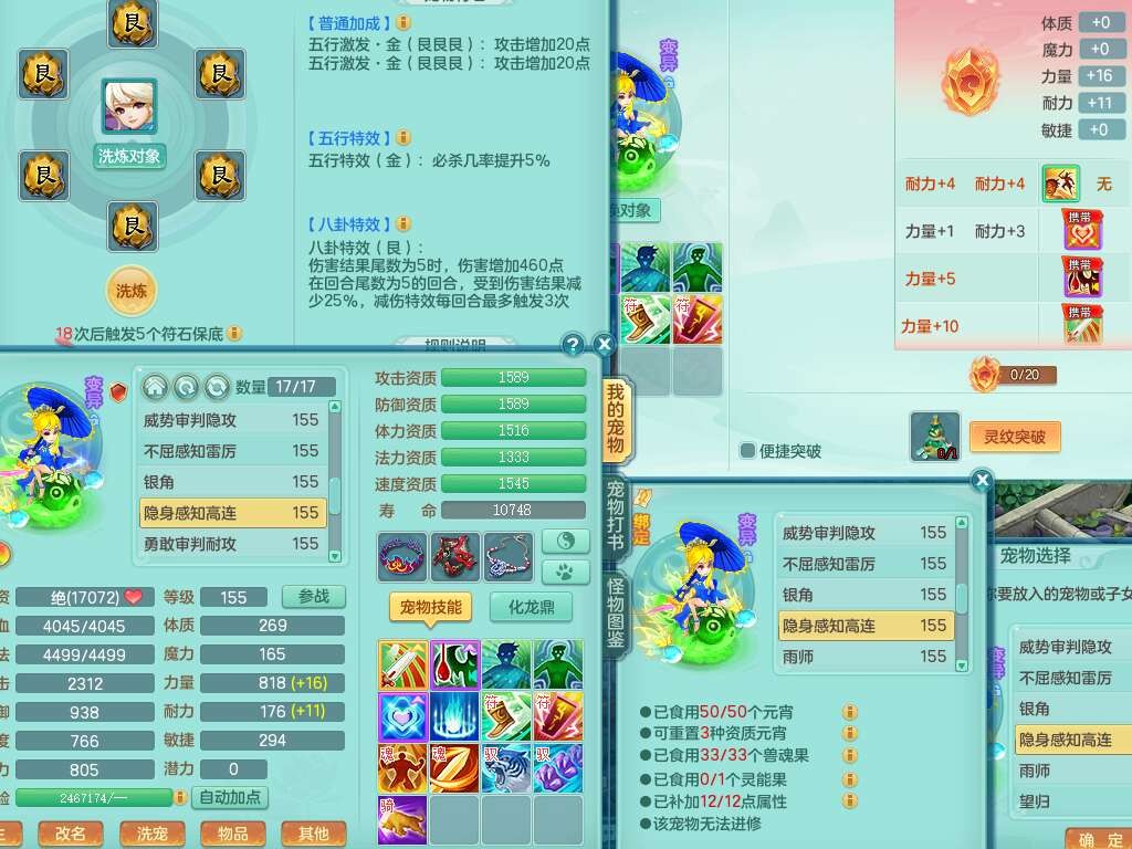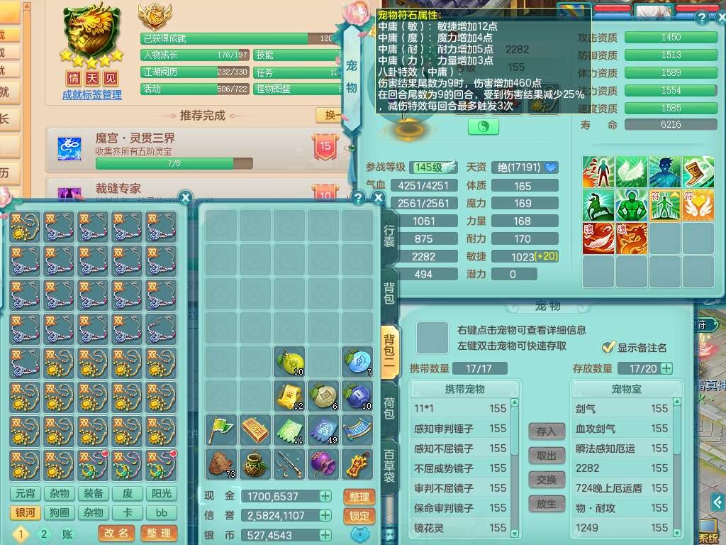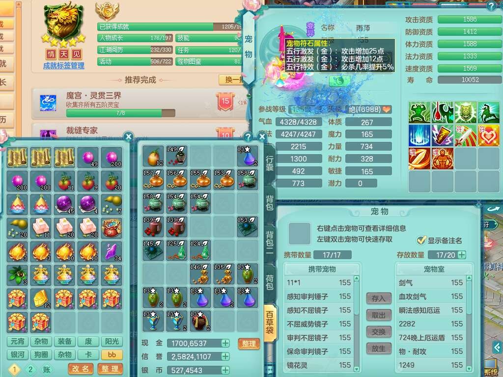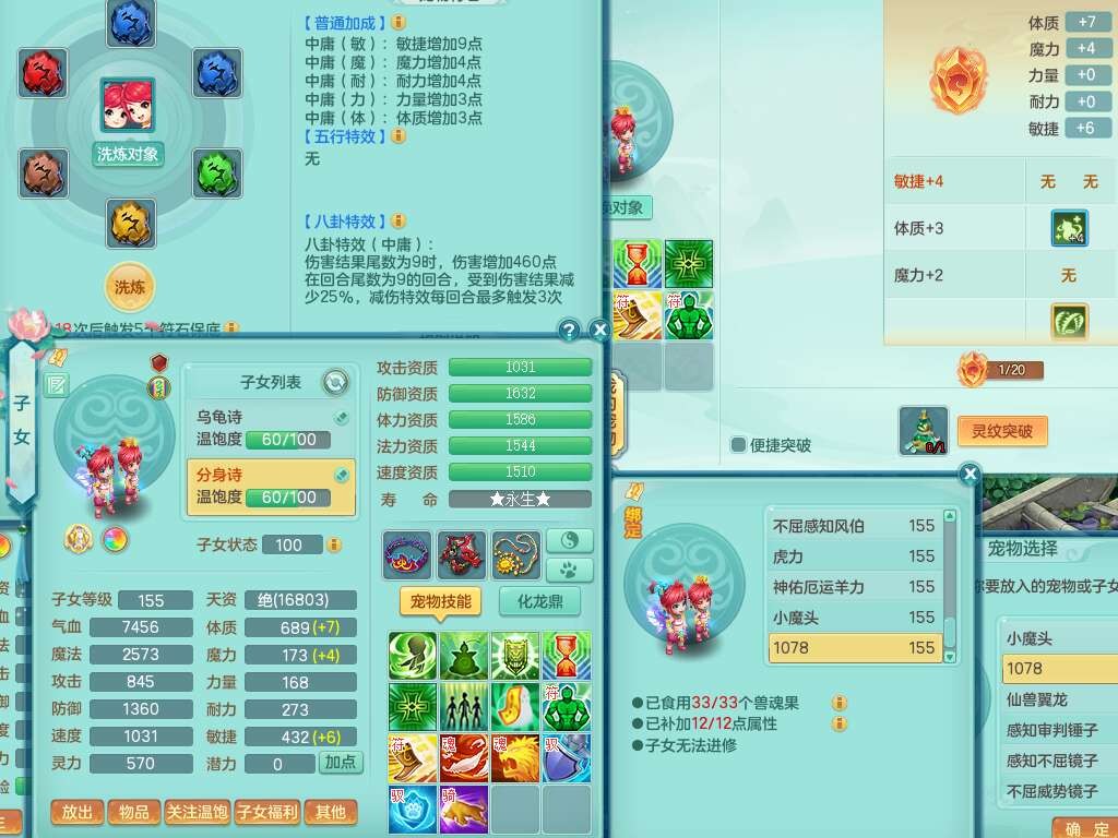 a22282普天同庆159女灵月山,精灵舞,1龙没内,1内胆神,【12觉醒,已潜龙】,4特殊(月光,枪出,雷厉,怒破),5只六技能镜花灵,1只六技能龙姬,愤怒四海单加腰带,迅捷单加54鞋子,五特,物理装备有916易成长单加52武器,,破甲皮敏式单加56头,崩山衣服,坚毅止戈链子,易成长震怒腰带,5.5基础鼎+70攻+280血,15个永久格子,13个纯六字,2个五字,18只满果子,仓库还有40个果子,宠排在榜,经验成就在榜,3个孩子,有34个神兽内丹碎片。➕157女魔王奶粉,1神兽,1只六技能镜花灵,1只六技能龙姬。