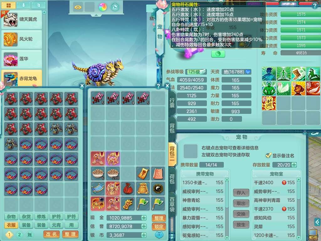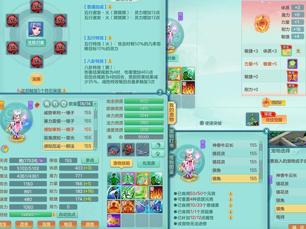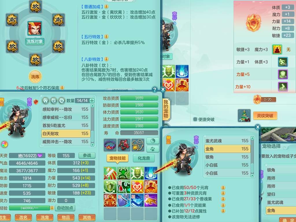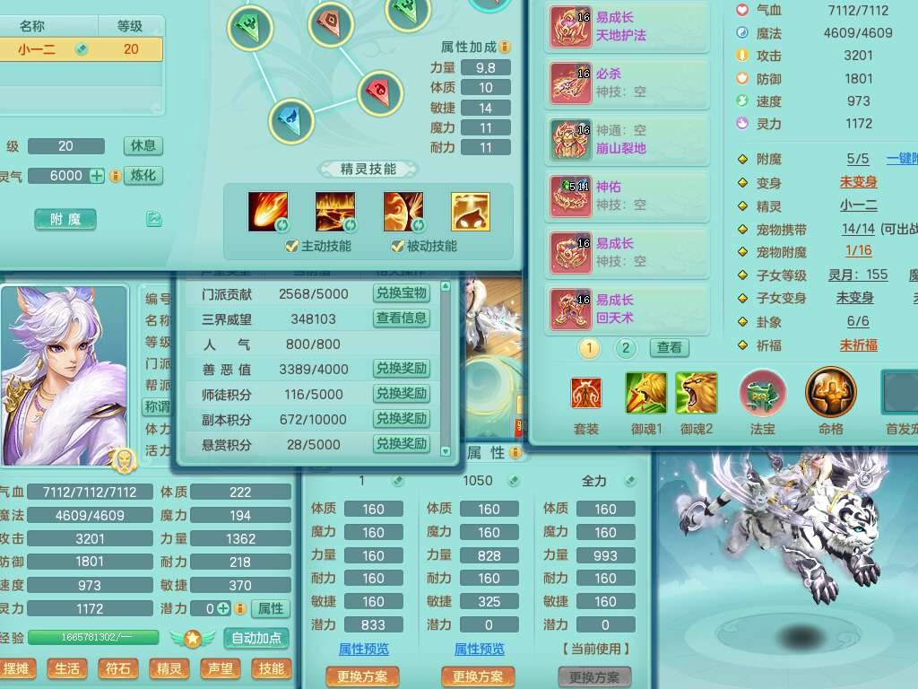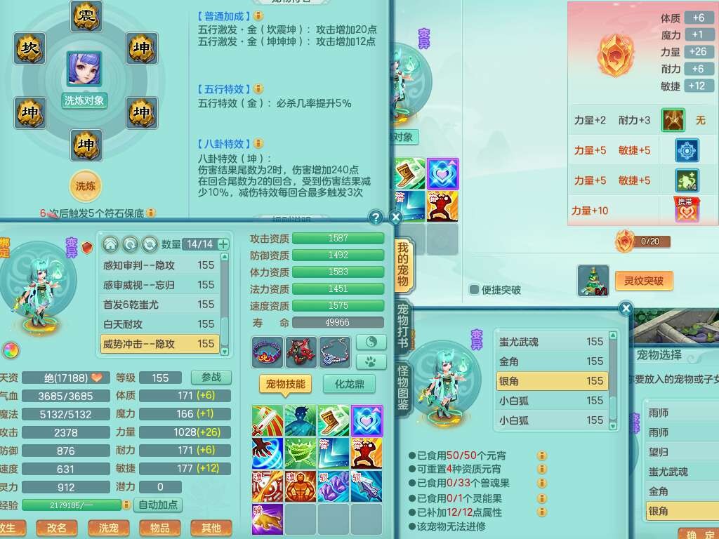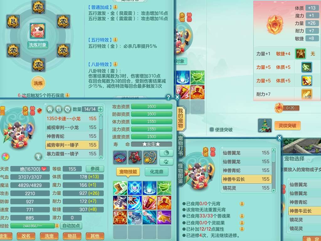 K22281紫气东来159男万兽,精灵歌,2龙(1龙没内),2内胆神,1神兽龙马+56个神兽内丹碎片,8觉醒,4特殊(雷光,以战,影袭,夺命),2只六技能镜花灵,易成长罗汉单加55头,924必杀单加武器,崩山衣服,神佑链子,易成长单加腰带,易成长回天术单加54鞋子,法系装备有双法缭,法缭衣服,法缭单加鞋子,270易成长单加53链子,五雷腰带,5.0基础鼎,2个纯六字,2个五字,11只满果子,宠排在榜,成就在榜,双人老虎。