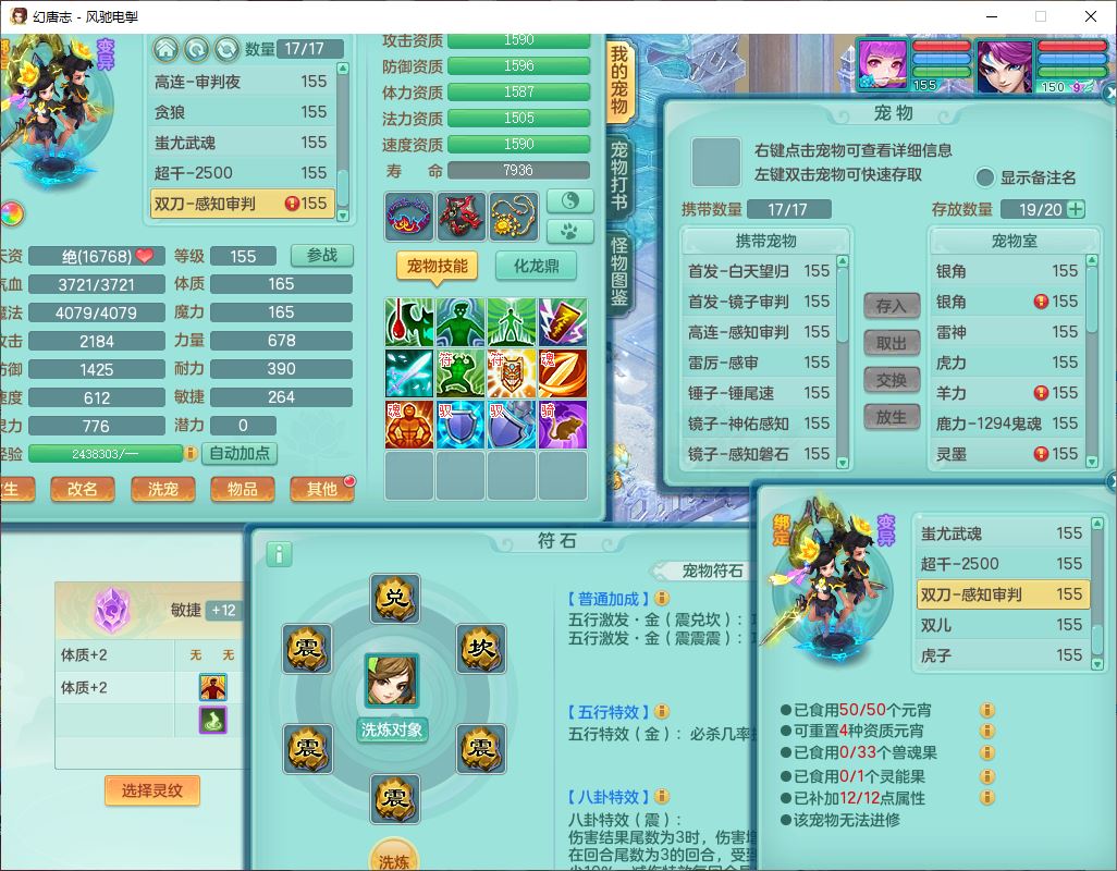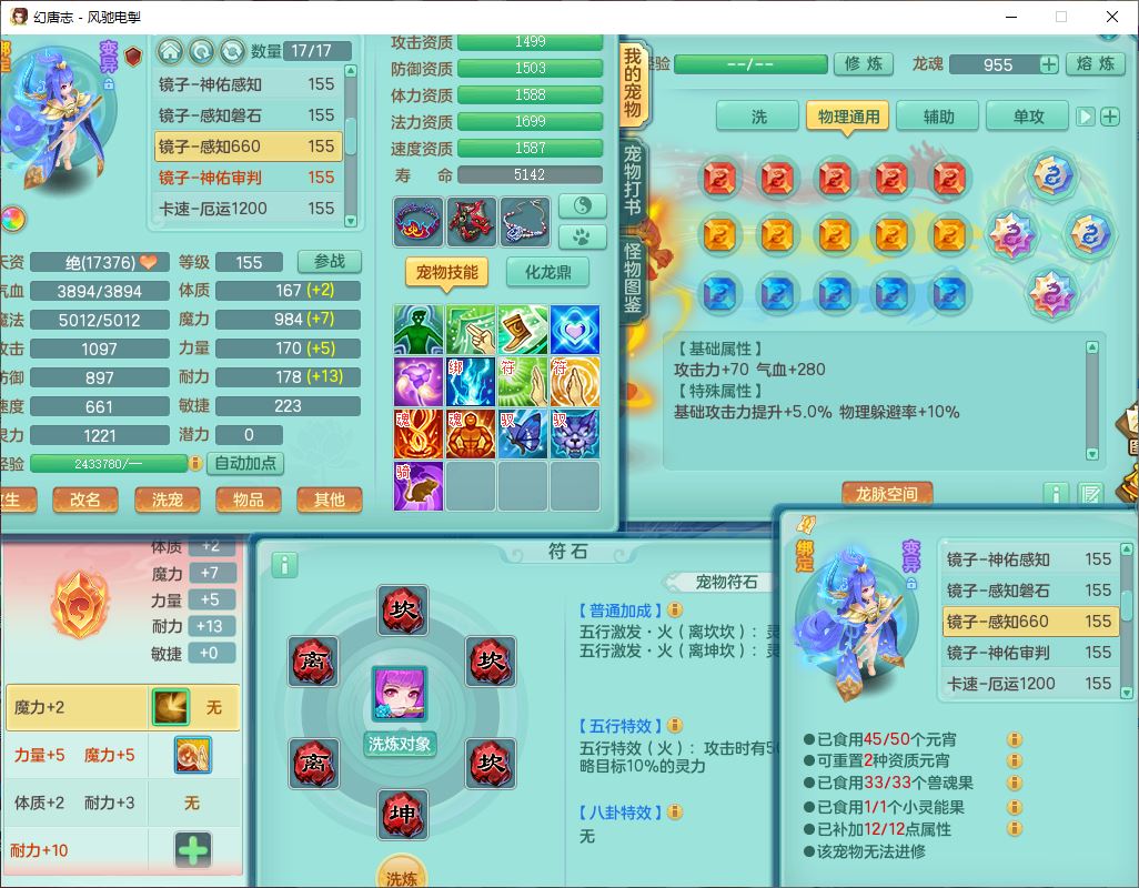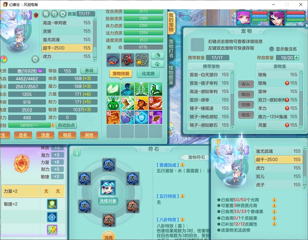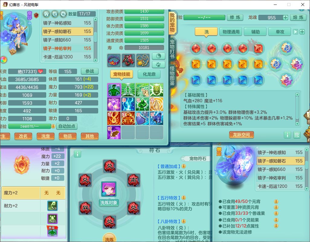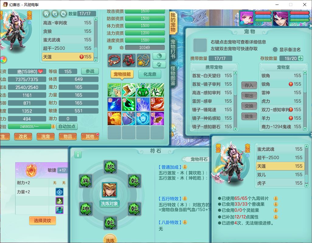 4373风驰电掣159男盘丝【潜龙号】精灵舞,4位靓号,2龙(换)1内5镜花1望归4特殊(剑胆、羽袭、战争、祈雨),9觉醒6宠皮7六字10四字23只满果子,17格子,11红星辰之拥装备,封印精通群体安神帽子,愤怒Y笑里腰带,迅捷群体守护鞋子,鼎5.0+70+280,法爆8.7,2套符石,69天月卡,冰晶庭院,永久外观、精灵皮肤,51个内丹碎片,5坐骑