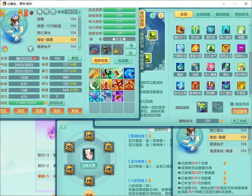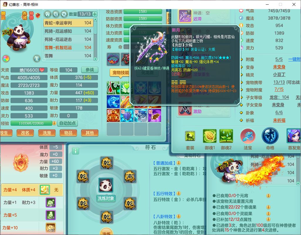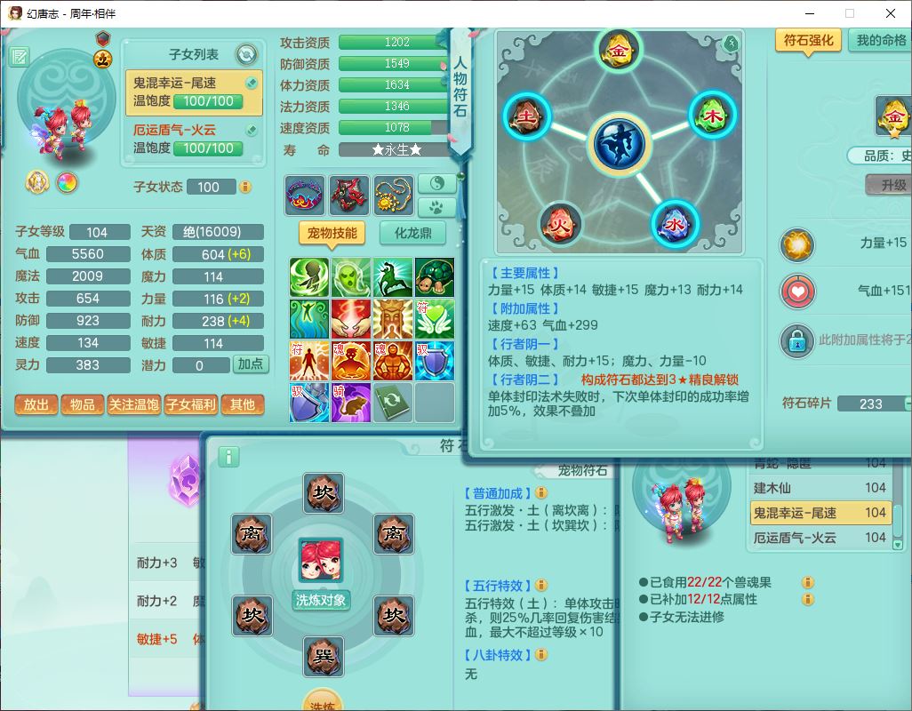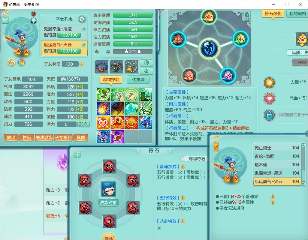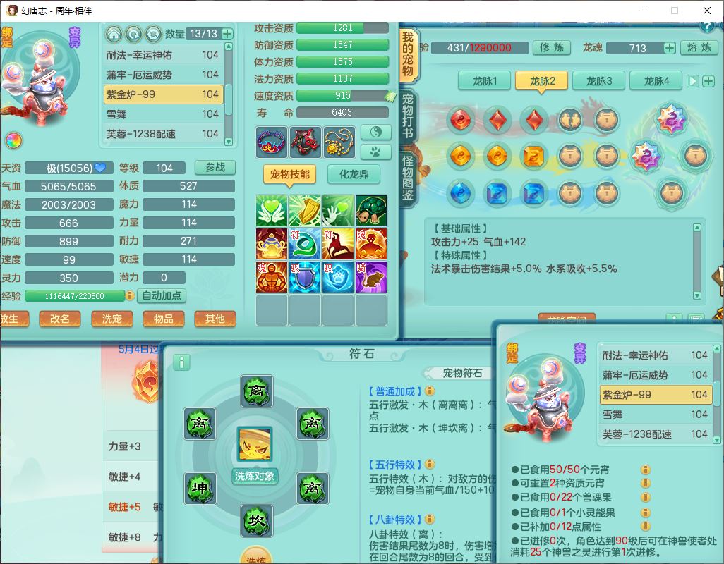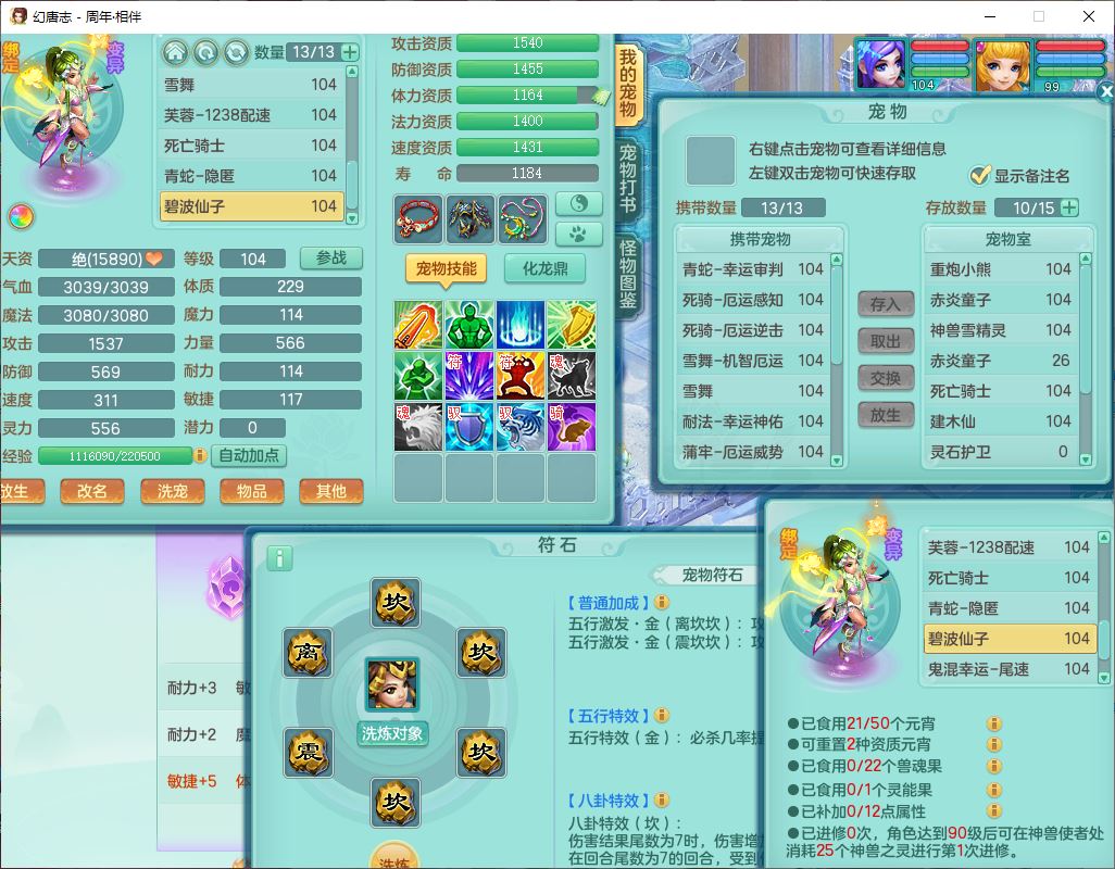 52695周年相伴99女普陀体敏精灵,1内(带蛇影)1青蛇(无内)4翻江2舍身1金炉1童子,4觉醒3宠皮2五字8四字7只满果子,8红装备,Y慈航项链,愤怒晶清腰带,鼎2.0,27天月卡,冰晶庭院153,永久头饰、精灵皮肤,57个内丹碎片,1双人飞行坐骑