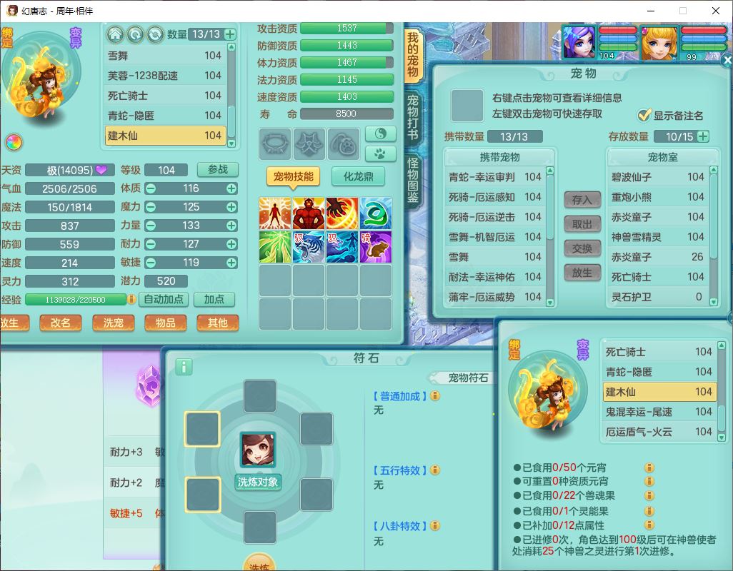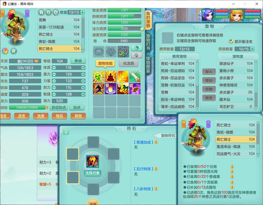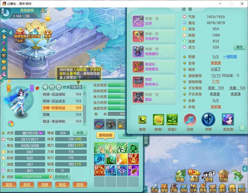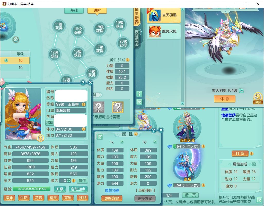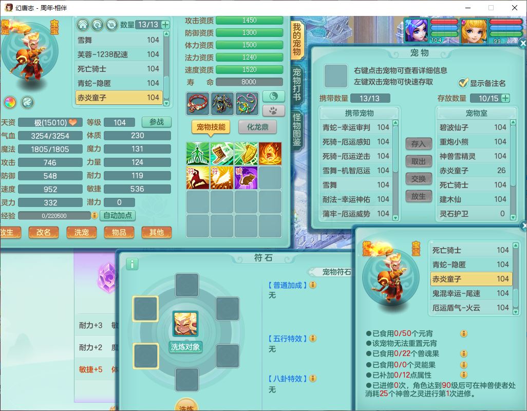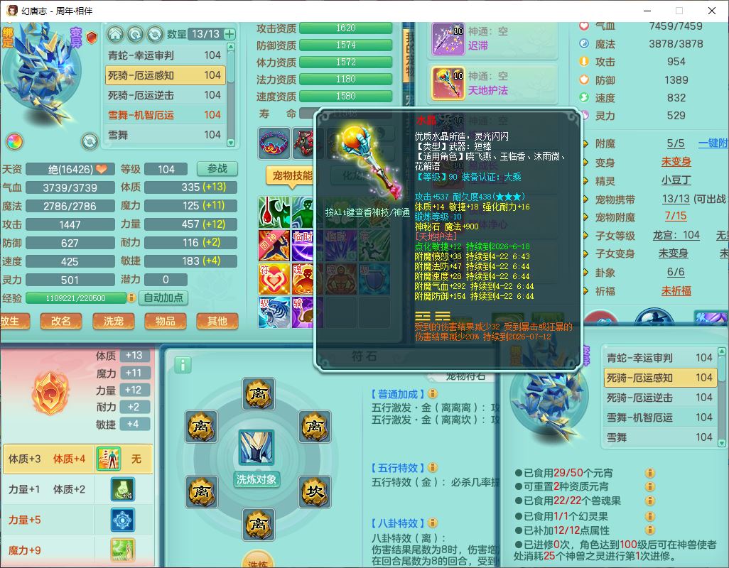 52695周年相伴99女普陀体敏精灵,1内(带蛇影)1青蛇(无内)4翻江2舍身1金炉1童子,4觉醒3宠皮2五字8四字7只满果子,8红装备,Y慈航项链,愤怒晶清腰带,鼎2.0,27天月卡,冰晶庭院153,永久头饰、精灵皮肤,57个内丹碎片,1双人飞行坐骑