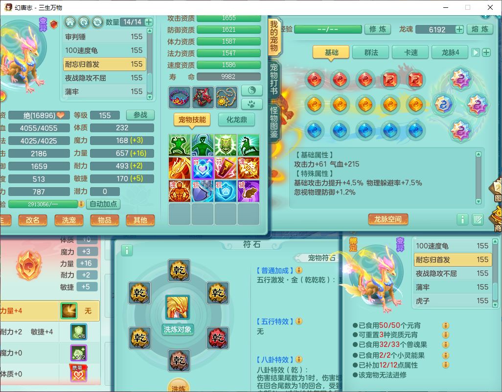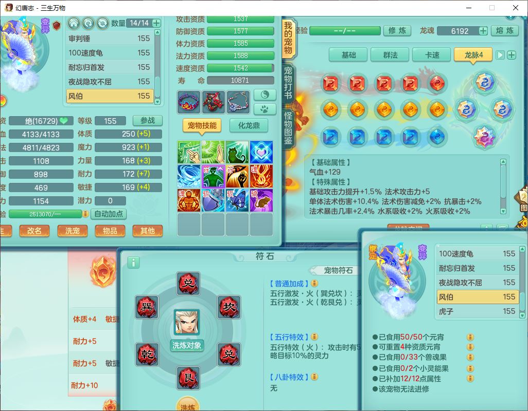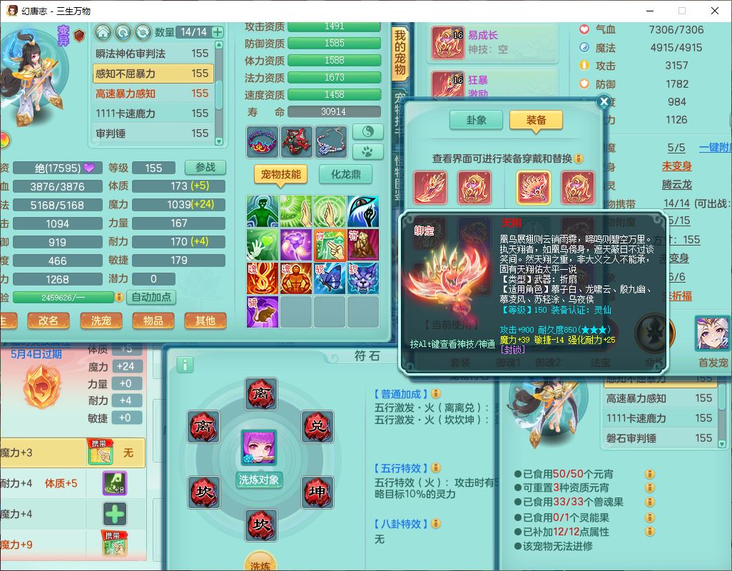 71476WH三生万物159男万兽【马上发财+暴龙猎手+火焰之力】精灵歌,1龙1内丹青蛇1神兽(无内)2镜花1龙姬1望归1金炉,3觉醒1宠皮5四字综合7只满果子,7红装备,单加狂暴激励武器,神佑项链,崩山衣服,一套封系装备,封锁武器,愤怒腰带,匠心止戈项链,鼎4.5,冰晶庭院153,永久头饰、精灵皮肤,1双人飞行坐骑