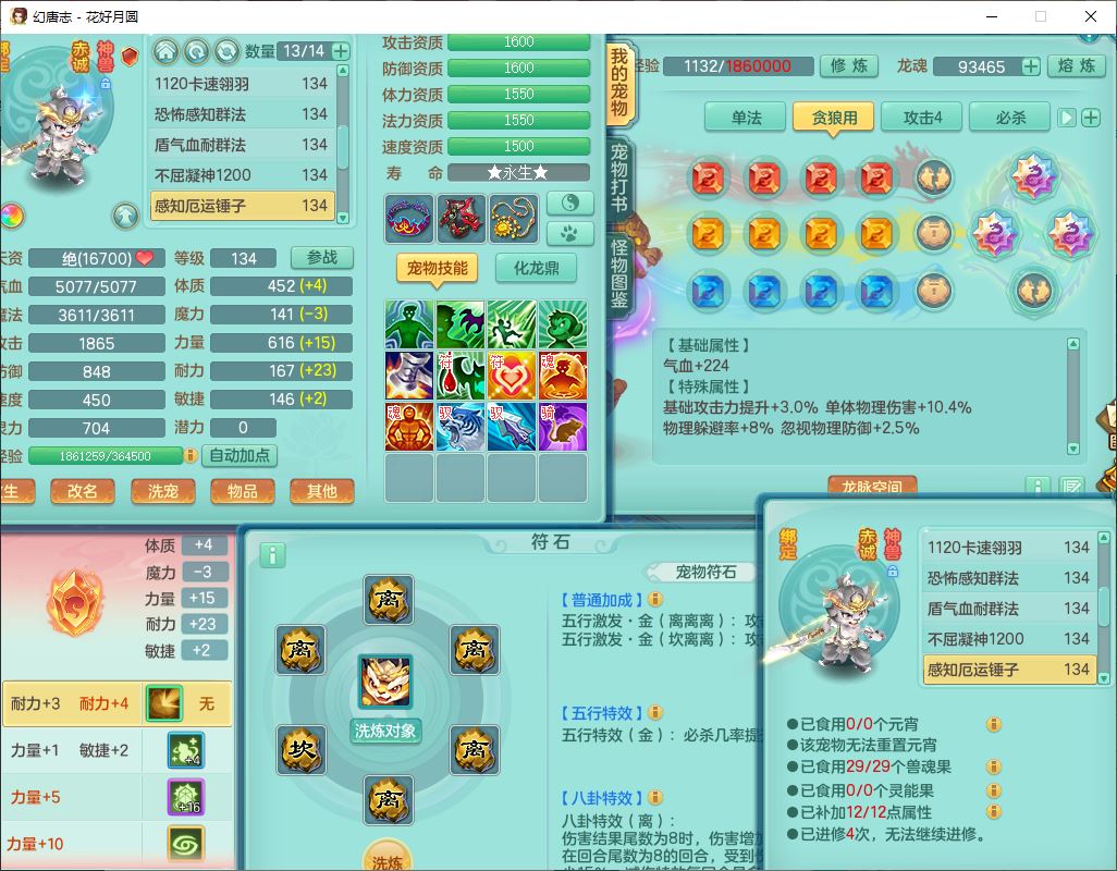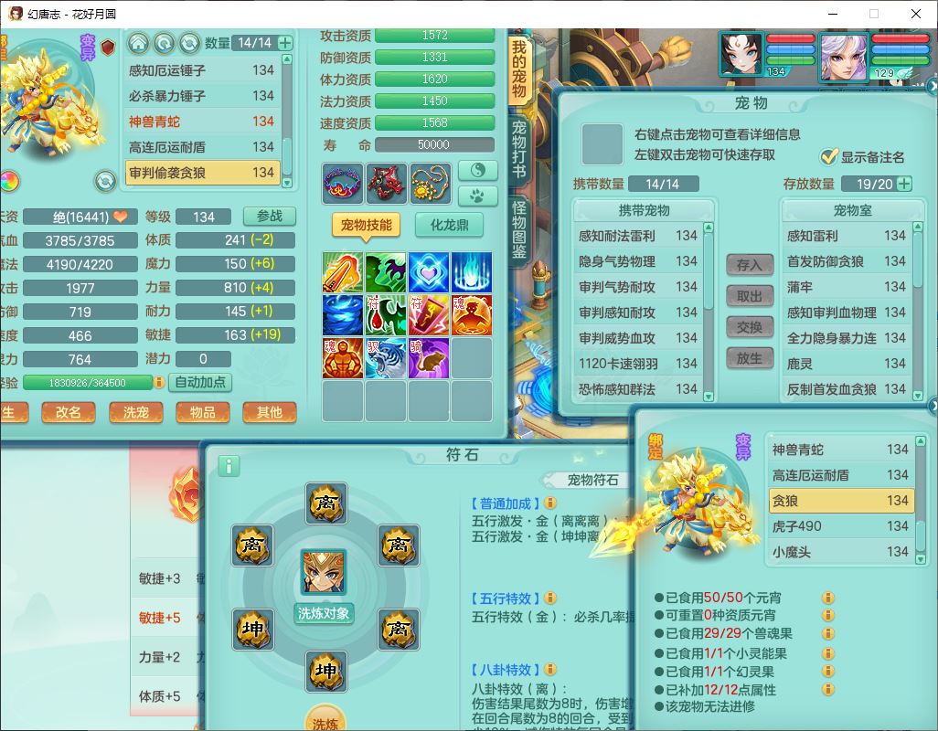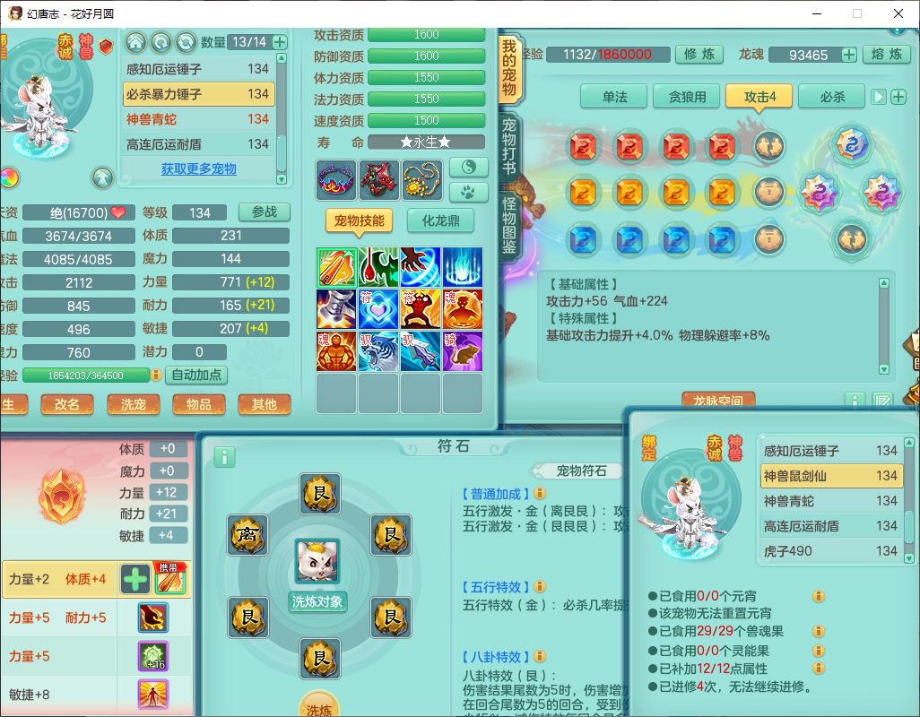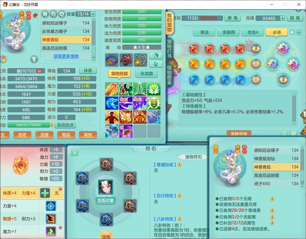 4372花好月圆129男灵月【潜龙号】精灵舞,7龙(1换)3内(1青蛇)3贪狼2九幽1金炉,11觉醒7宠皮(1幻灵果)7六字4五字6四字19只满果子,8红装备,强壮群体守护衣服,愤怒止戈腰带,匠心四海衣服,Y激励鞋子,鼎4.0+56+224,2套符石,庭院150,永久外观、精灵皮肤,33个仙兽灵,140多个兽魂果,一页还童丹,1双人飞行坐骑