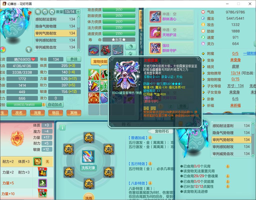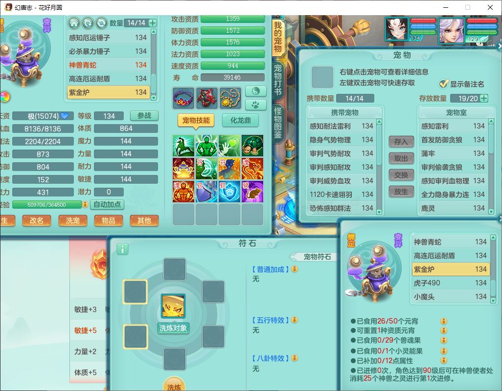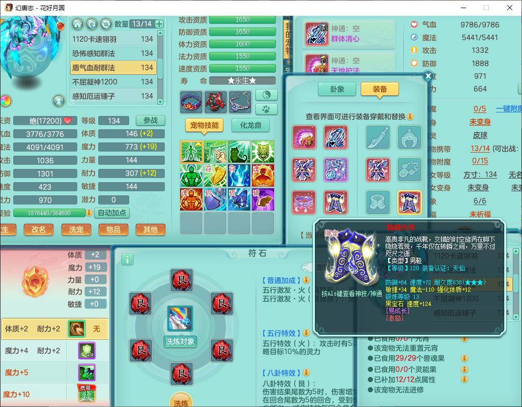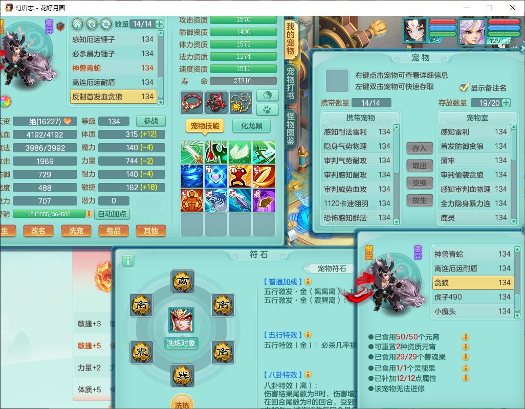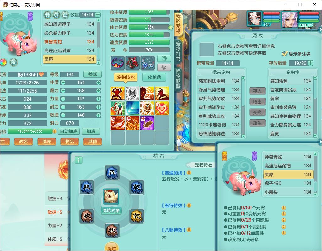 4372花好月圆129男灵月【潜龙号】精灵舞,7龙(1换)3内(1青蛇)3贪狼2九幽1金炉,11觉醒7宠皮(1幻灵果)7六字4五字6四字19只满果子,8红装备,强壮群体守护衣服,愤怒止戈腰带,匠心四海衣服,Y激励鞋子,鼎4.0+56+224,2套符石,庭院150,永久外观、精灵皮肤,33个仙兽灵,140多个兽魂果,一页还童丹,1双人飞行坐骑