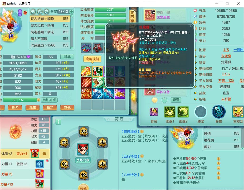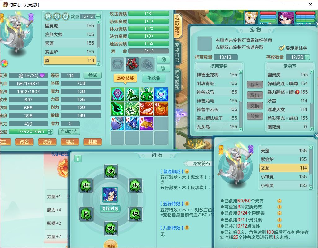 24316九天揽月159双开号,男万兽精灵歌、怒,5内(1青蛇2龙马)1镜花1金炉,2觉醒1宠皮2五字(1洗练珠)9四字综合14只满果子,8红全单加装备,击退Y明镜武器,以战衣服,有法系装,法爆慈航武器,鼎4.5+280,2套符石,庭院172房屋164,永久头饰、精灵皮肤,2坐骑(1双人);女方寸精灵舞、歌,1神兽(无内)2镜花1特殊(枪出),4觉醒3六字6四字综合9只满果子,8红装备,愤怒破力腰带,Y群体守备鞋子,鼎4.5,24个内丹碎片,1飞行坐骑