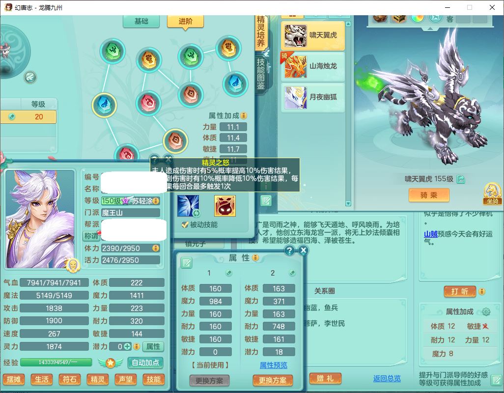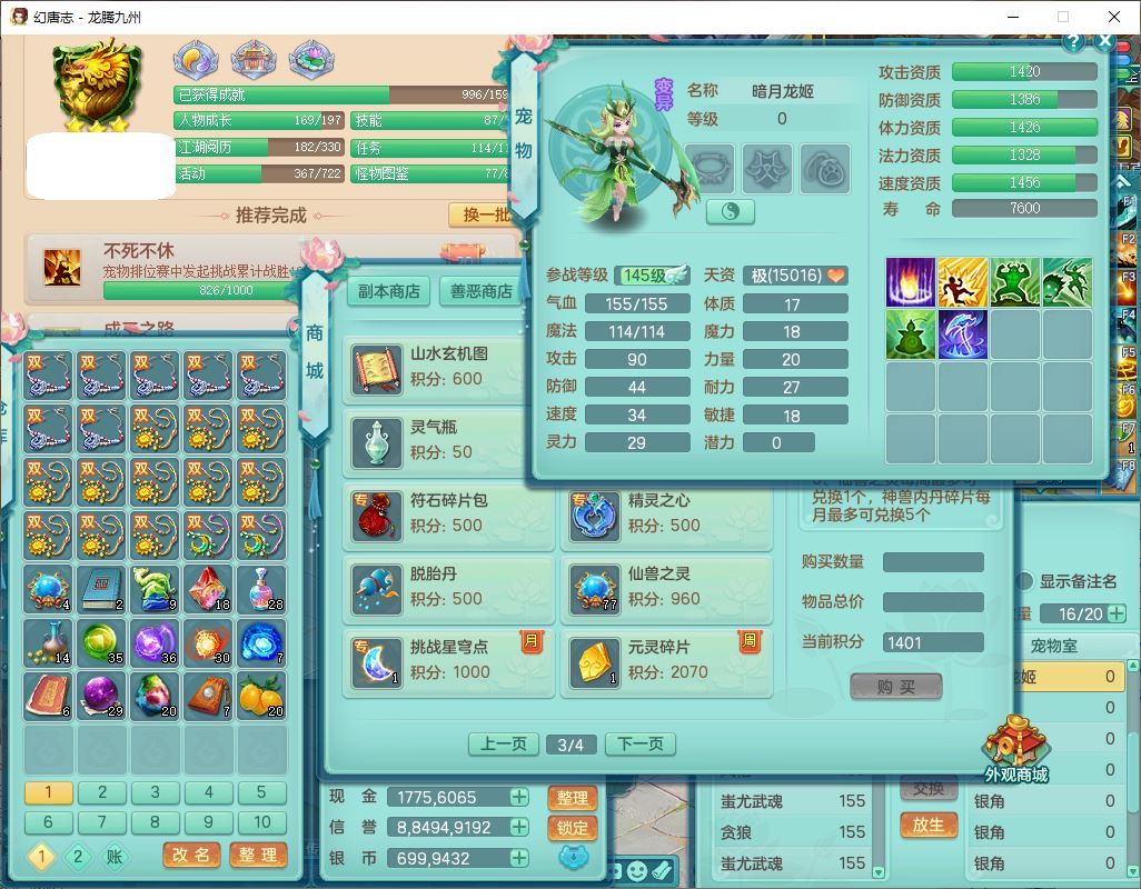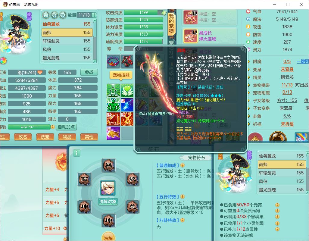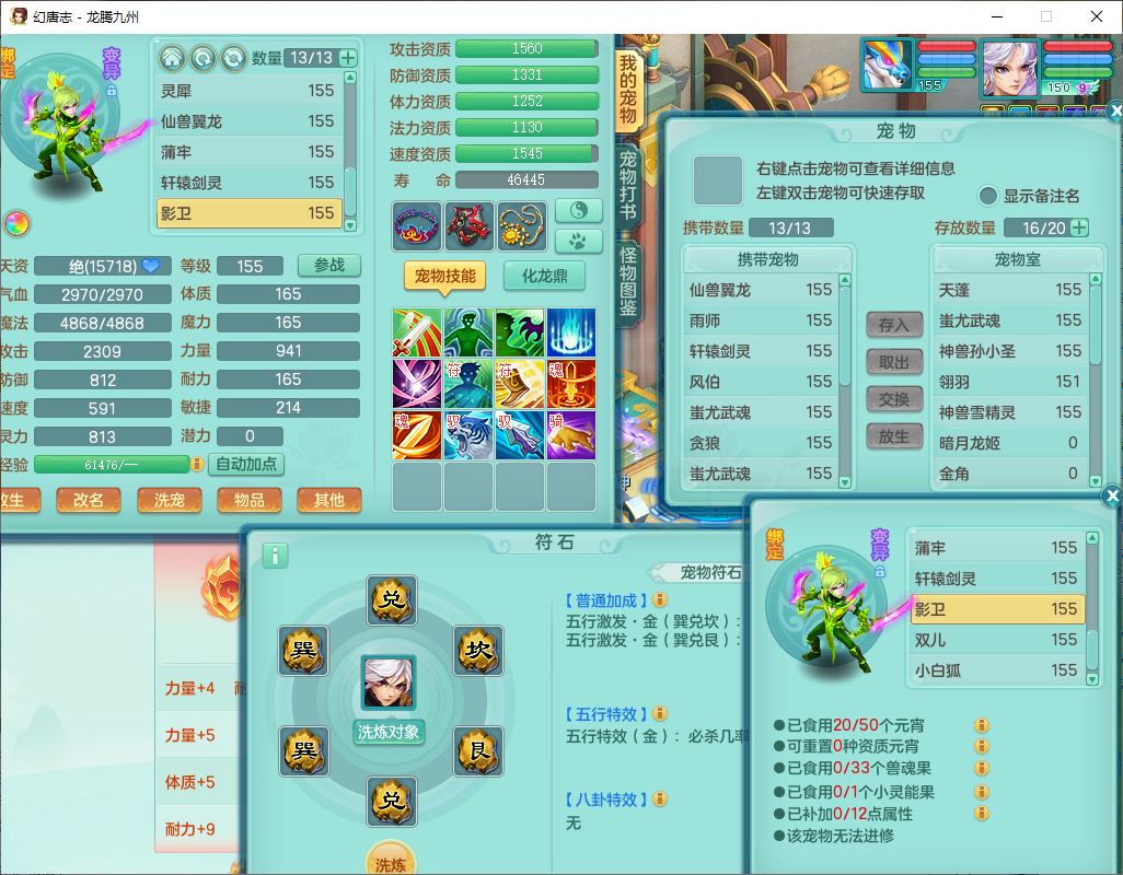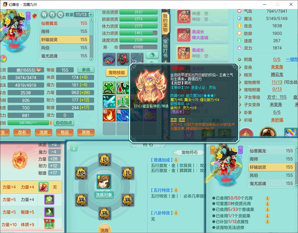 24315龙腾九州159男魔王精灵怒,2龙(1破境)2神兽(无内)1望归1镜花1龙姬,5觉醒2六字1五字1四字,7红全部单加装备,Y烽火武器,Y四灵项链,回气腰带,鼎4.5,庭院160,永久精灵皮肤,半页还童丹,600多w神武币,仓库多存货,1双人飞行坐骑