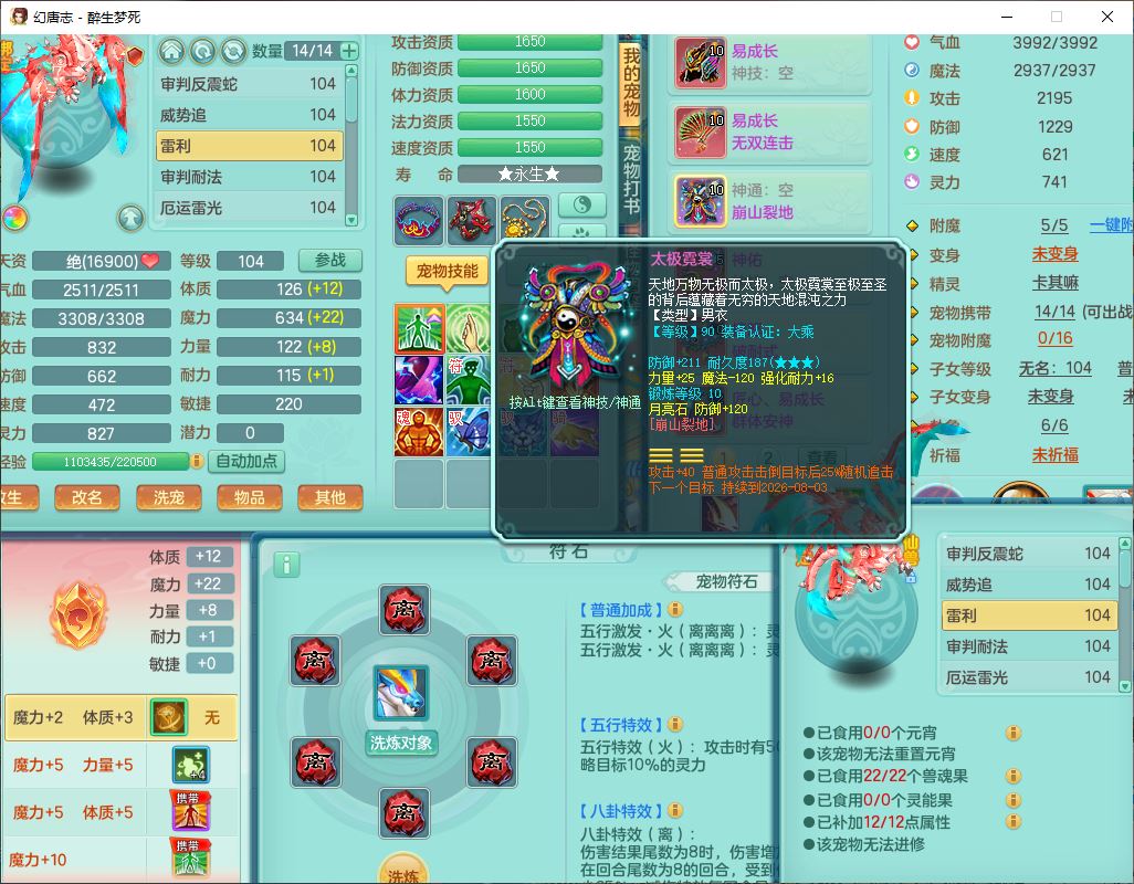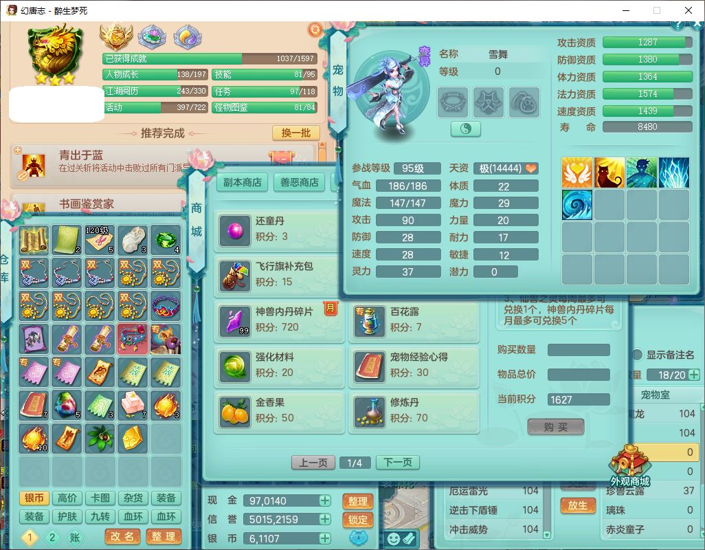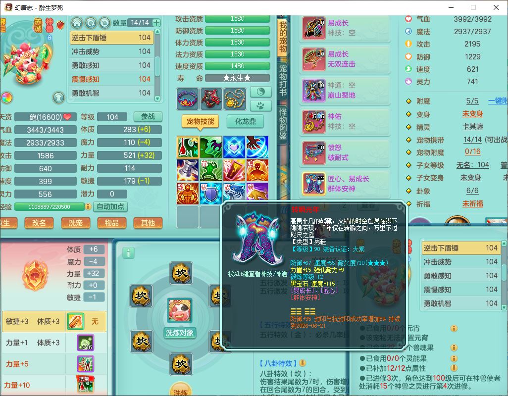 52694醉生梦死99男天策【潜龙号】力敏精灵,6龙(换、无内)2内(1青蛇)2翻浆2舍身,10觉醒5宠皮11六字2五字7四字19只满果子,10红装备,Y破血武器,崩山衣服,愤怒破耐腰带,匠心Y群体安神鞋子,仓库多装备,有辅助法系装,法爆慈航武器,法术缭乱止戈衣服,鼎3.0+42+168,3套符石,庭院154,永久头饰、背饰、精灵皮肤,1双人飞行坐骑