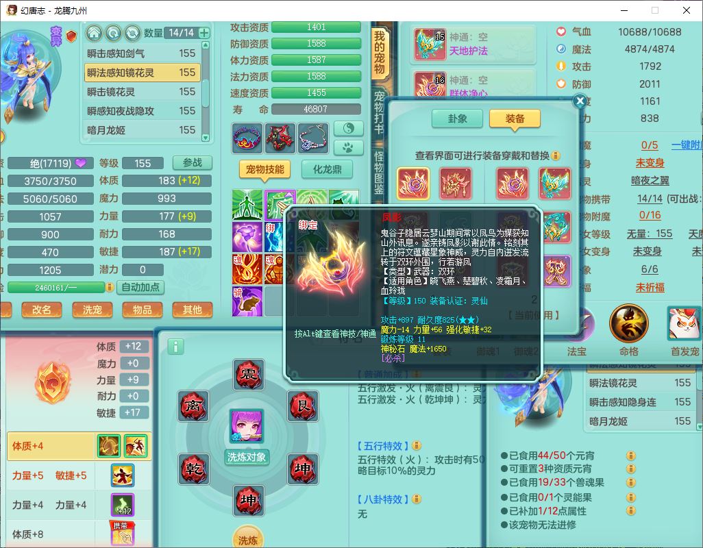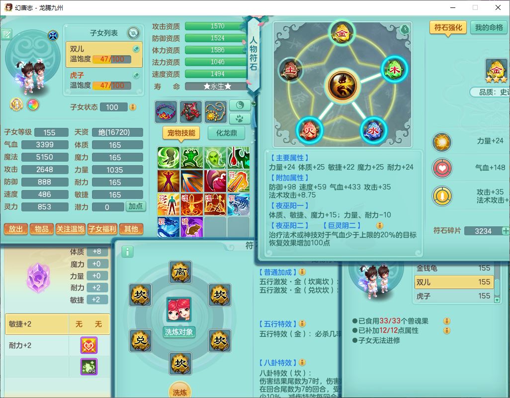 24318龙腾九州159双开号,女无量精灵舞,1龙1内(破境)1望归1龙姬2镜花,4觉醒2五字9四字综合9只满果子,愤怒五特装备,神佑慈航项链,一套输出装,必杀武器,崩山腰带,鼎5.5,400多w神武币,27个内丹碎片,1双人飞行坐骑,带150奶粉;女天宫精灵歌,1神兽(无内,破境)1望归2镜花2龙姬1特殊兽决(枪出),7觉醒10四字,全单加8红装备,Y五雷武器,Y疾速项链,一套辅助装备,鼎4.5,33个内丹碎片,160多w神武币,1双人坐骑;女无量精灵舞,1龙1内(破境)1望归1龙姬2镜花,4觉醒2五字9四字综合9只满果子,愤怒五特装备,神佑慈航项链,一套输出装,必杀武器,崩山腰带,鼎5.5,400多w神武币,27个内丹碎片,1双人飞行坐骑,带150奶粉