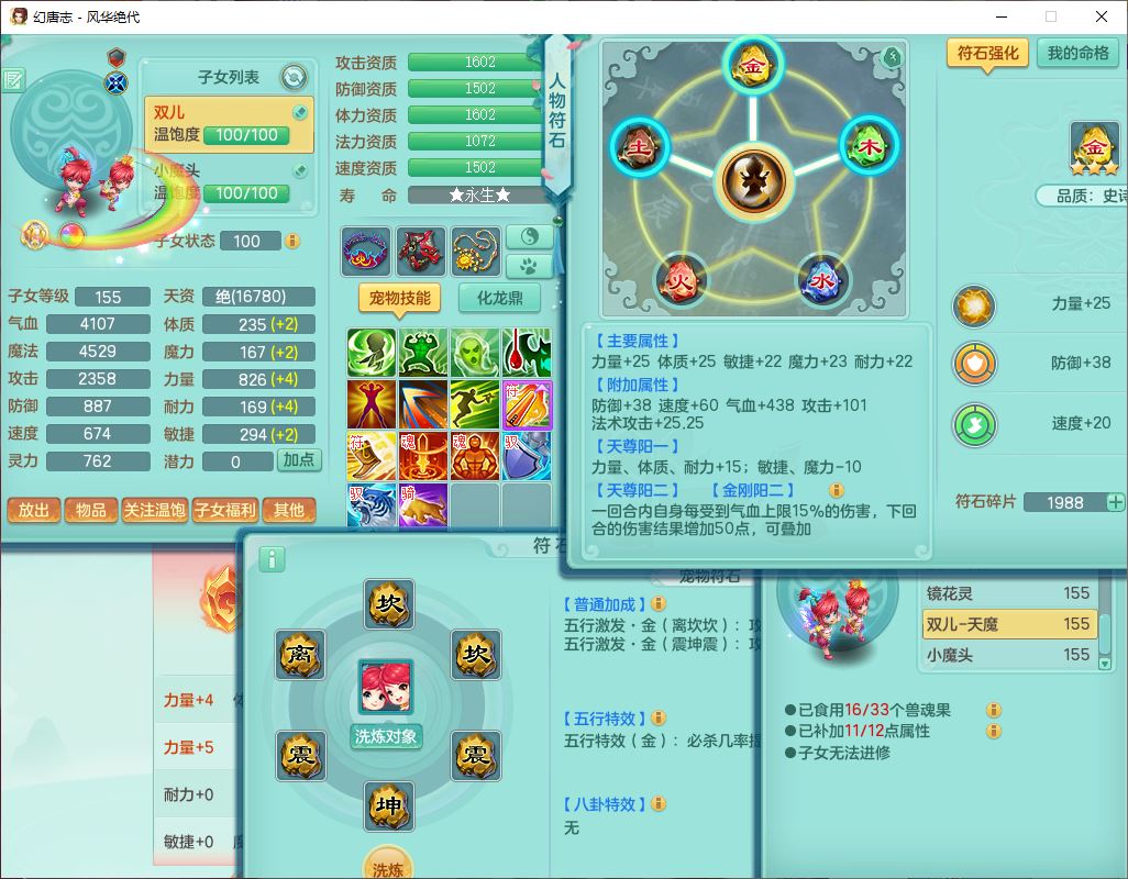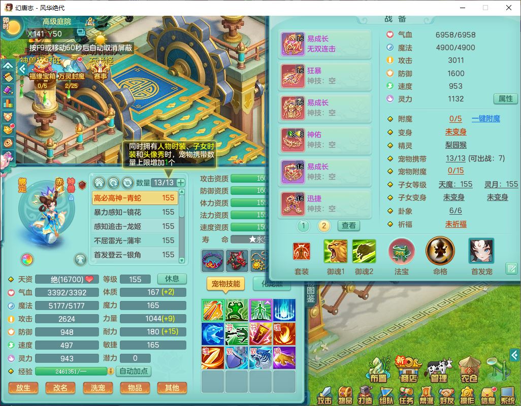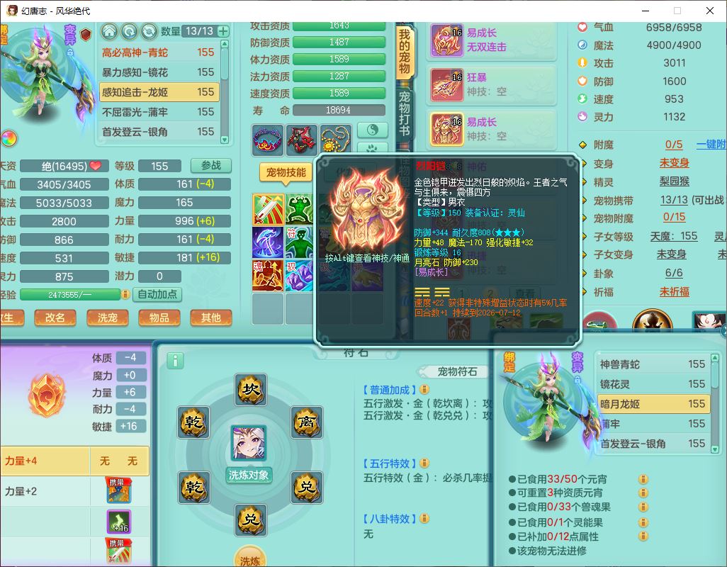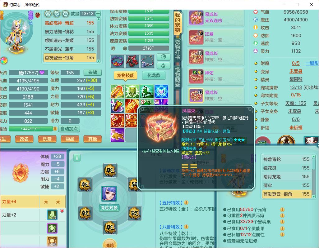 24311风华绝代159双开号,男万兽精灵舞,1内丹青蛇1龙姬1特殊(登云)1镜花,2五字5四字,7红装备,Y破血帽子,926单加狂暴武器,神佑项链,一套全单加法系装备,鼎4.5,35天月卡,房屋155,49个仙兽灵,15个内丹碎片,300多w神武币,1双人飞行坐骑;159男无量精灵悟,2神兽(无内)1望归1龙姬1镜花1特殊兽决(破碎),8四字,8红装备,回春四海武器,迅捷法术反制鞋子,愤怒腰带,回春武器,鼎5.5,63个仙兽灵,13个内丹碎片,600多w神武币,3坐骑