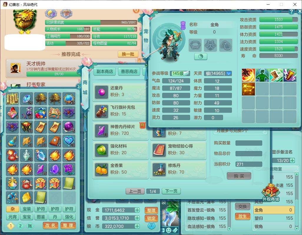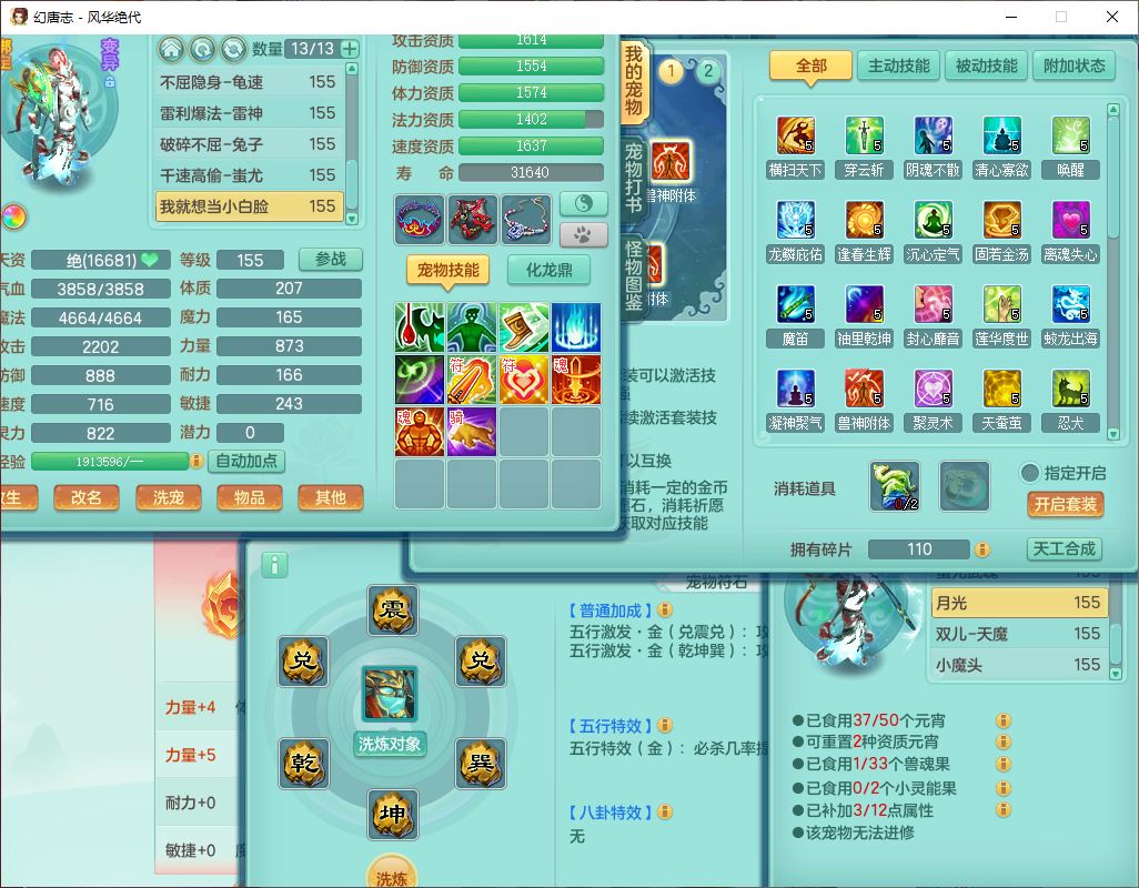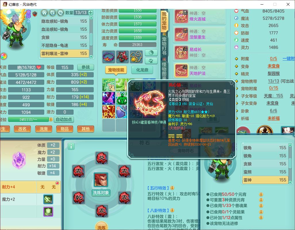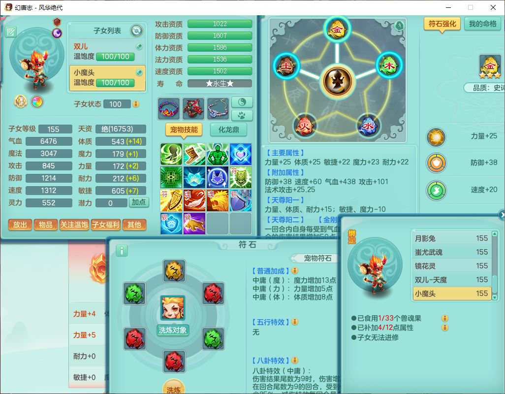 24311风华绝代159双开号,男万兽精灵舞,1内丹青蛇1龙姬1特殊(登云)1镜花,2五字5四字,7红装备,Y破血帽子,926单加狂暴武器,神佑项链,一套全单加法系装备,鼎4.5,35天月卡,房屋155,49个仙兽灵,15个内丹碎片,300多w神武币,1双人飞行坐骑;159男无量精灵悟,2神兽(无内)1望归1龙姬1镜花1特殊兽决(破碎),8四字,8红装备,回春四海武器,迅捷法术反制鞋子,愤怒腰带,回春武器,鼎5.5,63个仙兽灵,13个内丹碎片,600多w神武币,3坐骑