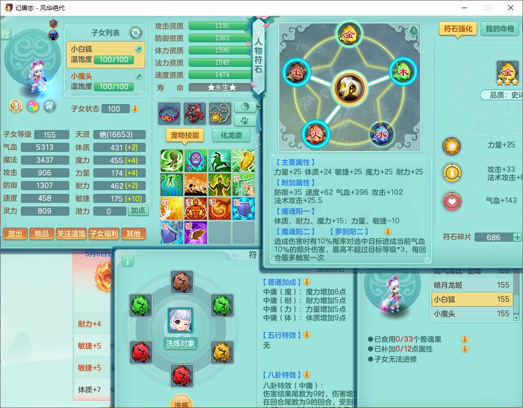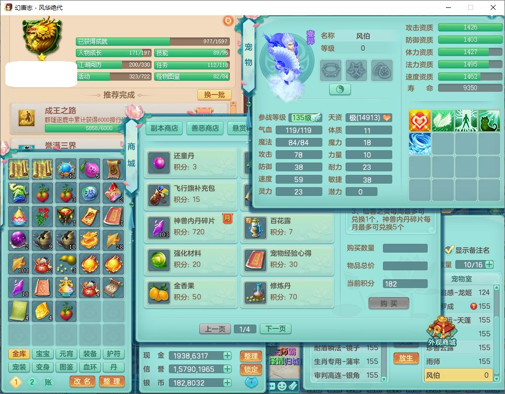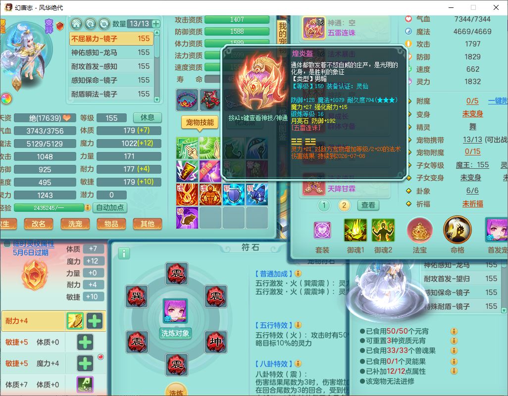 24310风华绝代159男魔王【马上发财+火焰之力】精灵舞,1内丹龙马1望归2特殊(祈雨,兽决禁锢)1金炉3镜花,4觉醒1宠皮1六字2五字7四字综合8只满果子,9红星辰之拥装备,法爆群体安神武器,五雷帽子,261单加Y群体守备项链,法缭四海鞋子,一套物理装备,932单加Y武器,崩山衣服,神佑罗汉项链,Y破血鞋子,鼎4.5,143天月卡,永久头饰、背饰、精灵皮肤,18个内丹碎片,11个仙兽灵,180多w神武币,1双人坐骑,带150奶粉