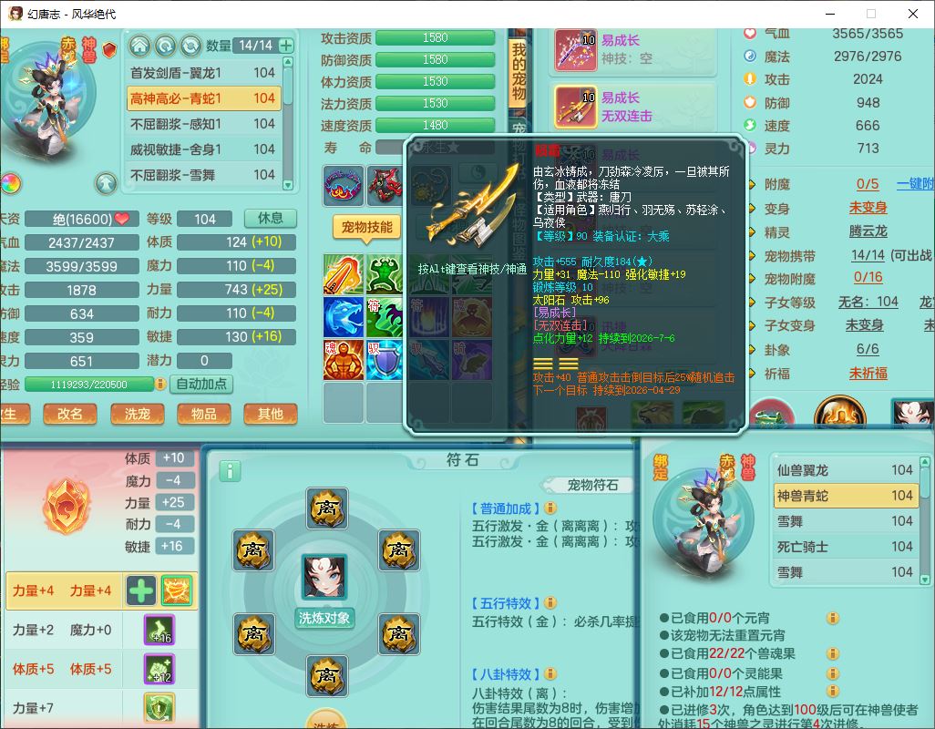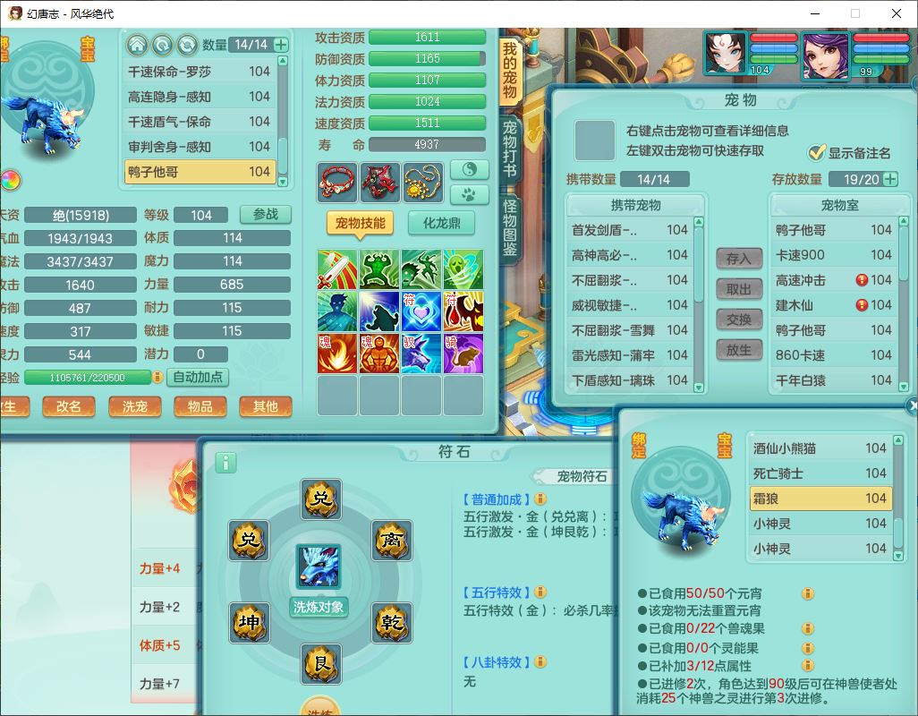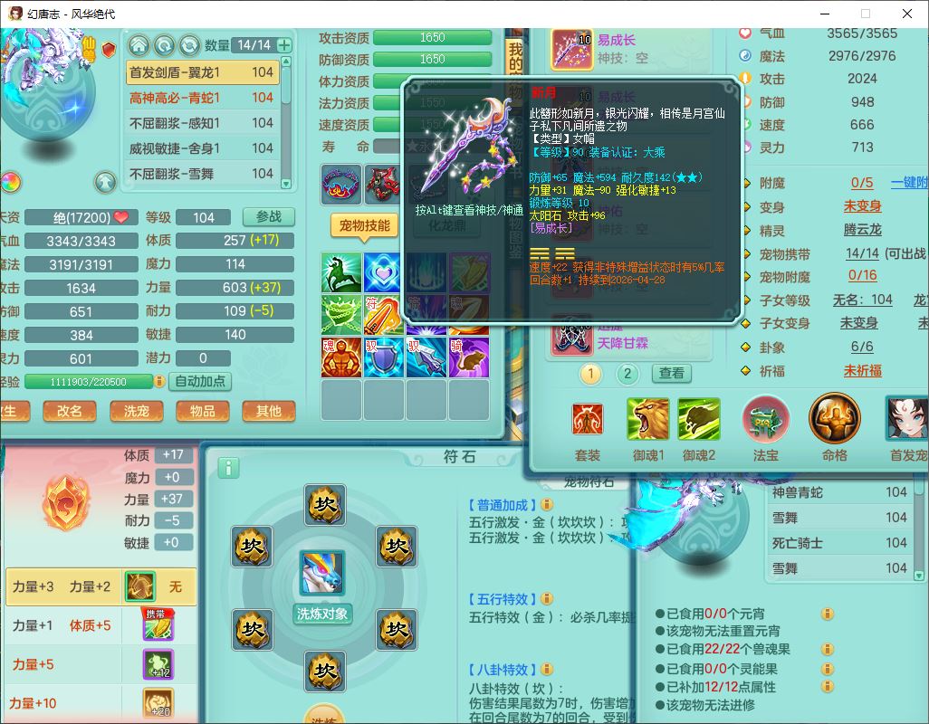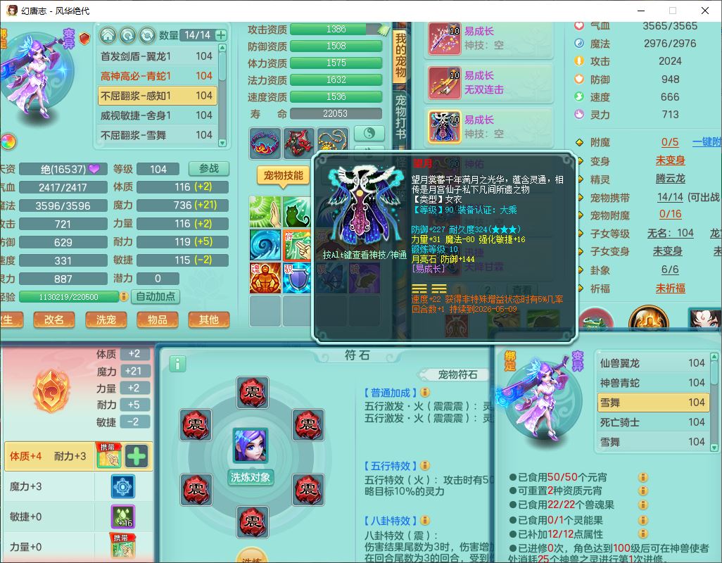 24309风华绝代99女万兽【准潜龙号,差4只宝宝1条附加】全力精灵, 1龙1内丹青蛇2翻江3舍身,4觉醒2宠皮4六字9四字11只满果子,8红装备,Y破血武器,神佑项链,愤怒腰带,迅捷四海鞋子,鼎2.5+42+168,房屋169,永久背饰、精灵皮肤,44个内丹碎片,1双人飞行坐骑,带150奶粉,8位靓号,装备宝宝齐全,1双人坐骑