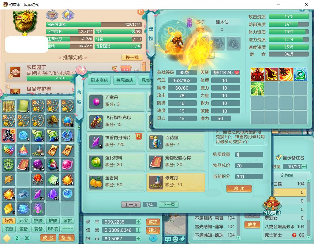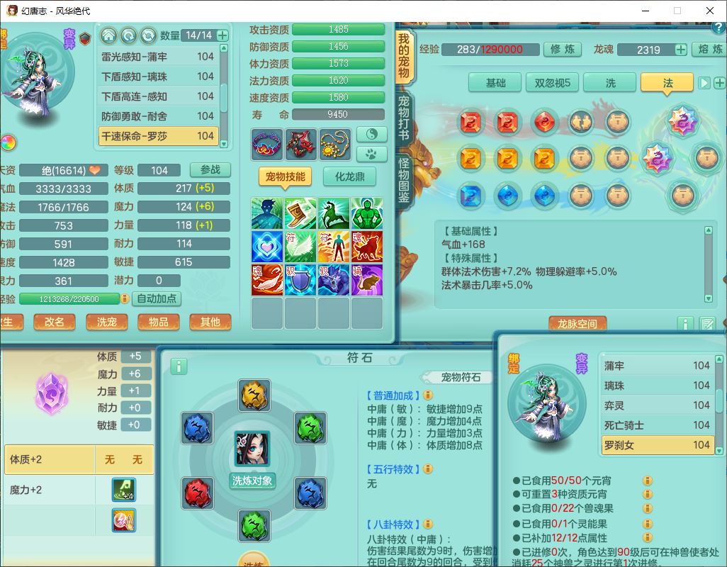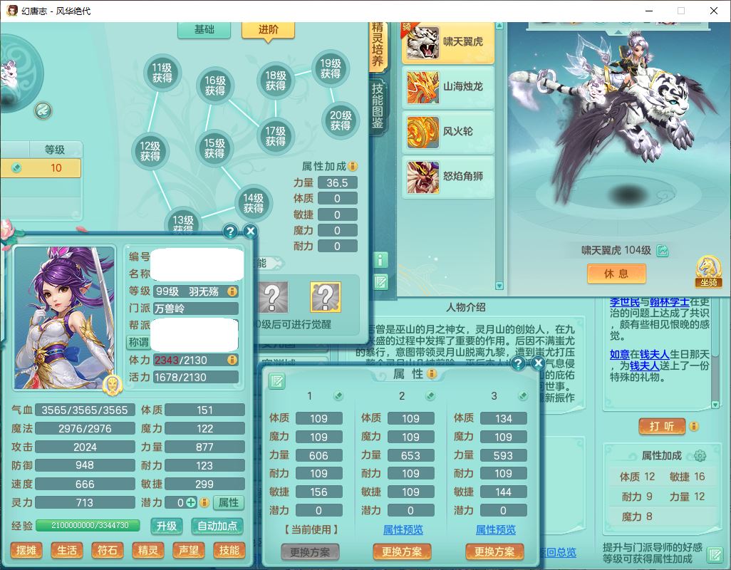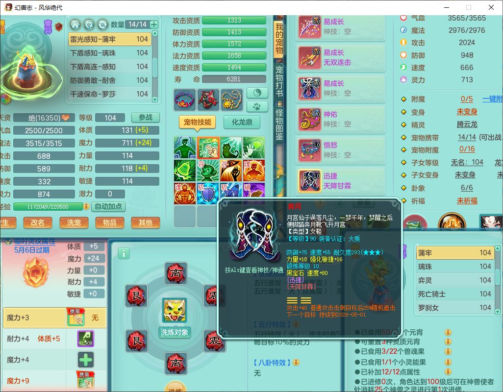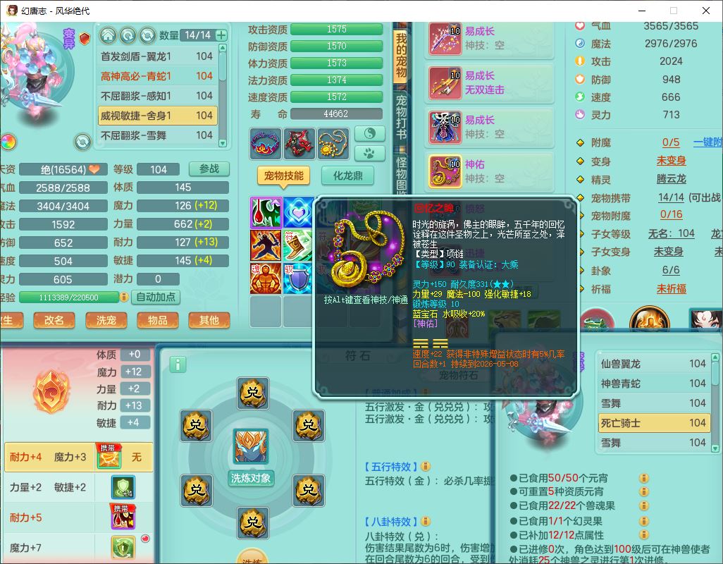 24309风华绝代99女万兽【准潜龙号,差4只宝宝1条附加】全力精灵, 1龙1内丹青蛇2翻江3舍身,4觉醒2宠皮4六字9四字11只满果子,8红装备,Y破血武器,神佑项链,愤怒腰带,迅捷四海鞋子,鼎2.5+42+168,房屋169,永久背饰、精灵皮肤,44个内丹碎片,1双人飞行坐骑,带150奶粉,8位靓号,装备宝宝齐全,1双人坐骑
