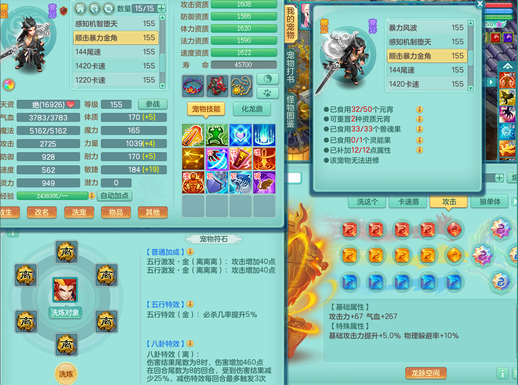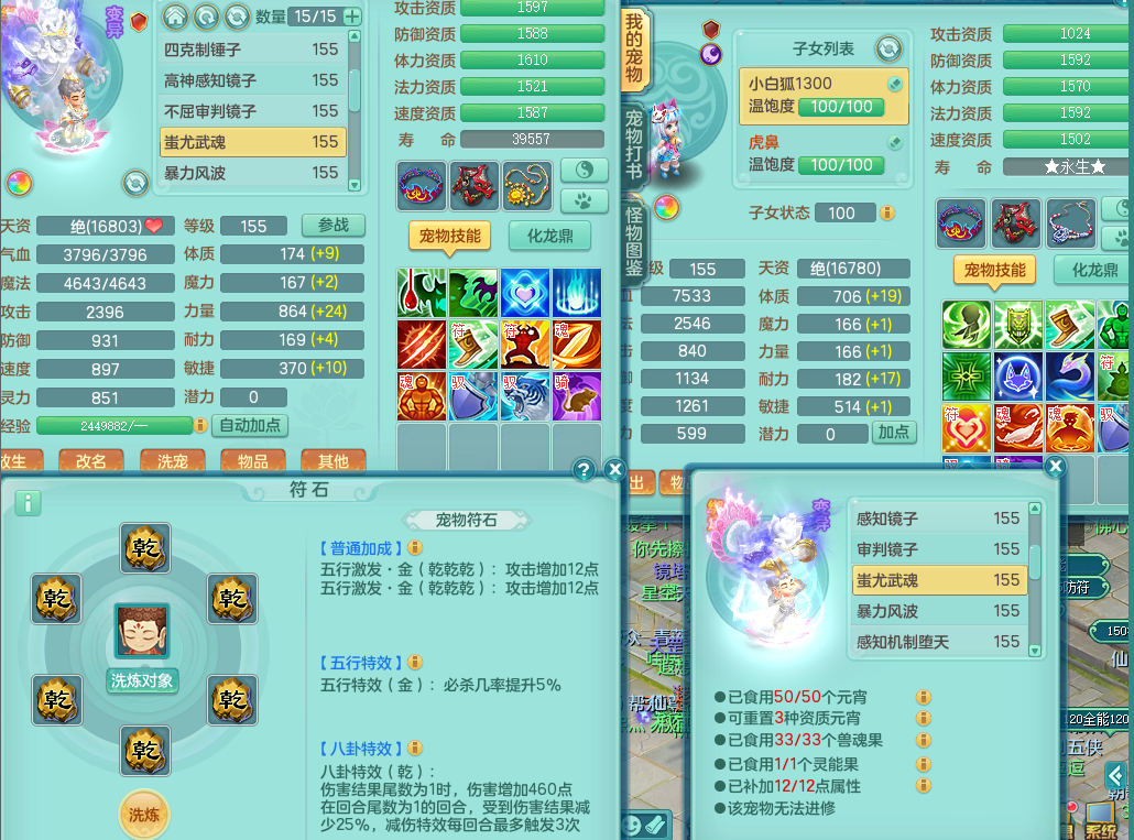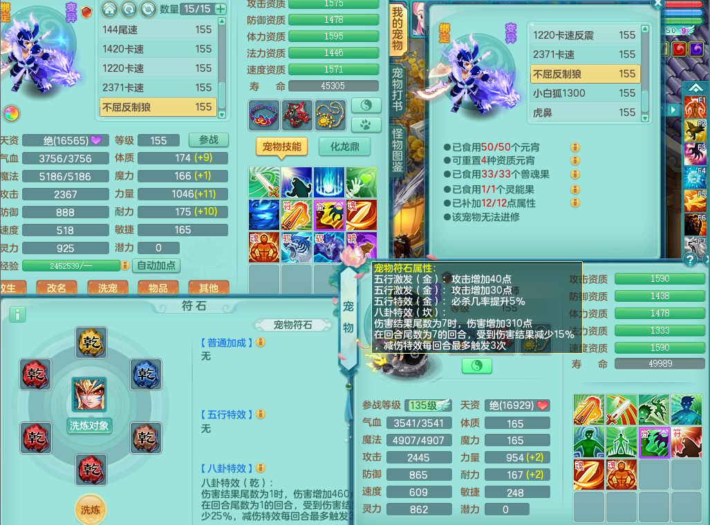 63141,扬名立万159万兽,1龙1内(存)1皮肤,8只觉醒5个6字,16只以上满果子,2特殊(月光,堕天)5只坐骑,基础5.0,精灵歌,易成长头,918攻易罗汉武器,单加50破血衣服,坚毅慈航双红项链,单加55易成长双红腰带,单加57迅捷鞋子,150庭院天上人间,永久头饰,脸饰,背饰,2980配合改密