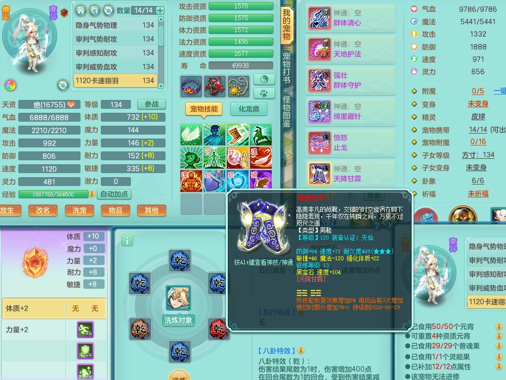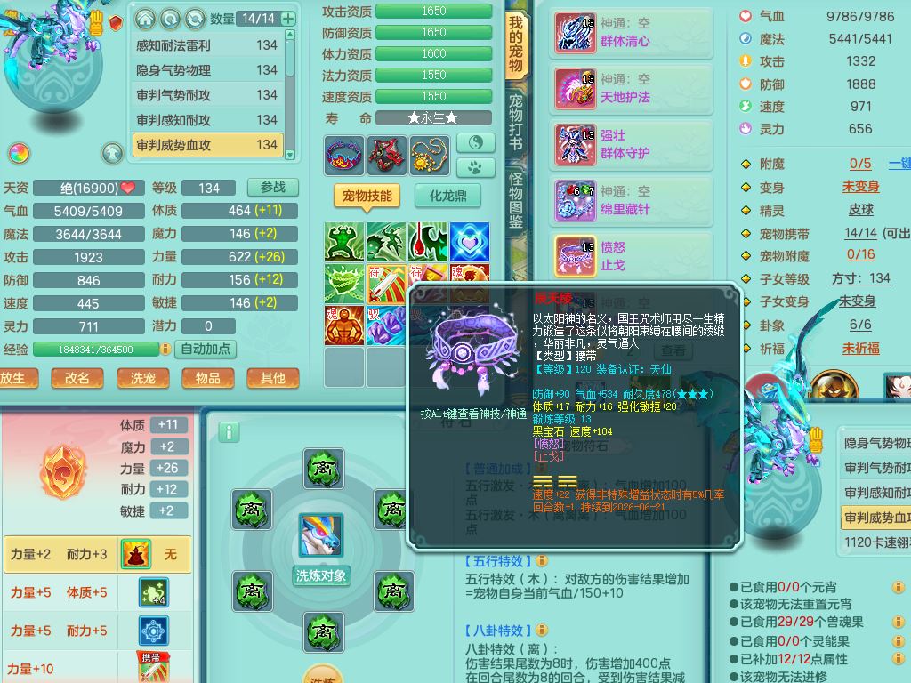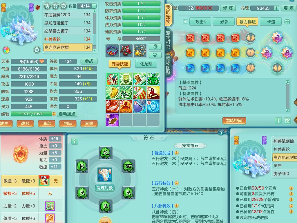 hh10398花好月圆129男灵月【潜龙号】精灵舞,2套星穹,7内丹龙3内丹神(1青蛇)7皮(1幻灵果),19只满果子11觉醒7个纯6字,8红愤怒6特,强壮群体守护衣服,愤怒止戈腰带,匠心四海衣服,Y野兽鞋,鼎4.0+56+224,2套符石,庭院150,永久外观精灵皮肤,1195金币,140多果子,33内丹碎片,宠排在榜,飞行双人坐骑