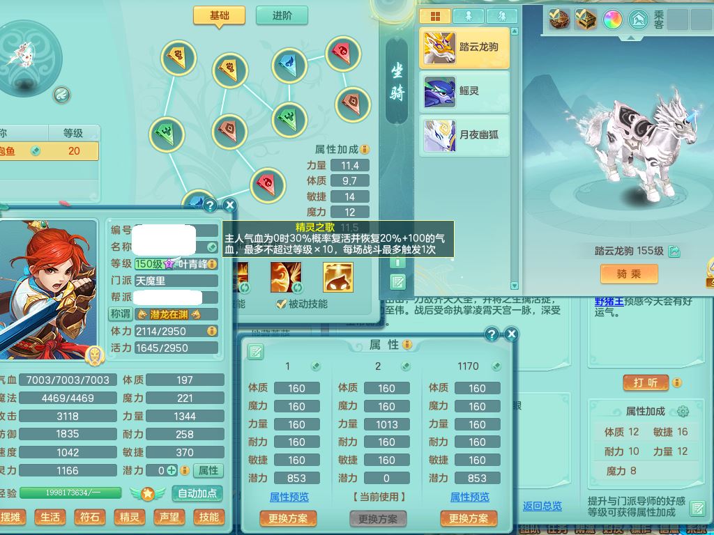 tx10403天下无双159男天魔【潜龙号】精灵歌,2套星穹,1龙(无内)2内丹神(1龙马)1皮1特殊(飞花)3镜花灵,综合20只满果子12觉醒13个纯6字,10红,909必杀双红武器,Y罗汉头,崩山衣服,坚毅破血项链,Y绝幻腰带,法系法缭烽火衣服,鼎5.0+70+280,122天月卡,庭院149房屋184,永久头饰精灵皮肤,972W神武币,宠排在榜,2坐骑(1只双人)