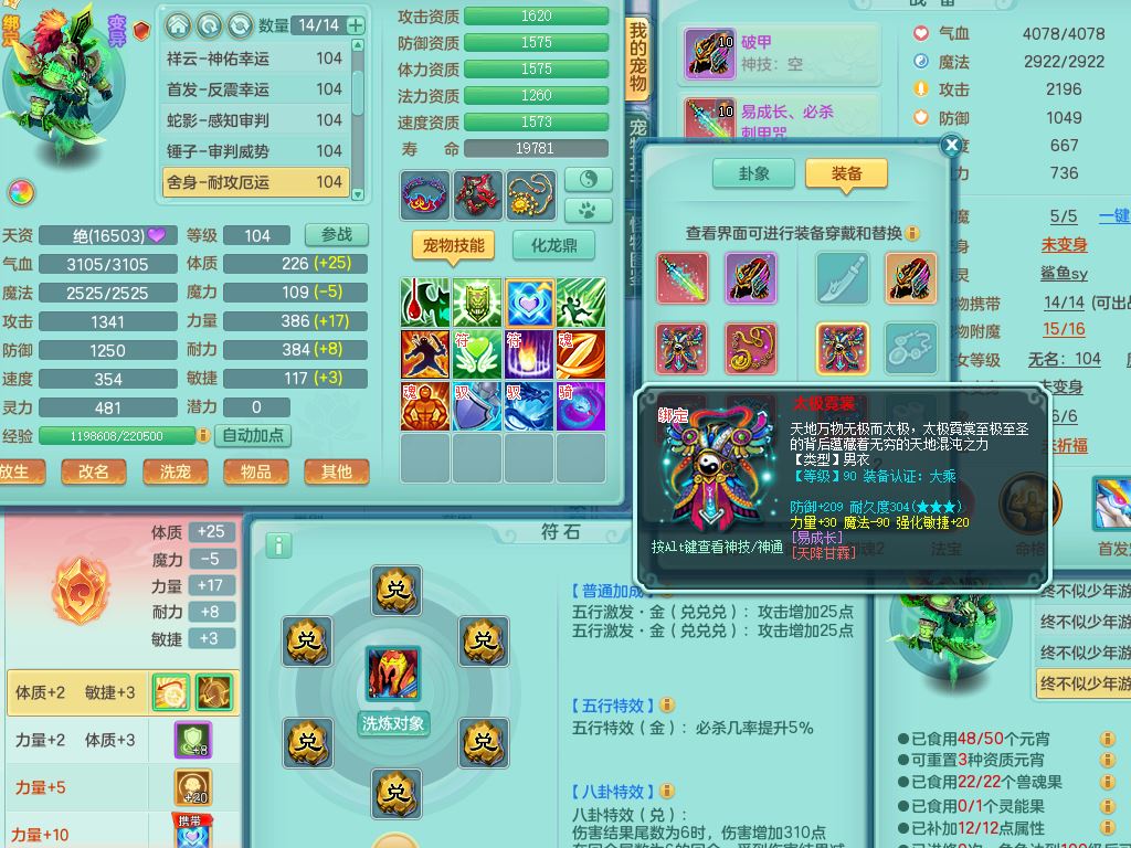 qq10405七窍玲珑99男天策【潜龙号+神驹心想事成+暴龙泰坦+西瓜冰】双系精灵,3内丹龙4内丹神4破境1皮,24只满果子13觉醒8个纯6字,11红,破甲头,545Y必杀3红武器,幸运崩山衣服,愤怒破血腰带,Y止戈鞋,Y四海衣服,愤怒幸运群体迟滞腰带,崩山头,鼎2.5+42+168,2套符石,26天月卡,冰晶庭院158房屋158,永久外观精灵皮肤,60多果子,56内丹碎片,宠排在榜,6坐骑(4只双人)