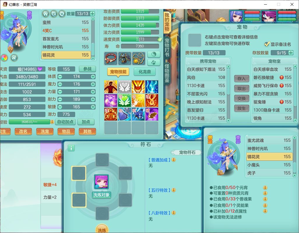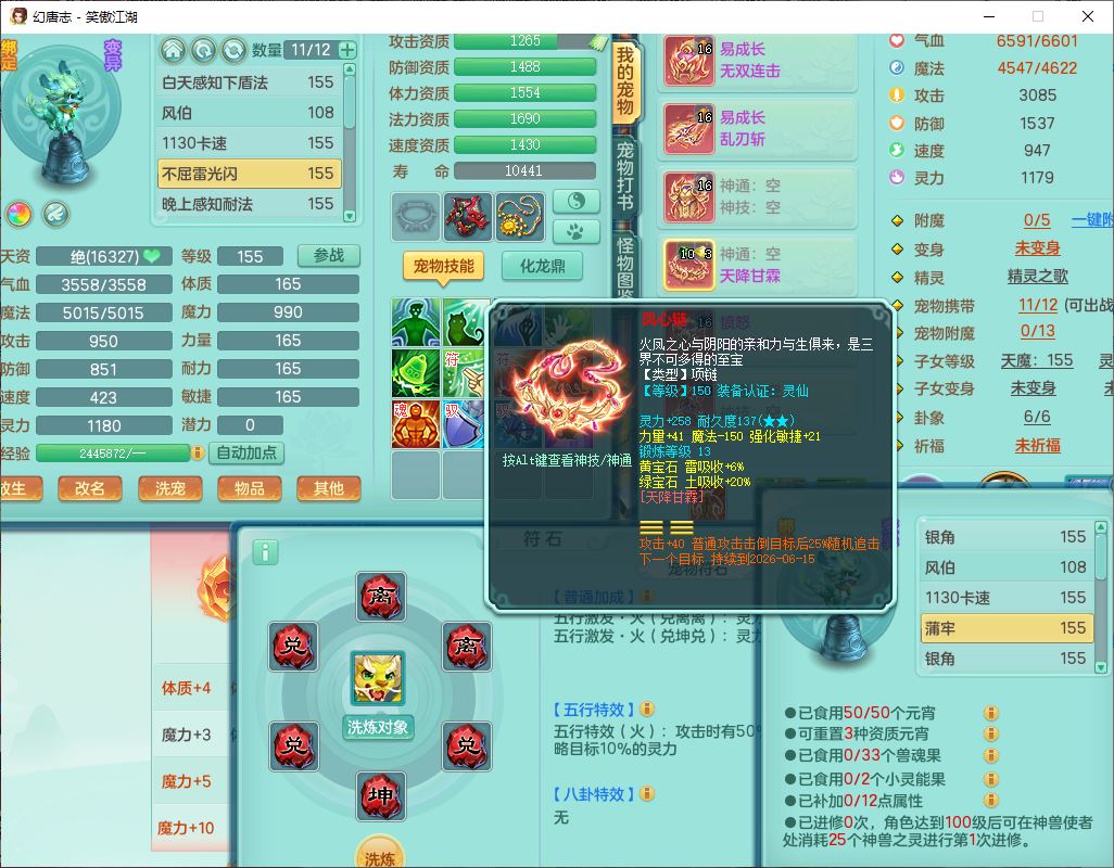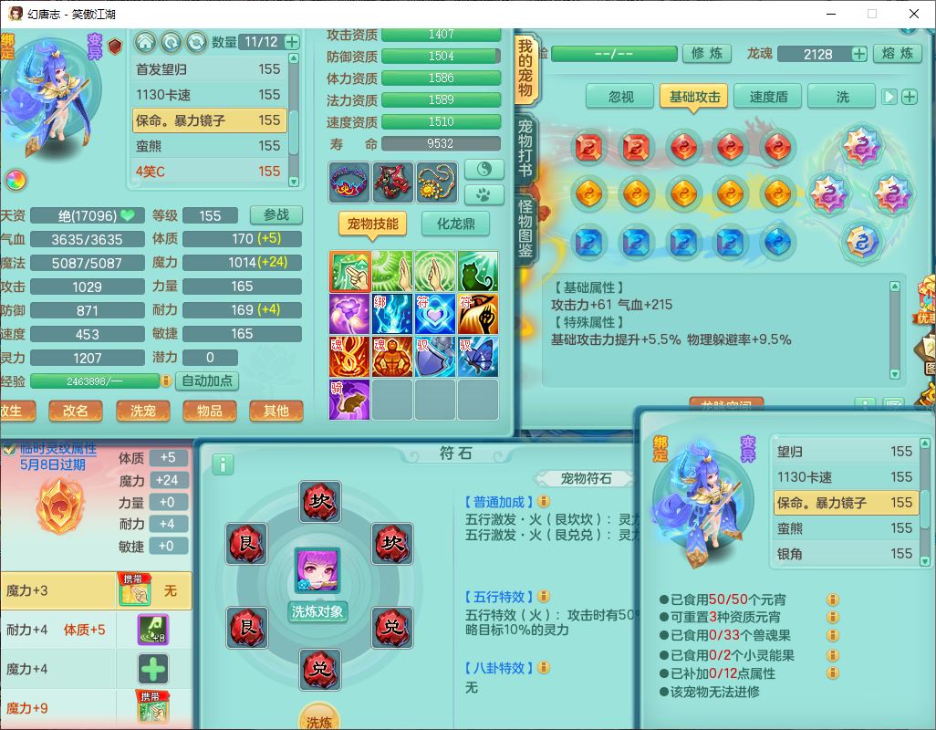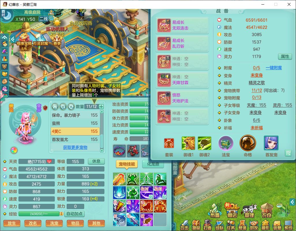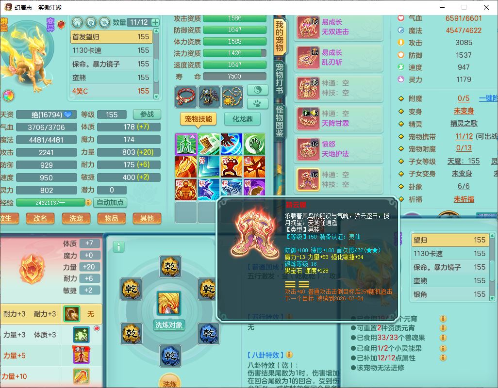 4374笑傲江湖159夫妻号,男万兽精灵歌,1神兽(无内)1望归1镜花,3觉醒,全单加7红装备,Y破血帽子,Y乱刃武器,愤怒罗汉腰带,鼎5.5,46个内丹碎片,带女方寸精灵舞,1神兽(无内)1望归2镜花1龙姬4特殊(夺命,兽决雷光、焚心、羽袭),1觉醒,9红装备,强壮慈航衣服,Y笑里项链,愤怒Y腰带,有法系装备,274Y慈航项链,法缭衣服、鞋子,41个内丹碎片