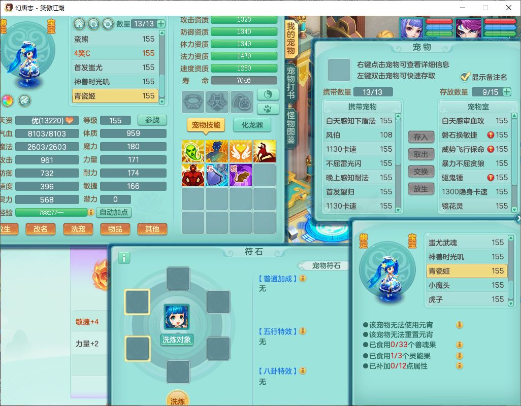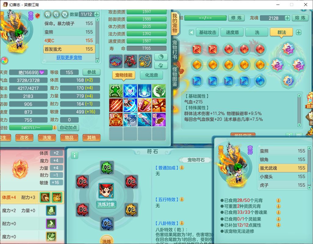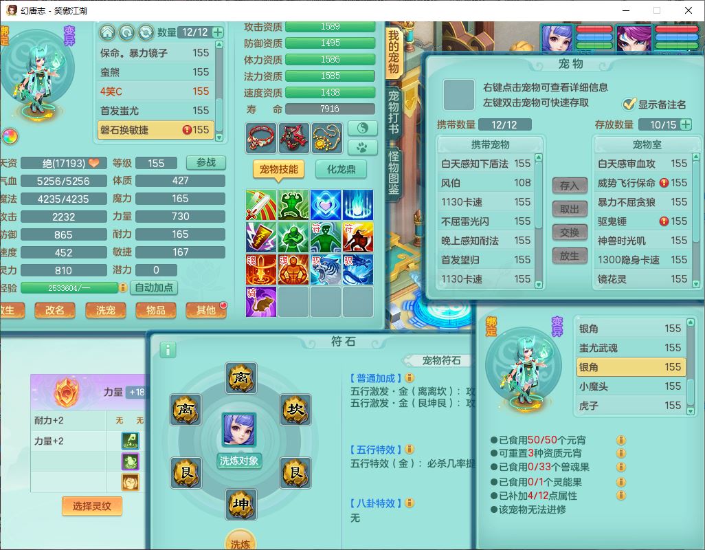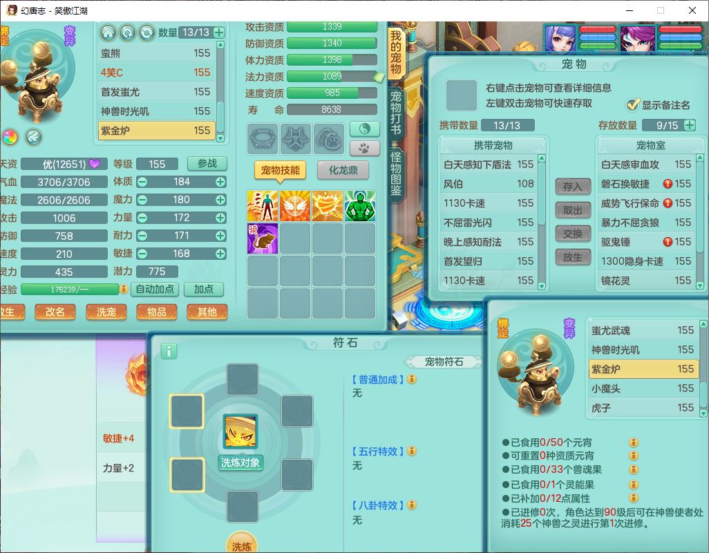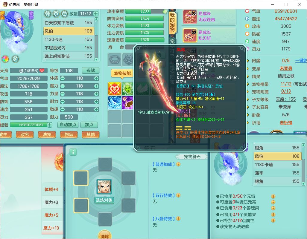 4374笑傲江湖159夫妻号,男万兽精灵歌,1神兽(无内)1望归1镜花,3觉醒,全单加7红装备,Y破血帽子,Y乱刃武器,愤怒罗汉腰带,鼎5.5,46个内丹碎片,带女方寸精灵舞,1神兽(无内)1望归2镜花1龙姬4特殊(夺命,兽决雷光、焚心、羽袭),1觉醒,9红装备,强壮慈航衣服,Y笑里项链,愤怒Y腰带,有法系装备,274Y慈航项链,法缭衣服、鞋子,41个内丹碎片