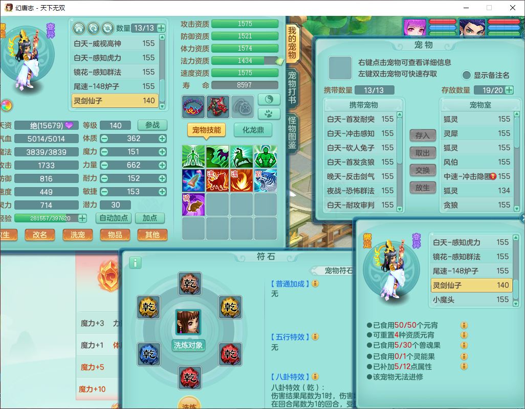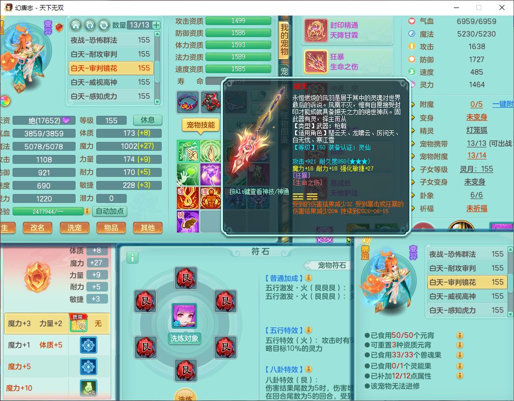 24324天下无双159男龙宫【潜龙过半】精灵舞,2内(1小马)1望归2镜花1金炉1特殊(枪出兽决),5觉醒5六字8四字综合8只满果子,全单加装备,击退武器,四灵腰带,五雷鞋子,一套10红装备,封印精通四海帽子,921狂暴生命之伤武器,神佑回生项链,Y罗汉鞋子,鼎5.5+70,63个仙兽灵,23个内丹碎片,1双人坐骑,带150奶粉