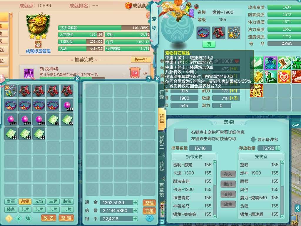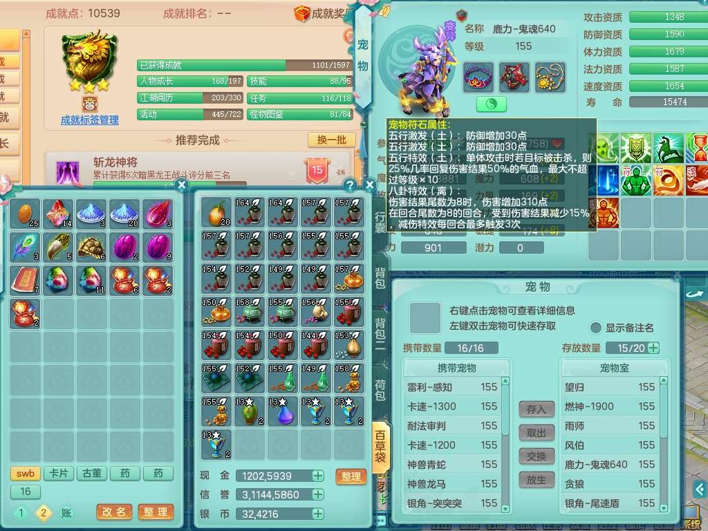 24328,2020区159男灵月山精灵舞,4龙2内胆神,8只觉醒(化龙鼎差1个厚土龙纹,符石差5个主要,2个附加,宠物5只满足),1宠皮,8位靓号不带4,4只六技能镜花灵,1只6技能龙姬,1特殊(勇猛),愤怒烽火单加50腰带,6特,回春武器,5.5基础鼎+70攻,14个格子,6个纯六字,2个五字,20只满果子,宠排在榜,经验在榜,双人坐骑,带31天月卡,特价1.48W包