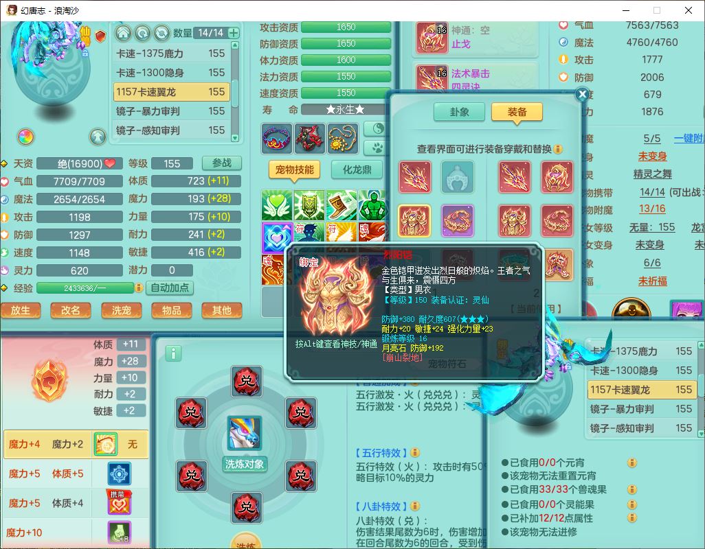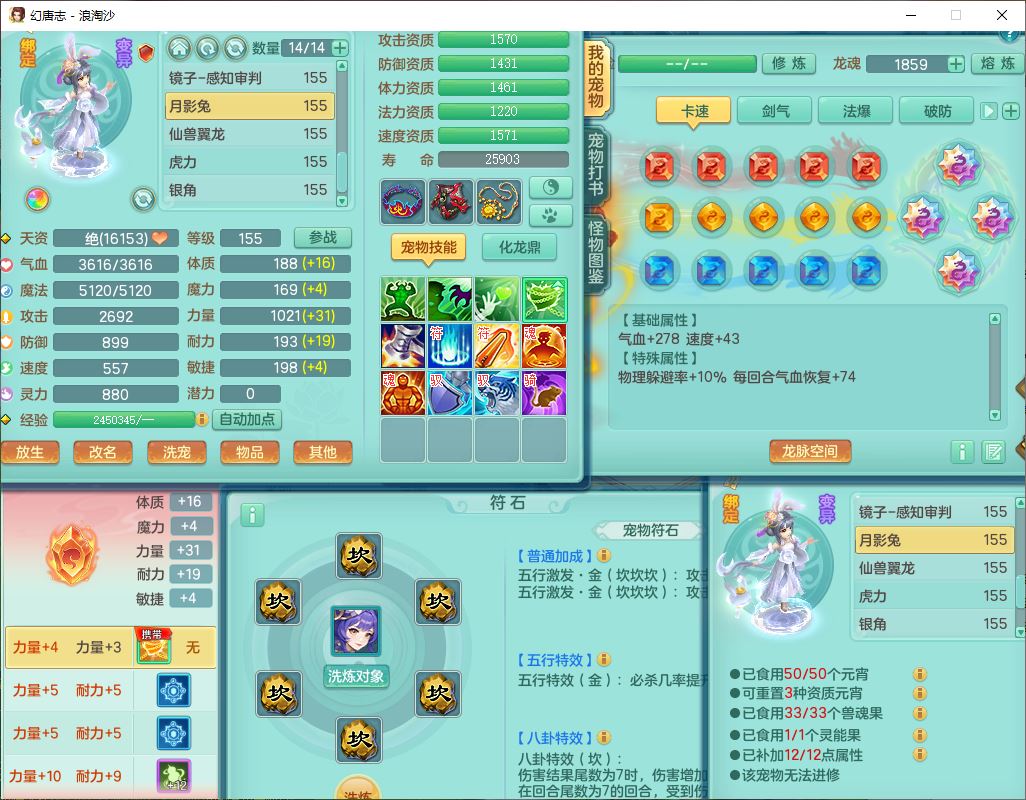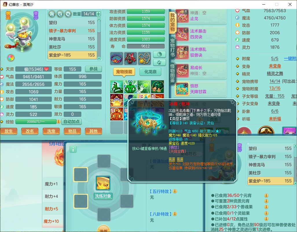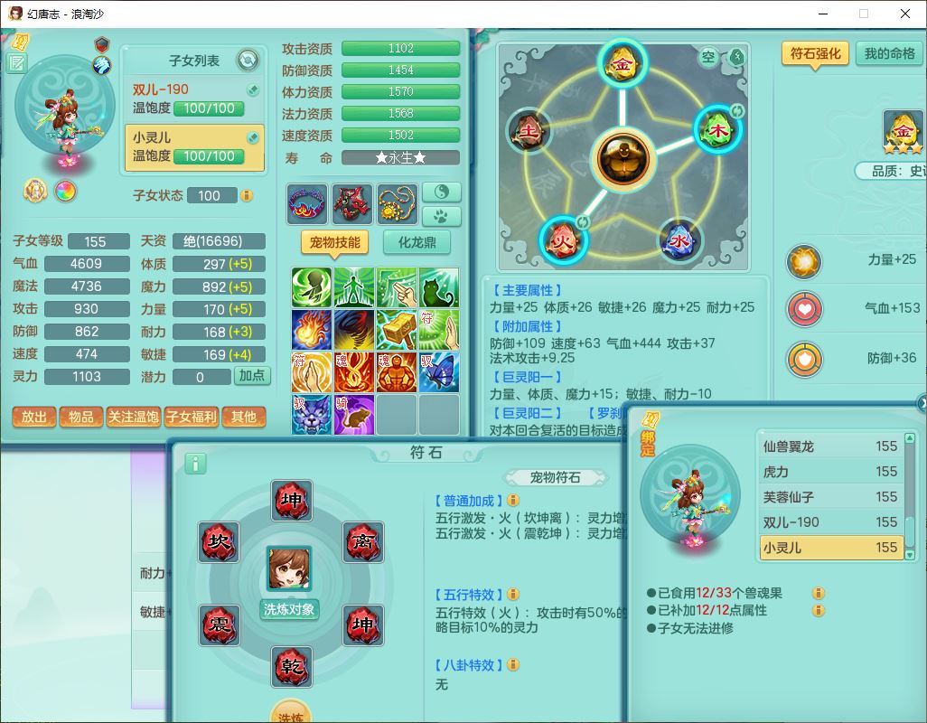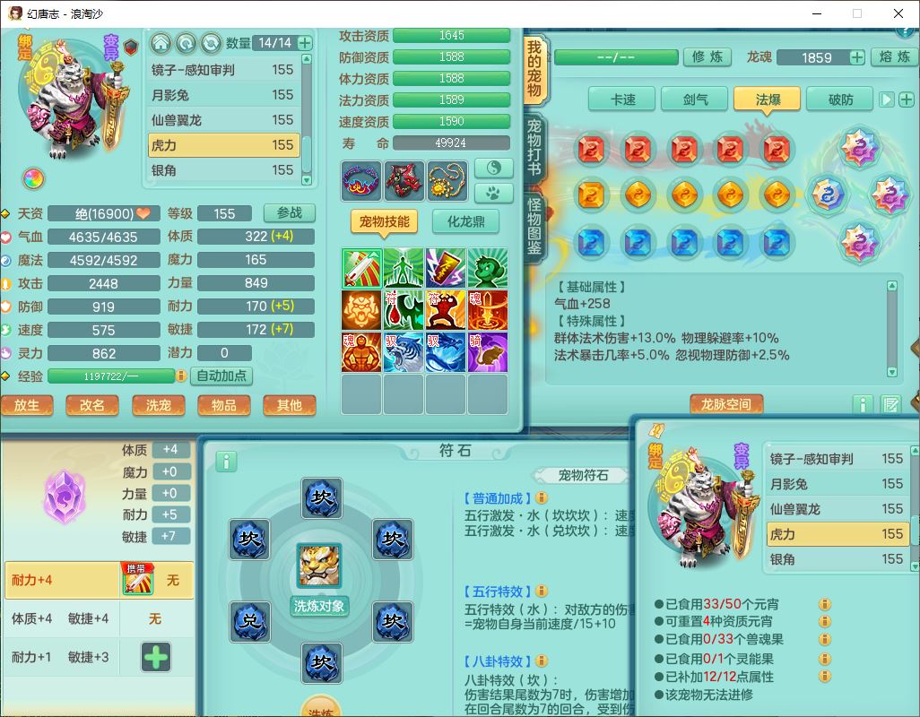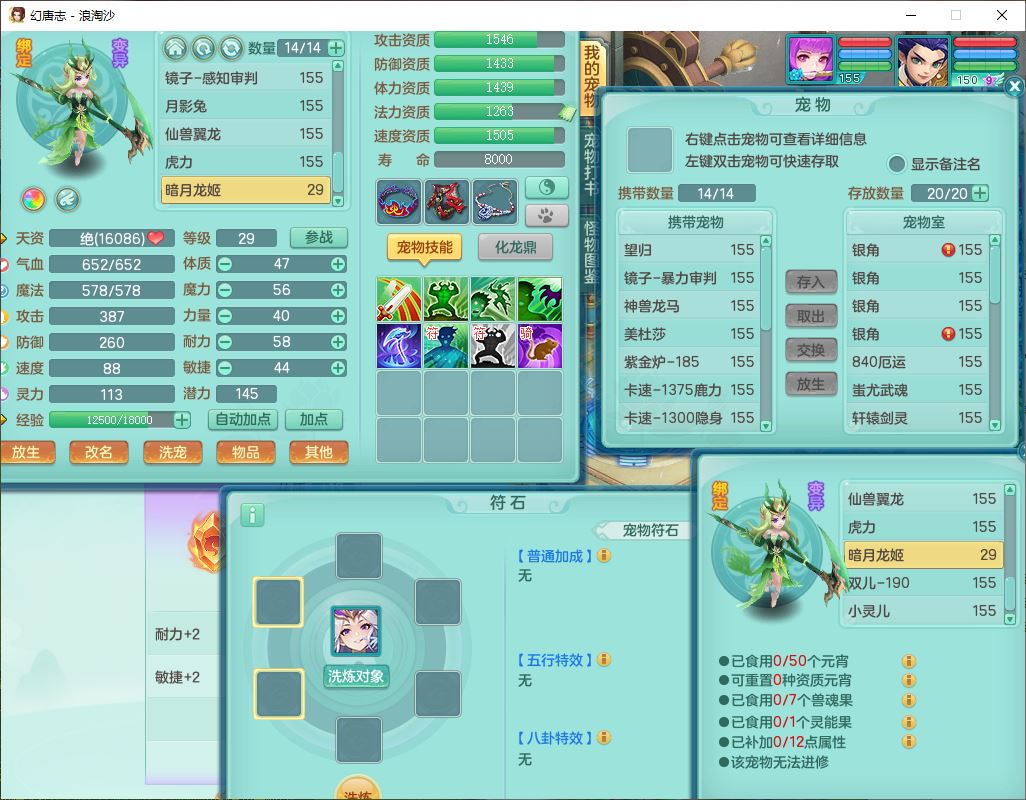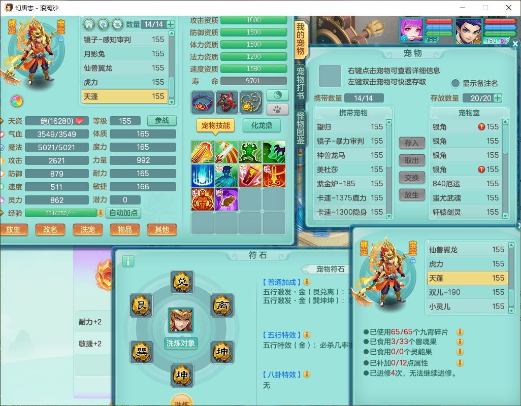 99792浪淘沙159男龙宫【暴龙逍客】精灵舞,2龙(1换)2内(1青蛇1龙马,1破境)1望归4镜花1金炉1特殊兽决(上善),5觉醒3宠皮5六字5五字3四字13只满果子,9红星辰之拥装备,法爆四灵武器,法缭驭兽衣服,愤怒四海腰带,五雷鞋子,有物理装,Y疾速武器,崩山衣服,神佑项链,Y驭兽鞋子,鼎5.5+70,156天月卡,庭院162房屋158,永久外观、精灵皮肤,14个内丹碎片,4双人坐骑(1飞行)