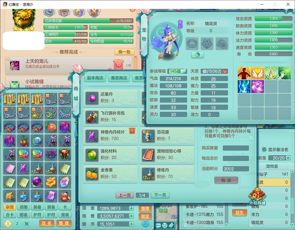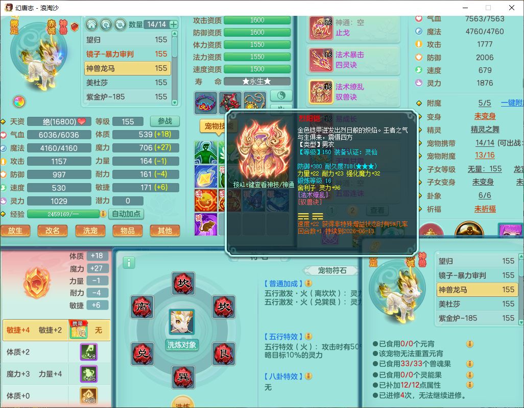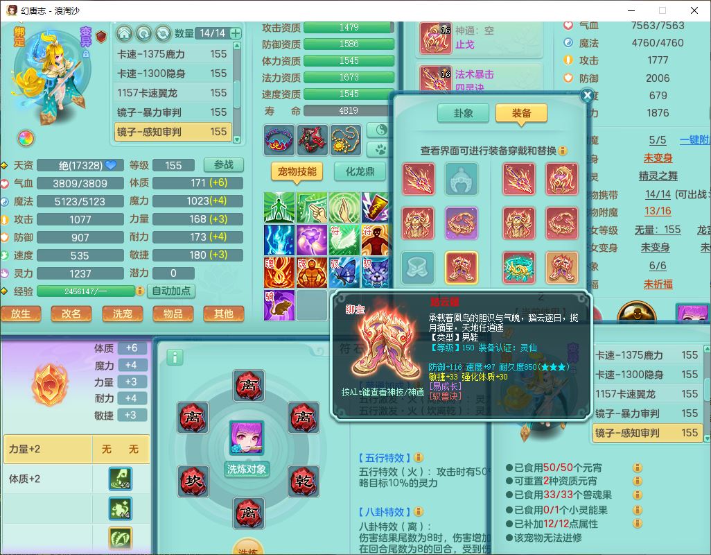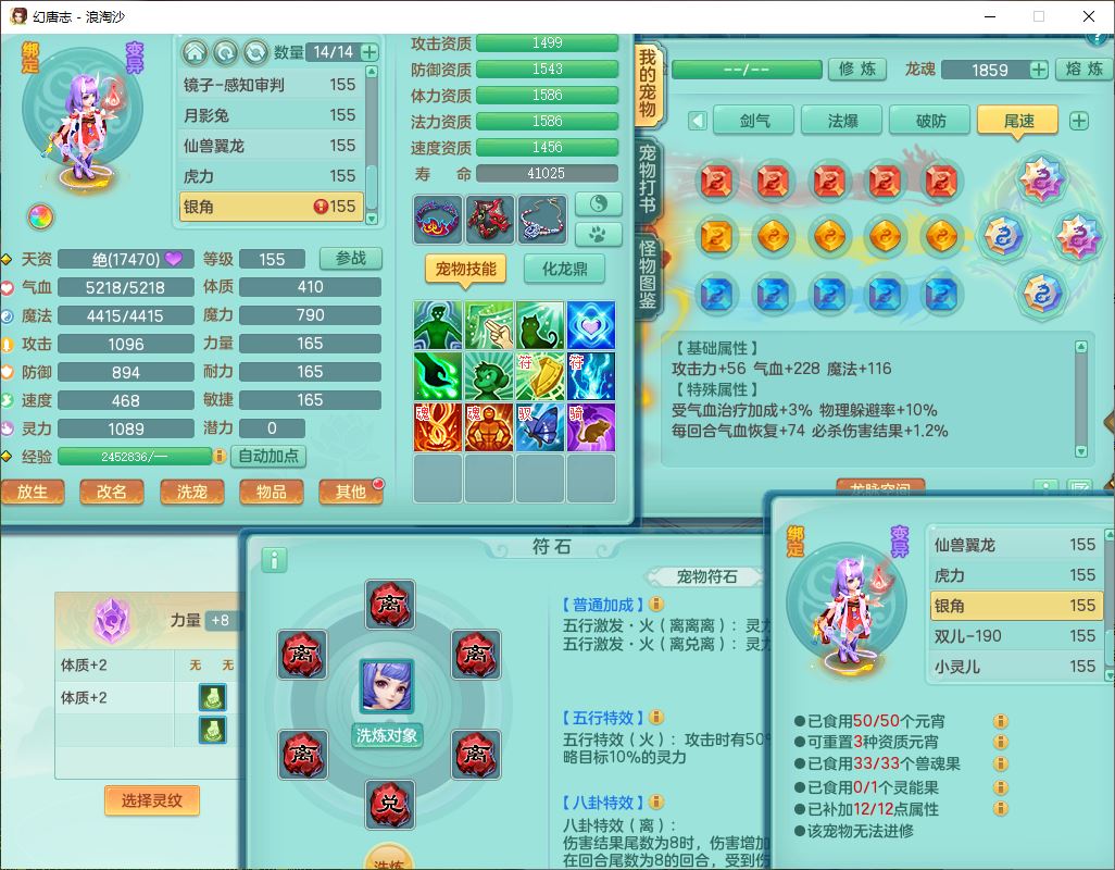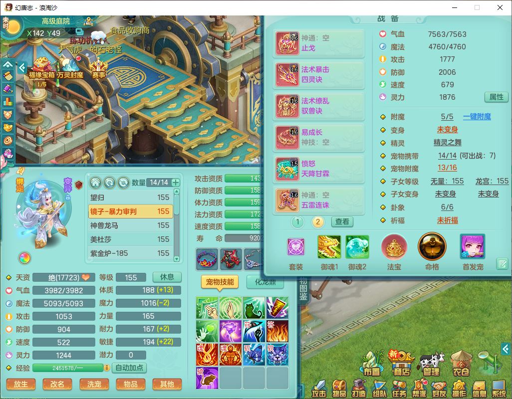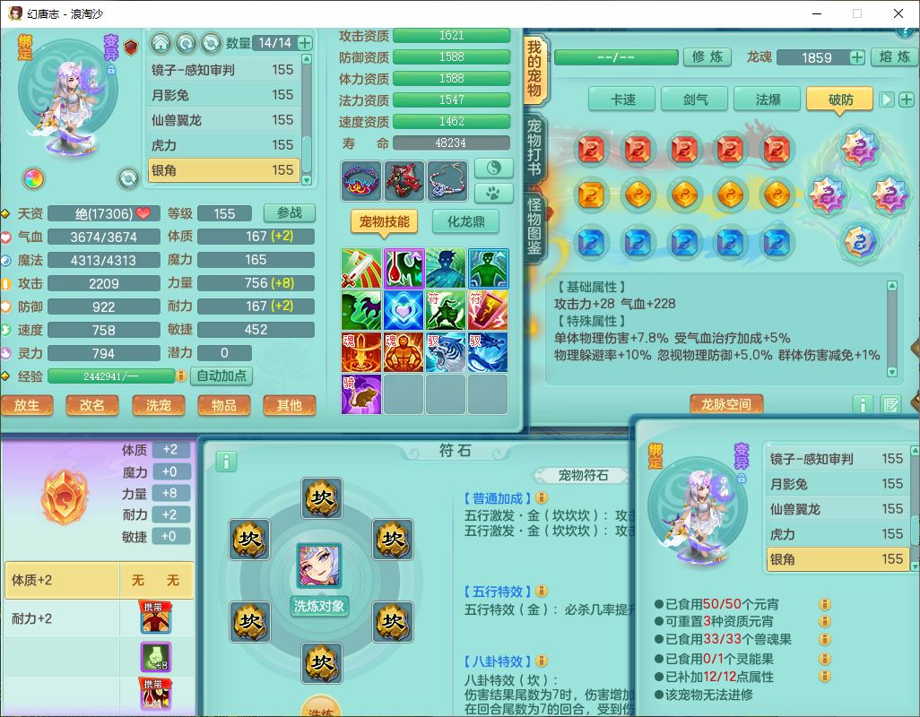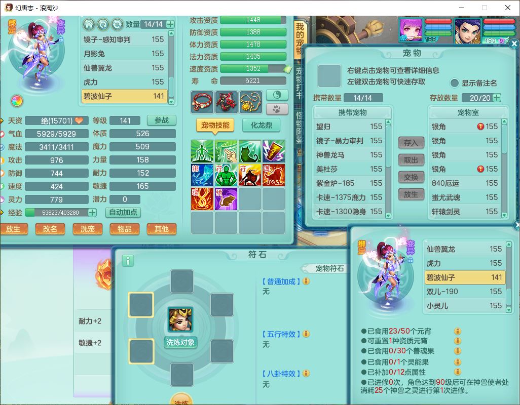 99792浪淘沙159男龙宫【暴龙逍客】精灵舞,2龙(1换)2内(1青蛇1龙马,1破境)1望归4镜花1金炉1特殊兽决(上善),5觉醒3宠皮5六字5五字3四字13只满果子,9红星辰之拥装备,法爆四灵武器,法缭驭兽衣服,愤怒四海腰带,五雷鞋子,有物理装,Y疾速武器,崩山衣服,神佑项链,Y驭兽鞋子,鼎5.5+70,156天月卡,庭院162房屋158,永久外观、精灵皮肤,14个内丹碎片,4双人坐骑(1飞行)
