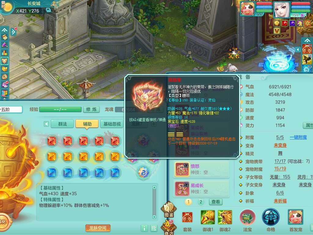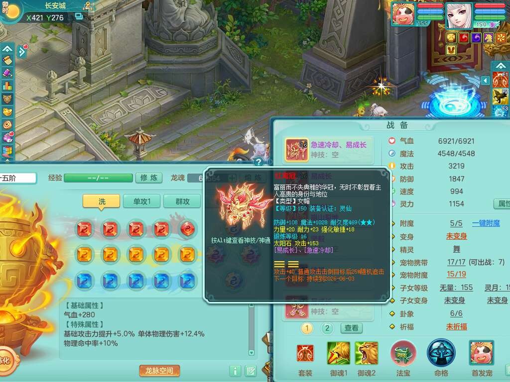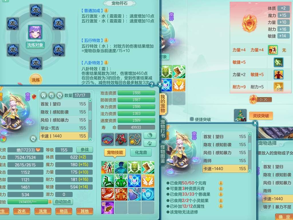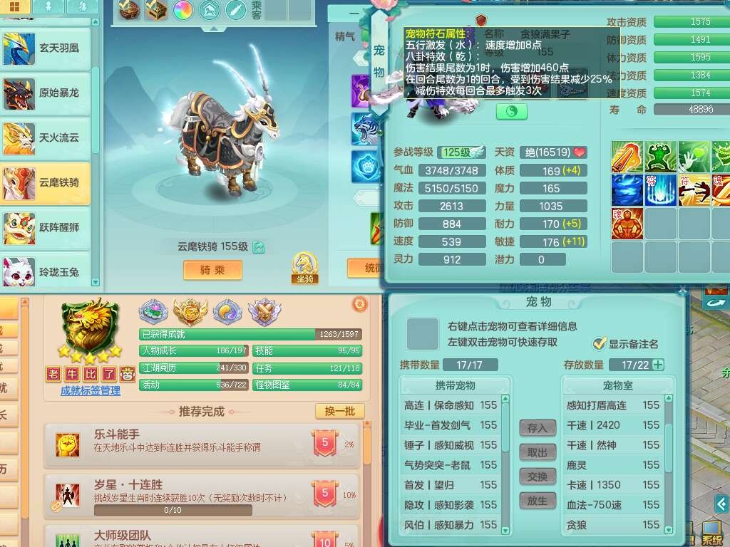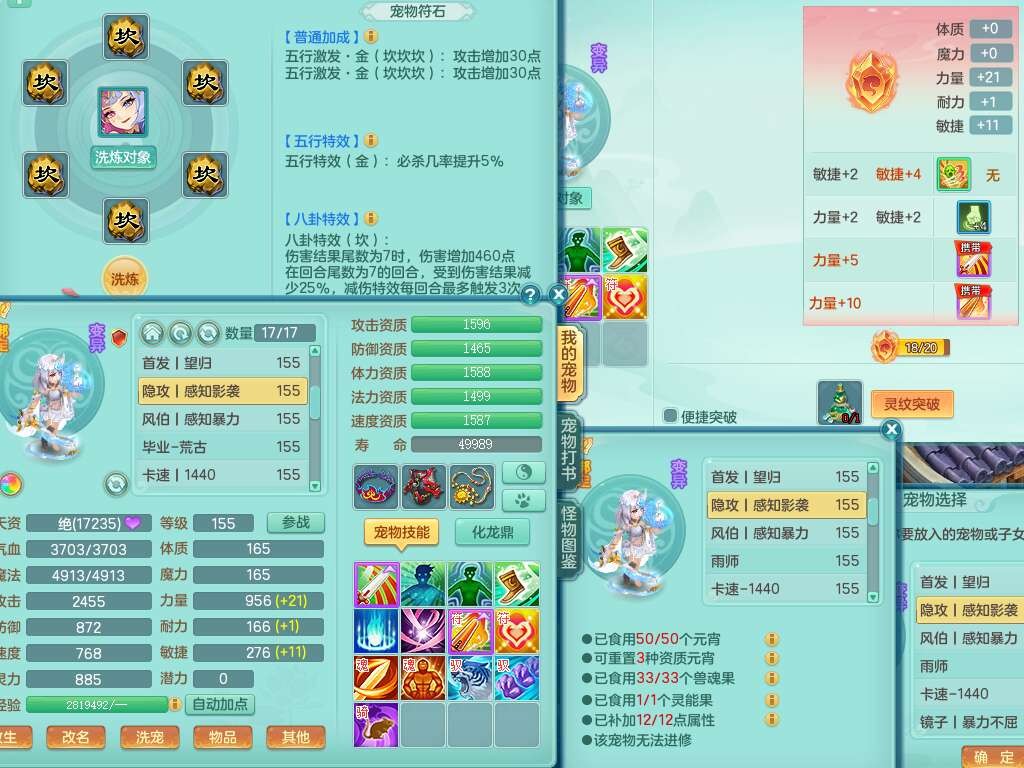 A22316普天同庆159女万兽,精灵舞,2龙2内胆神,1破镜,【11只觉醒,已潜龙】,极品8位靓号ABBBBBBB,10宠皮,5特殊(影袭×2,荒古,飞花,舍身),3只六技能镜花灵,2只六技能龙姬,易成长崩山单加50衣服,愤怒单加53项链,5.5基础鼎+70攻+280血,15个永久格子,14个纯六字,27只满果子,仓库还有122个果子,宠排在榜,经验修炼成就都在榜,永久称谓,16只坐骑,暴龙洪荒+神驹马到成功+西瓜冰,冰晶庭院,带108天月卡。