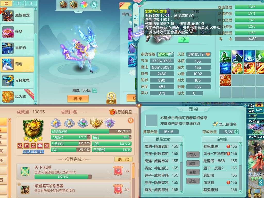 J22322风驰电掣159男普陀,精灵歌,3龙2内胆神,2破镜,【12只觉醒,已潜龙】,1宠皮,4位靓号,2特殊(勇猛,枪出),4只六技能镜花灵,1只六技能龙姬,震怒玉清单加57腰带,易成长慈航单加53鞋子,物理狂暴四海武器,崩山单加53衣服,神佑单加项链,易成长慈航单加53鞋子,6.0基础鼎+70攻+280血,15个永久格子,10个纯六字,22只满果子,宠排在榜,经验在榜,仓库37神兽内丹碎片,6只坐骑,原始暴龙洪荒+西瓜冰武器。