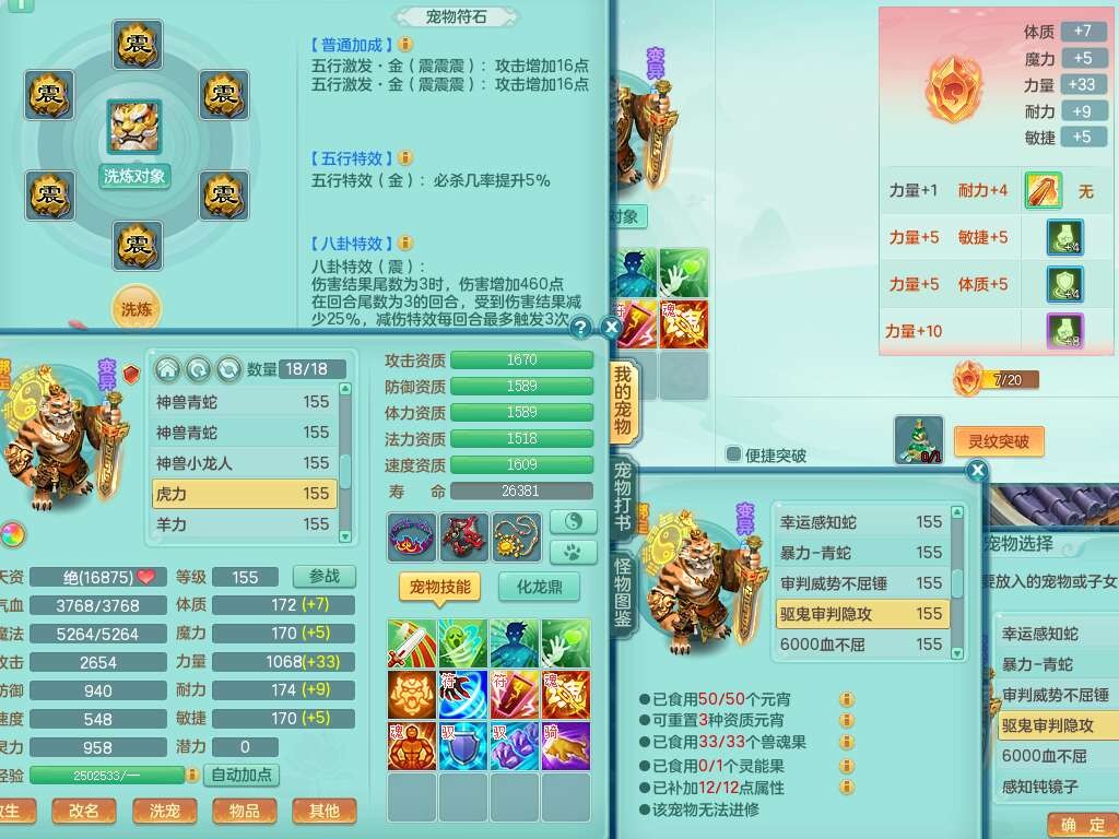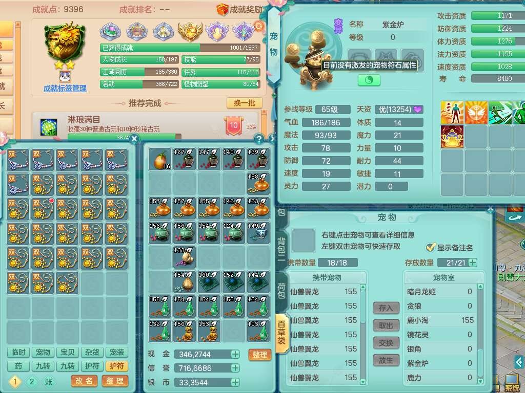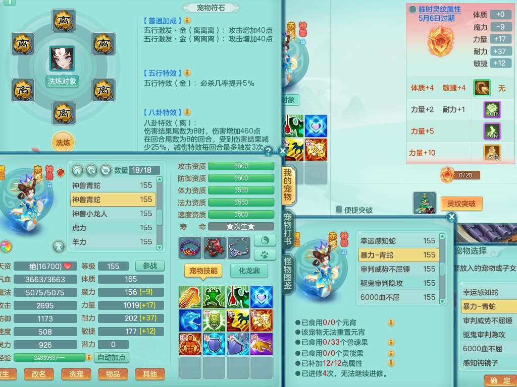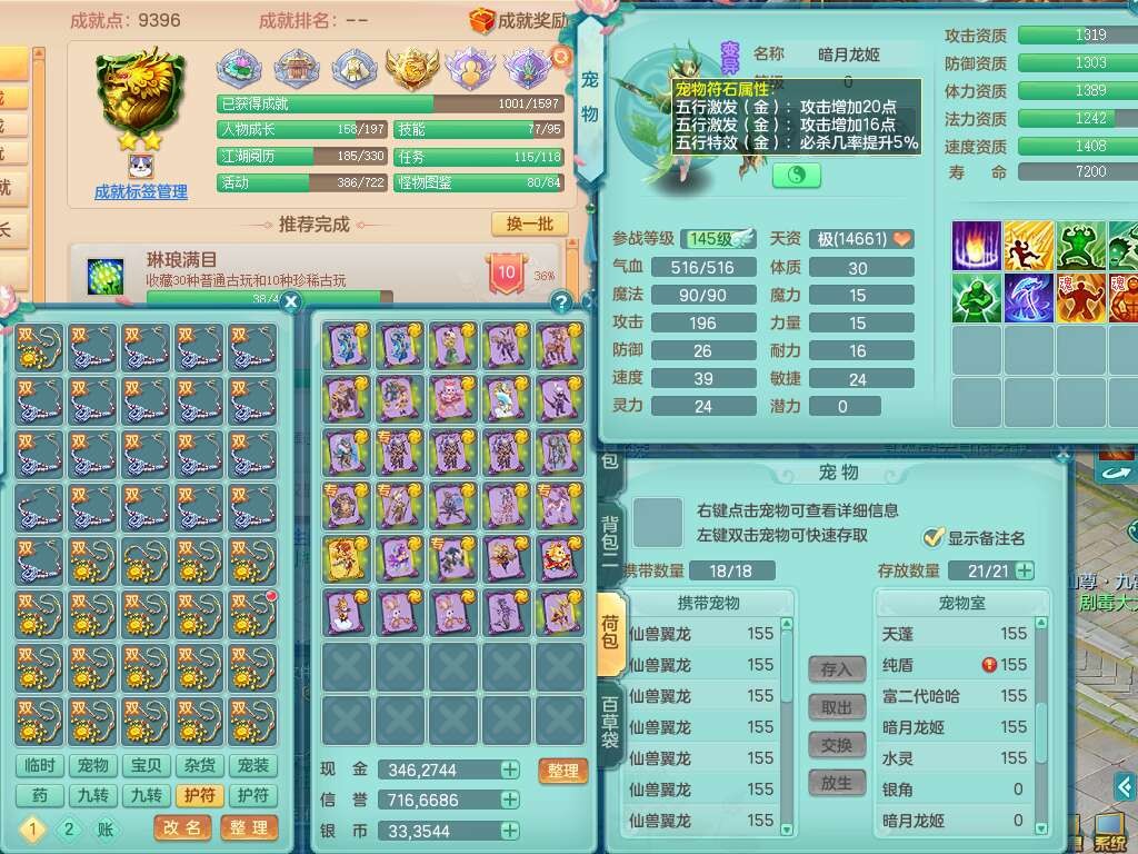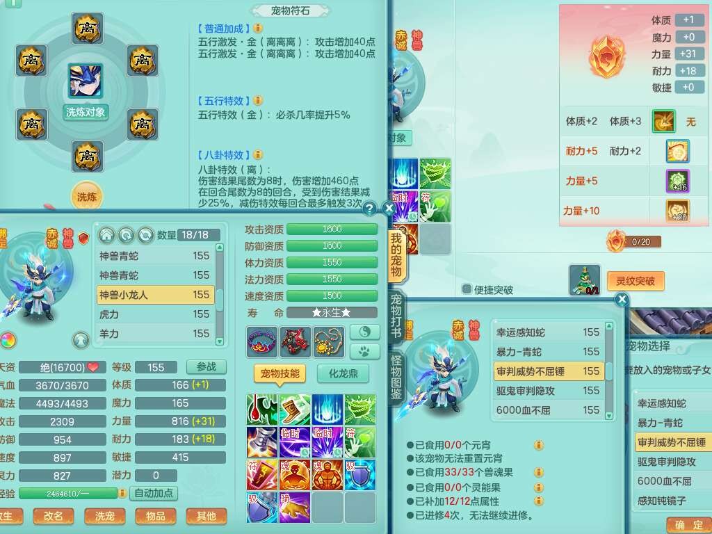 S22317任剑逍遥159男天策,精灵歌,8龙3内胆神(2蛇),1破镜,【25只觉醒,已潜龙】,7宠皮,3特殊(影袭,双星,风卷),3只六技能镜花灵,1只六技能龙姬,934易成长止戈武器,有917必杀单加武器,928易成长单加54武器,928狂暴单加武器,易成长破血单加头,格挡崩山衣服,神佑易成长单加50链子,愤怒易单成长加56腰带,迅捷四海单加53鞋子,6.0基础鼎+70攻+280血,15个永久格子,20个纯六字,26只满果子,宠排在榜,仓库43神兽内胆碎片,双人老虎。