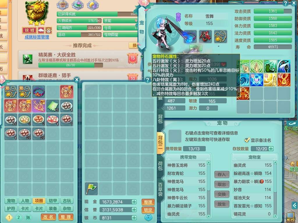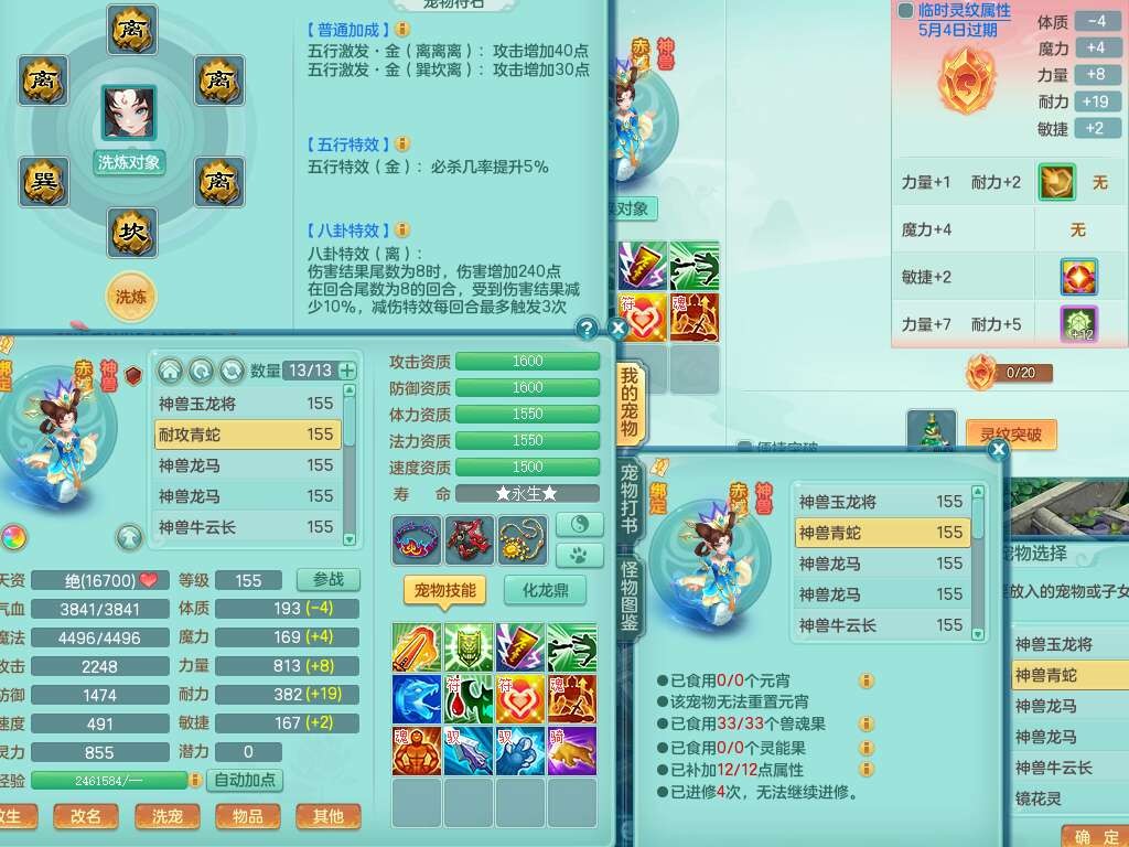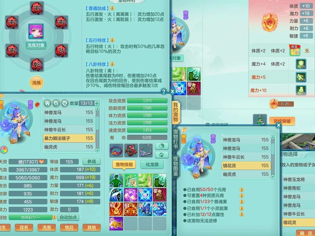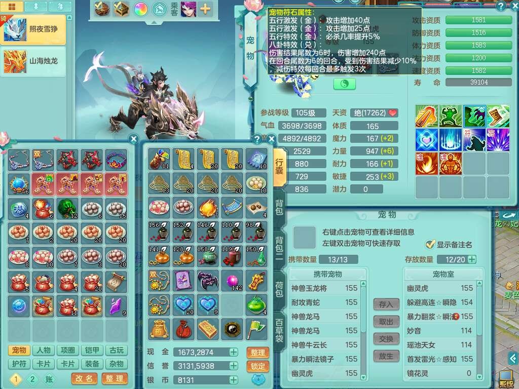 S22318九天揽月158男万兽,精灵歌+怒,5内胆神,2觉醒,1宠皮,1只六技能镜花灵,易成长单加头,三红903击退易成长明镜非台单加武器,易成长单加腰带,易成长单加鞋子,4.5基础鼎+280血,2个五字,7只满果子,双人坐骑,带28天月卡。➕159女方寸,精灵舞+歌,1神兽+24个神兽内丹碎片,4觉醒,1特殊(枪出),2只六技能镜花灵,1只六技能龙姬,愤怒破力式单加腰带,易成长群体守备单加鞋子,六特,4.5基础鼎,3个纯六字,9只满果子。