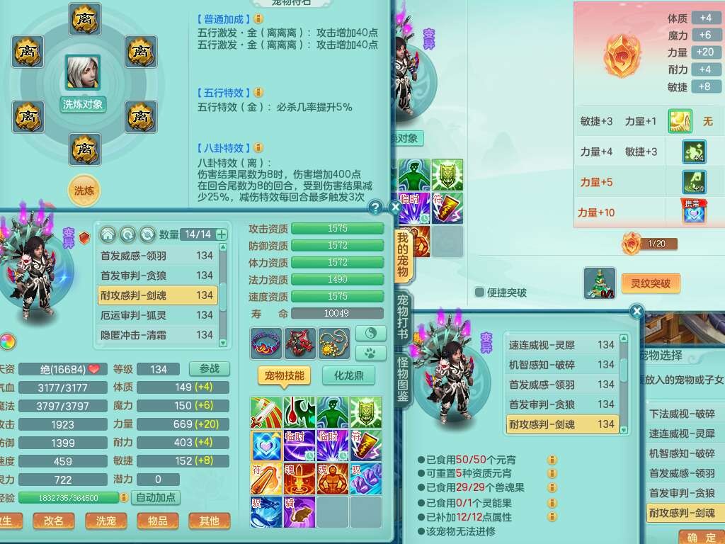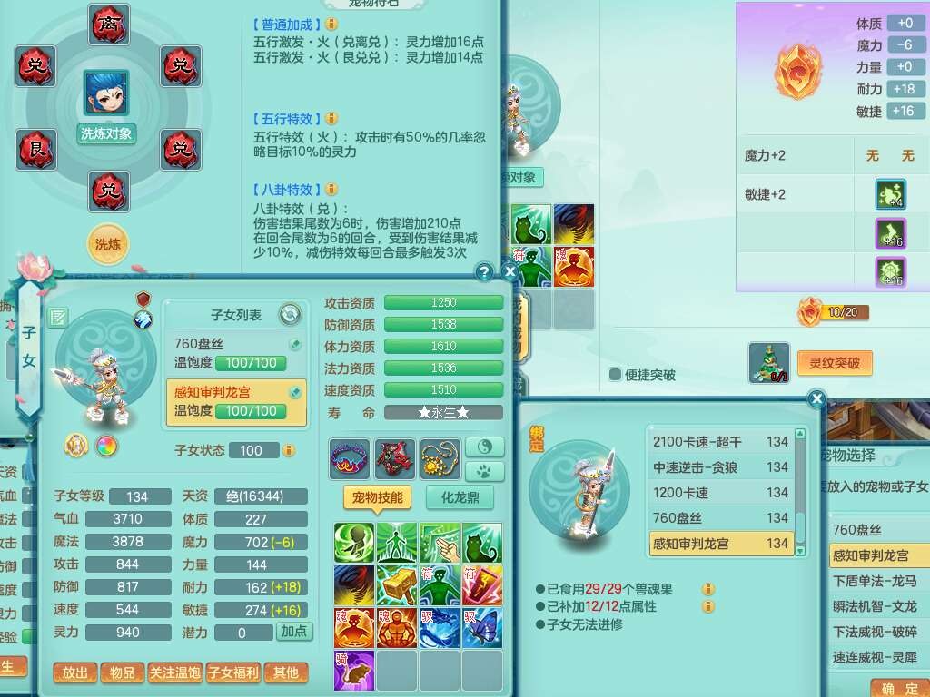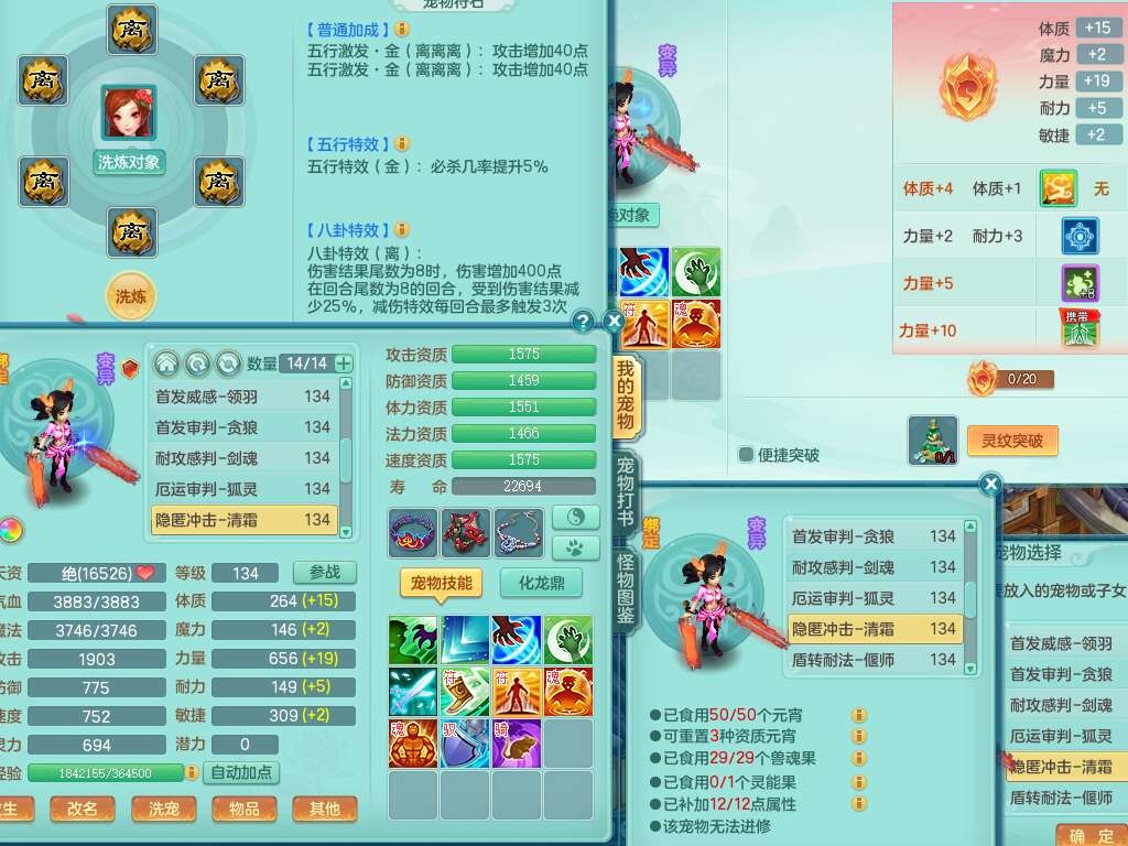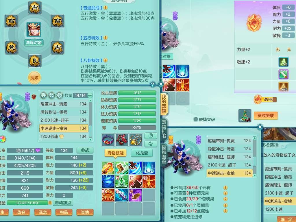 K22312浪淘沙129男五庄,精灵舞,1内胆神,10觉醒*(准潜龙,宝宝化龙鼎满足,符石只差3个主要,差1个附加属性),1宠皮,愤怒易成长腰带,易成长罗汉鞋子,五特,4.0基础鼎+56攻+224血,9个纯六字,20只满果子,宠排在榜,双人坐骑,有29个仙兽蛋,81天月卡。➕159女五庄奶粉,1神兽,3只六技能镜花灵。