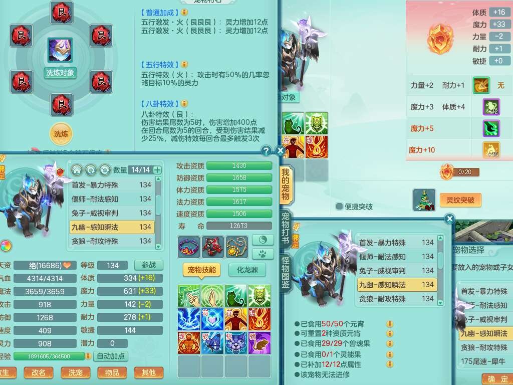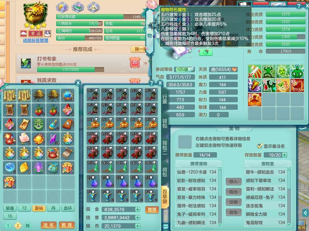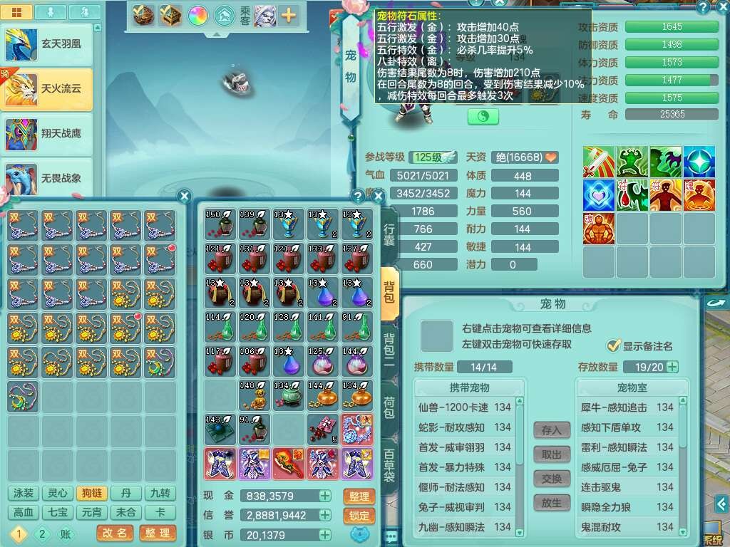 K22308浪淘沙129男灵月山,精灵歌,1龙1内胆神,1神兽+34个神兽内丹碎片,8觉醒,2宠皮,愤怒罗汉腰带,六特,有199易成长链子,195易成长五雷单加链子,法爆清心术单加56武器,三红法爆易成长愈心决武器,4.0基础鼎+56攻+224血,3个纯六字,2个五字,14只满果子,宠排在榜,成就在榜,2只双人坐骑,40天月卡。带一个150奶粉。