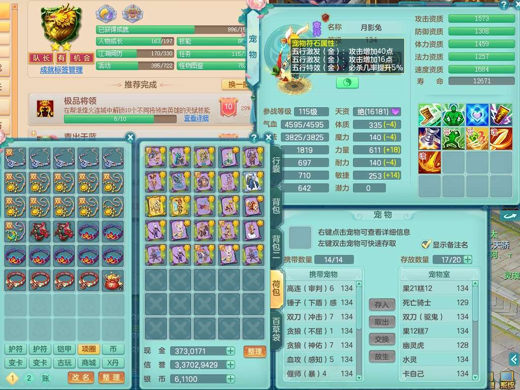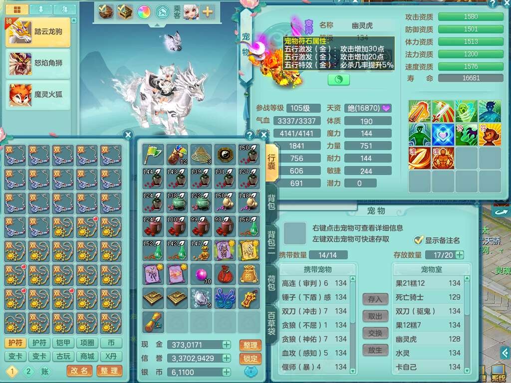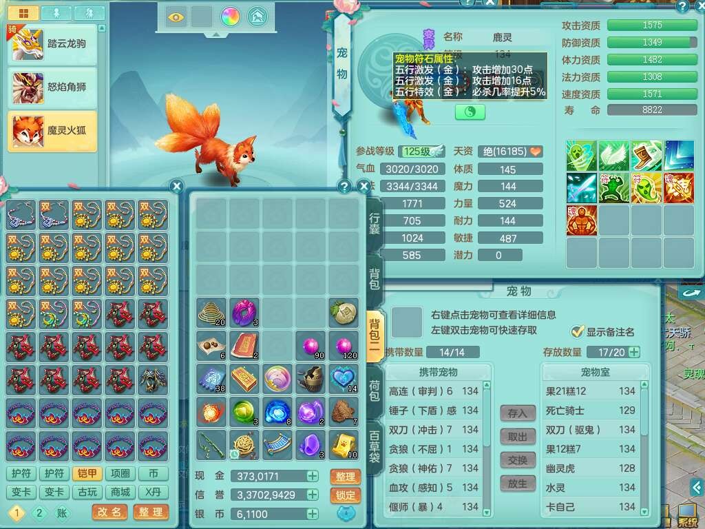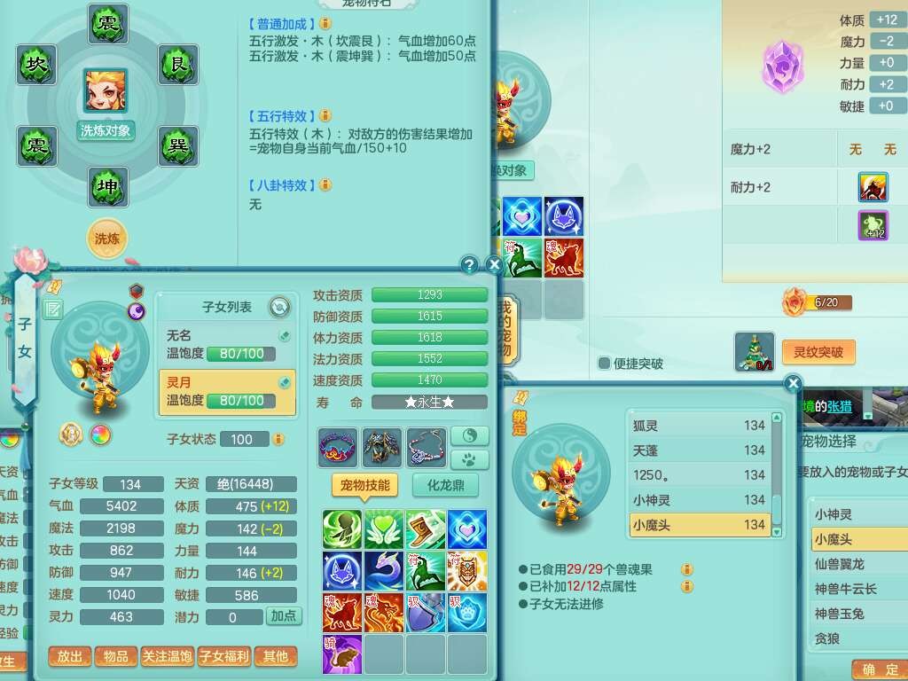 p22310,2020区129女魔王,精灵歌,1龙2内胆神,4觉醒(潜龙条件化龙鼎满足,宝宝满足4只,差符石2个主要,差4个附加属性),4宠皮,易成长玉清单加43头,法爆单加42武器,易成长单加44衣服,199易成长慈航链子,幸运6四海单加43鞋子,4.0基础鼎+56攻+224血,6个纯六字,2个五字,14只满果子,双人坐骑,有有28个仙兽蛋。➕129女普陀奶粉,精灵舞,易成长清心术单加武器,愤怒四海单加腰带,六特,4.0基础鼎,带380w神武币。