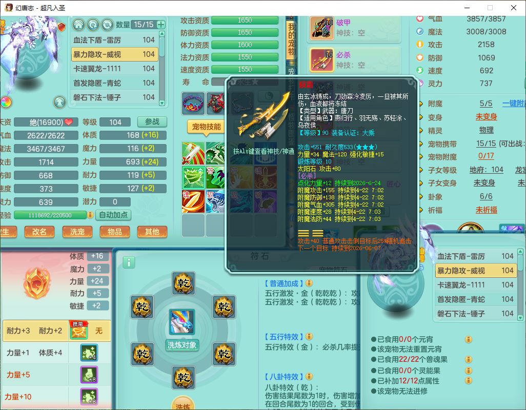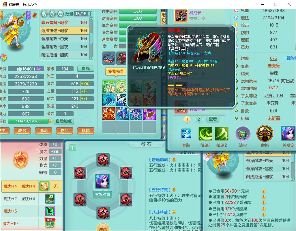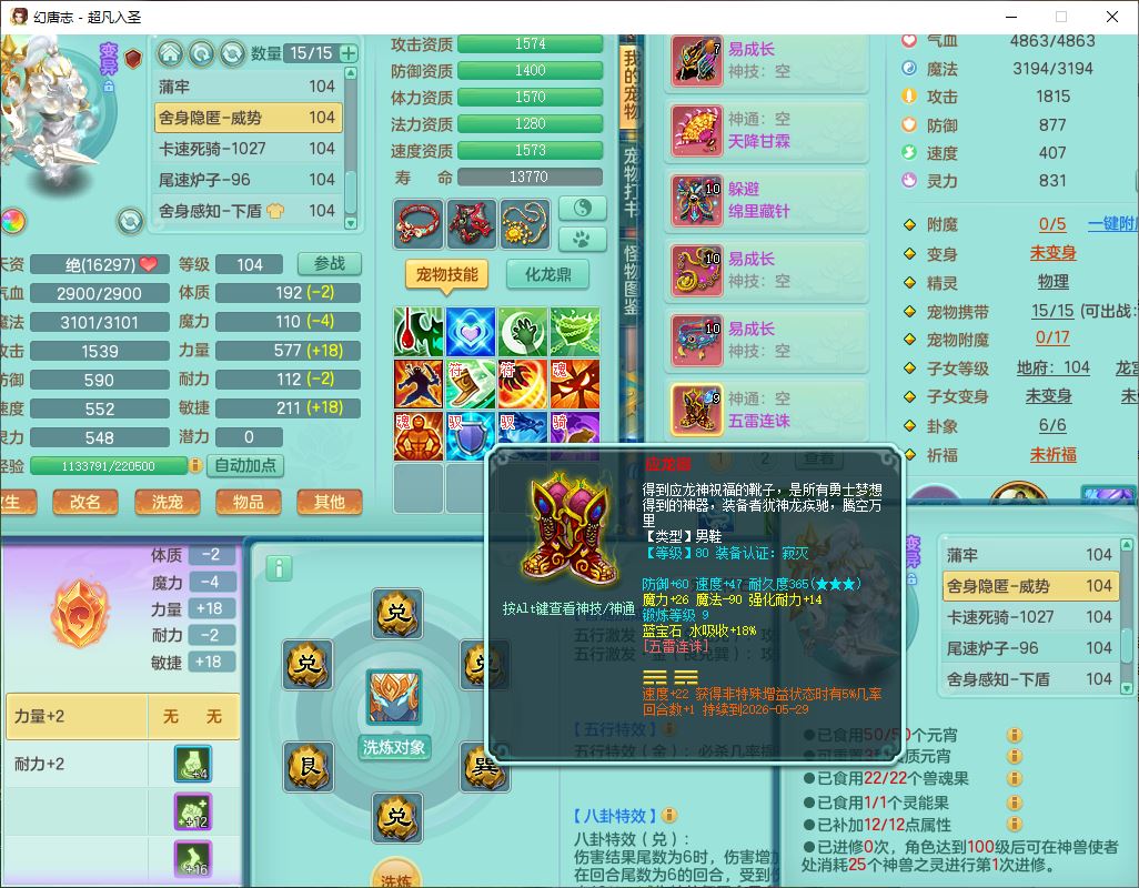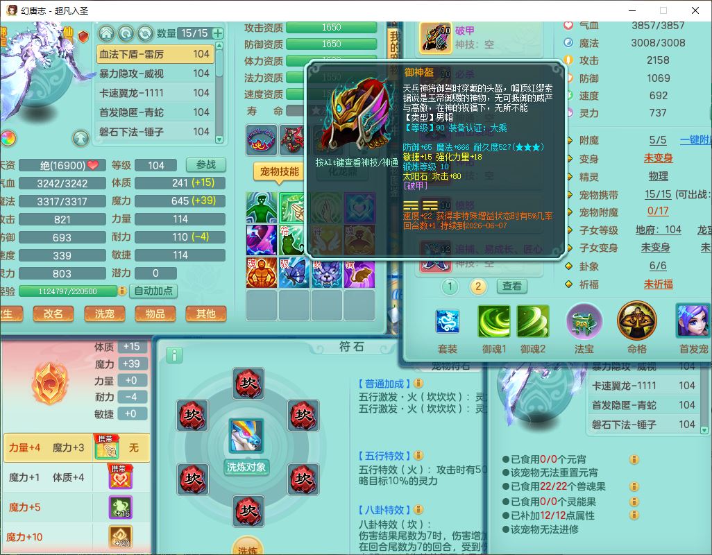 52696超凡入圣99男无名【准潜龙号,差2条附加】力敏、全魔双精灵,3龙(1换、无内)2内(1青蛇)4翻江4舍身1童子1金炉,8觉醒4宠皮8六字3五字8四字21只满果子,8红装备,破甲帽子,必杀武器,崩山衣服,神佑项链,匠心Y鞋子,有法系装,躲避笑里衣服,156单加Y项链,五雷鞋子,鼎2.5+42+168,2套符石,58天月卡,庭院150,永久外观、精灵皮肤,27个内丹碎片,1双人坐骑
