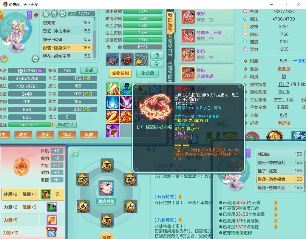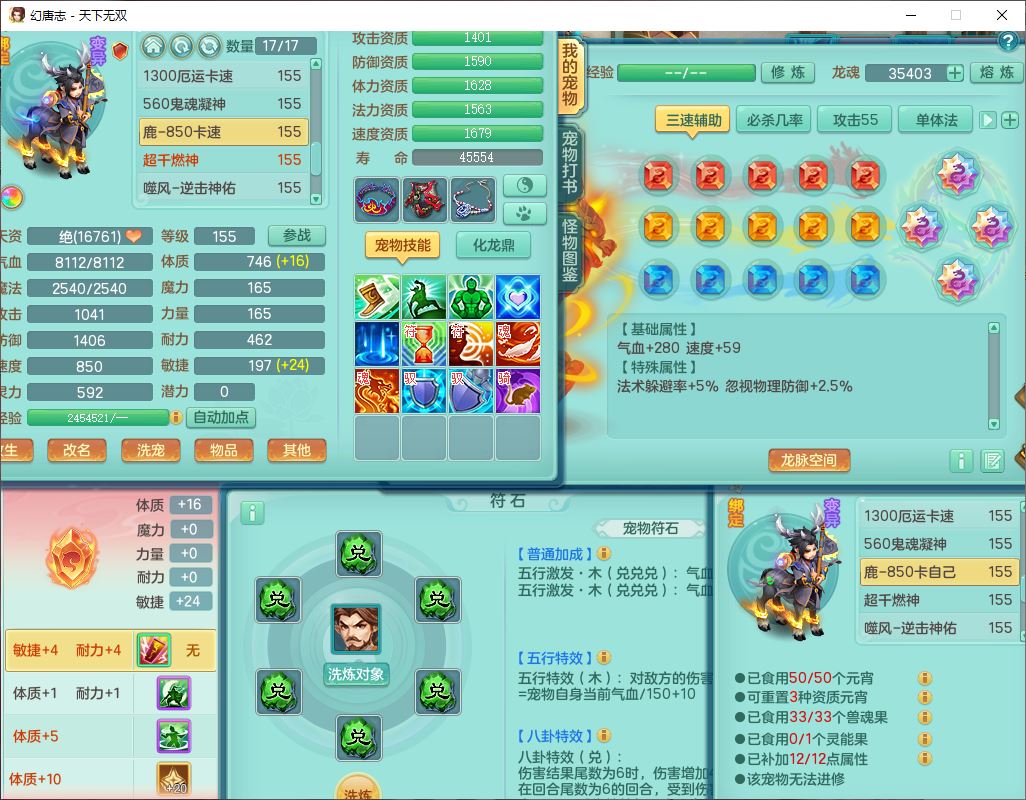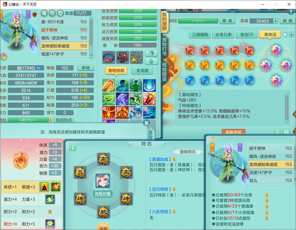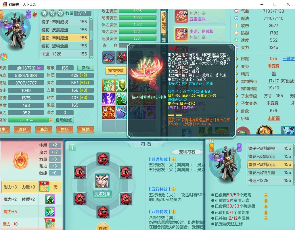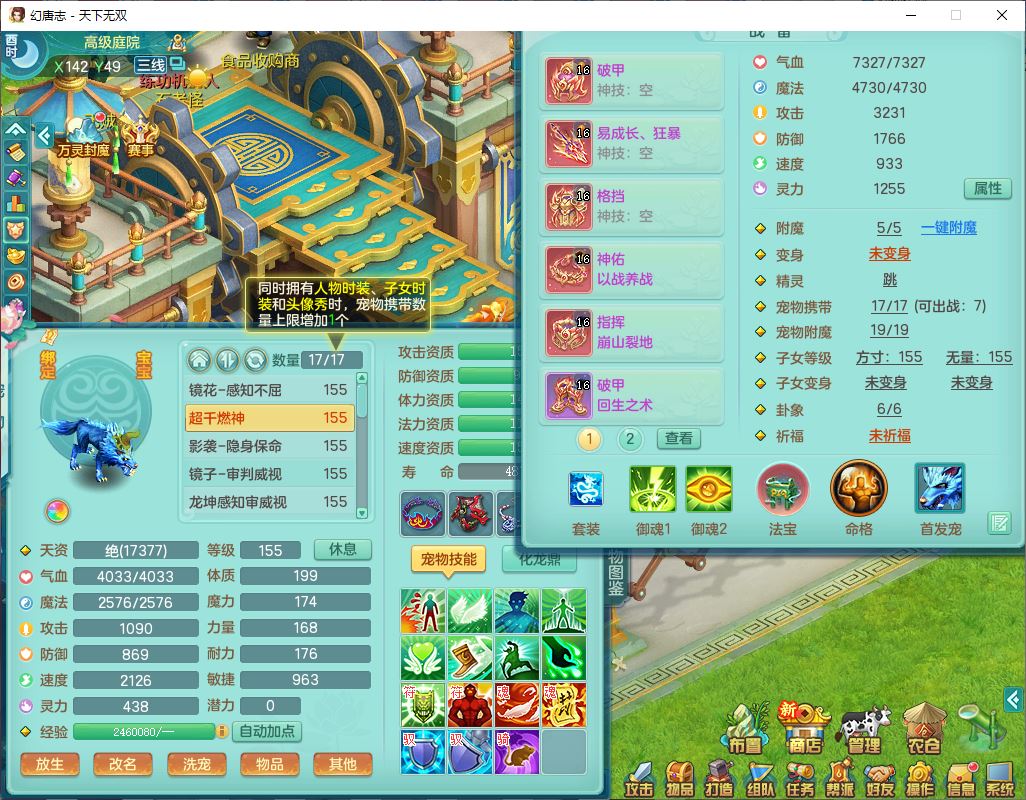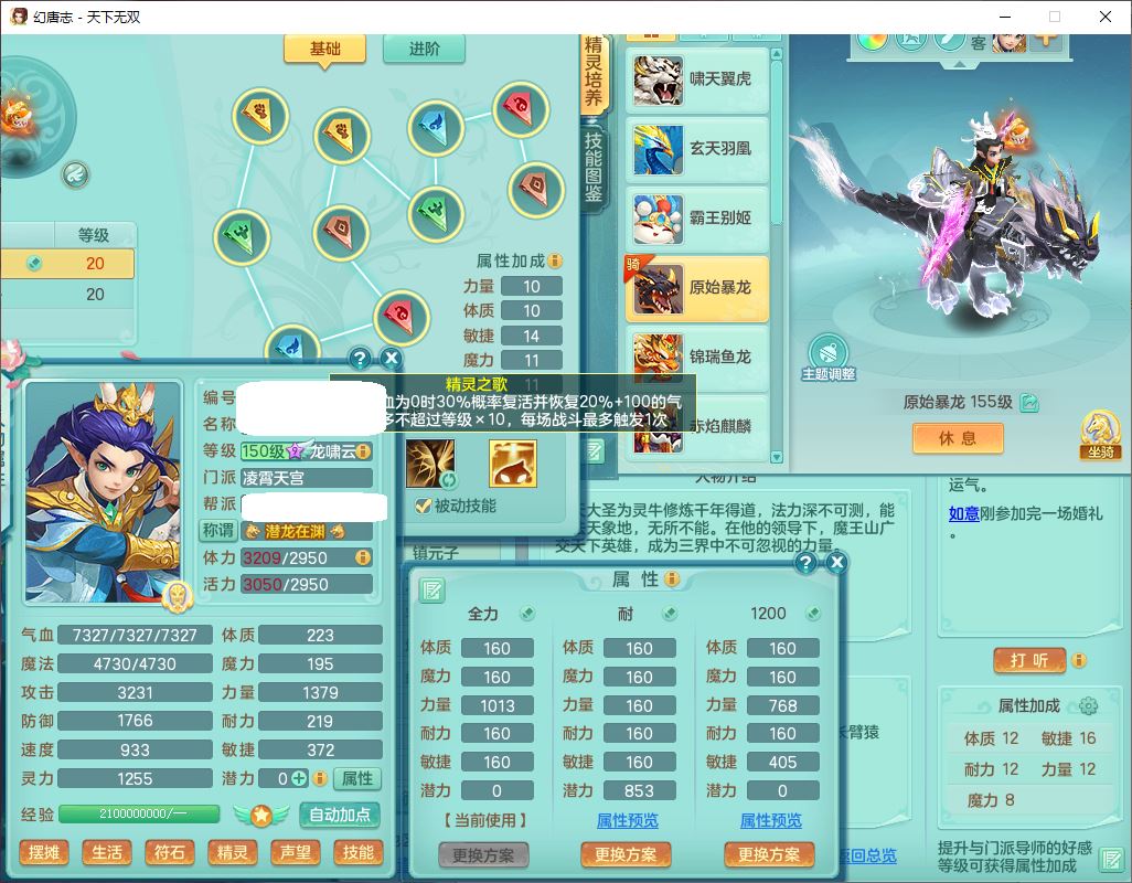 24321天下无双159男天宫【潜龙号+暴龙洪荒+西瓜冰】精灵歌,1龙(换,无内)1内丹青蛇8特殊(破碎、影袭、号角、噬风,兽决飞花、以战、双星、怒破)5镜花灵1龙姬1金炉,21觉醒4宠皮17六字3四字综合21只满果子,17格子,10红双破甲星辰之拥装备,,单加Y狂暴武器,破甲帽子,格挡衣服,神佑以战项链,指挥崩山腰带,破甲回生鞋子,一套法系装备,Y击退武器,法缭衣服,五雷帽子,法缭鞋,鼎6.0+70+280,房屋166,永久外观精灵皮肤,31内丹碎片,360w神武币,宠排在榜,7只双人坐骑